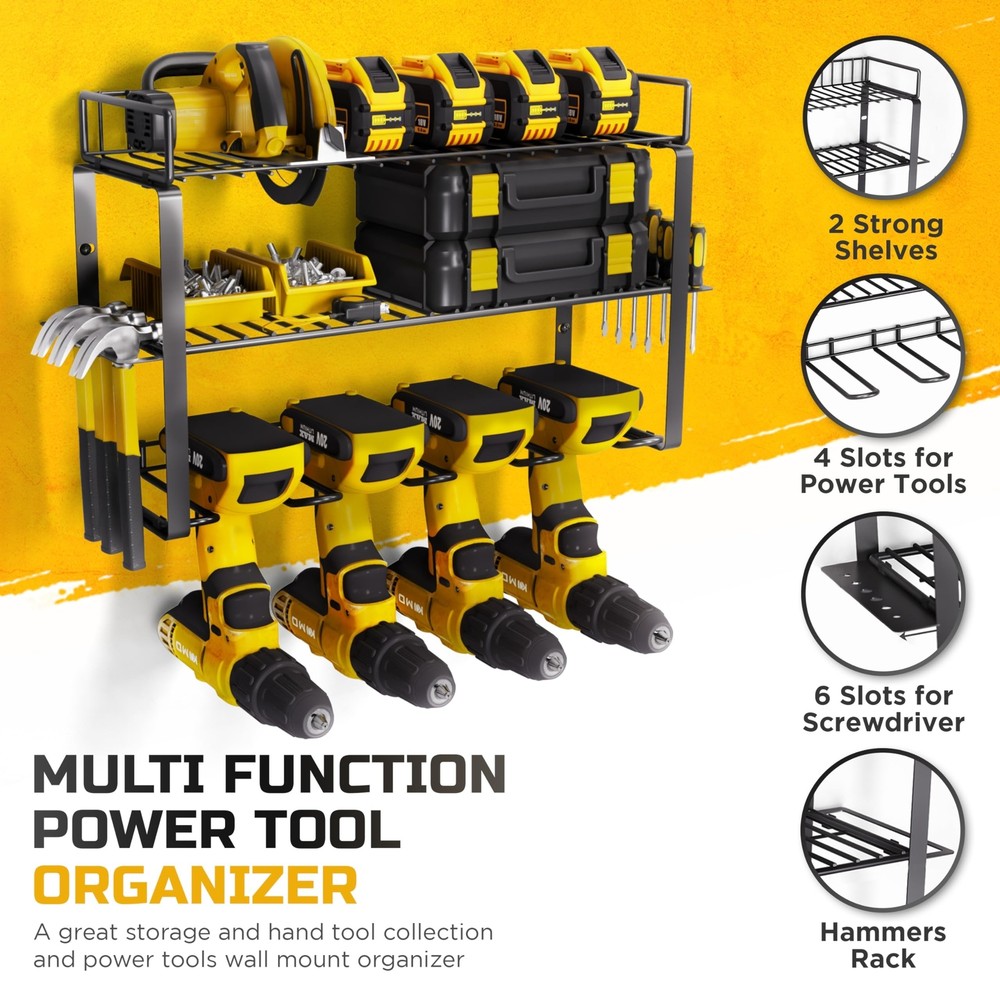 Power Tool Organizer Wall Mount- Heavy-Duty 3-Layers Tool Organizers and Stor...