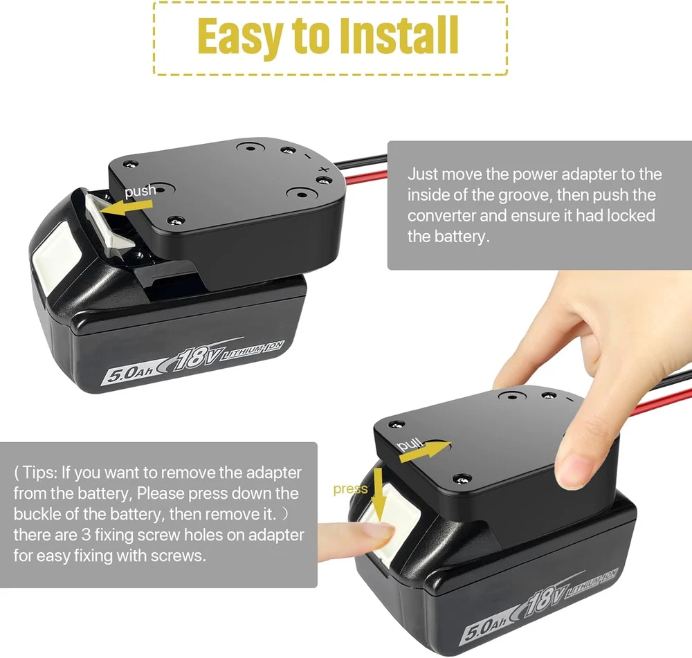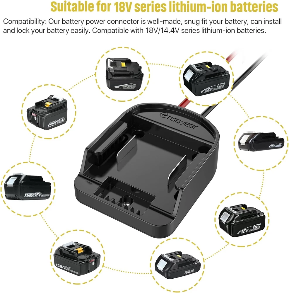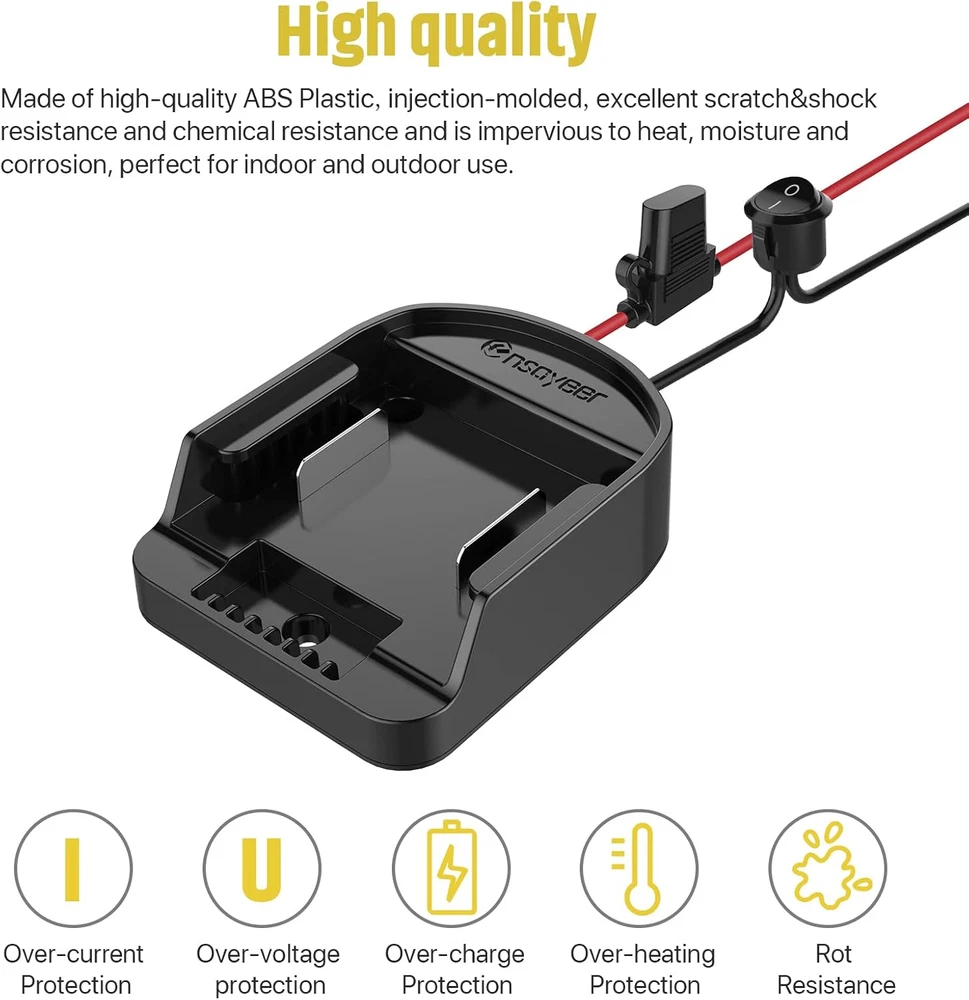 Store New Arrivals Add to Favorite View Feedback Contact Power Wheel Adapter with Fuse & Switch, Secure Battery Adapter for 18V Lithium Battery, with 12 Gauge Wire, Good Power Convertor for DIY Ride on Truck, Robotics, RC Toys and Work Lights Description Reusability Single Use Unit Count 1.0 Count Battery Cell Composition Lithium Ion Color 1 Pack Country of Origin China Item Weight 5.3 ounces Voltage 14.4 Volts, 18 Volts Package Dimensions 7.01 x 3.7 x 1.65 inches Compatibility: Our battery power connector is well-made, snug fit your battery, can install and lock your battery easily. Compatibility: Our battery power connector is well-made, snug fit your battery, can install and lock your battery easily. Compatible with 18V/14.4V series lithium-ion batteries. Safety Design: For your safety, our product has some security design. The switch ensures you can turn on&off the battery easily. The fuse supply overpowers protection. The copper contact improves the conductivity and safety. Heat-resistance 12 AWG wire is suitable for high-power batteries. Easy to Install: Just move the power adapter to the inside of the groove, then push the converter and ensure it had locked the battery. ( Tips: If you want to remove the adapter from the battery, Please press down the buckle of the battery, then remove it. ), there are 3 fixing screw holes on the adapter for easy fixing with screws. Versatility: Power wheels adapter has 12.6 inches of 12 gauge wire installed; Maximum permissible current 18A, You can use it to upgrade your power wheels, toys, or Robotics DIY, high power application, etc. Let your kids have nearly endless power wheels fun with a 5-second battery swap out! High-quality: Made of high-quality ABS Plastic, injection-molded, excellent scratch&shock resistance and chemical resistance and is impervious to heat, moisture, and corrosion, perfect for indoor and outdoor use. Product Description Versatility Power wheels adapter has 12.6 inches of 12 gauge wire installed; Maximum permissible current 40A, You can use it to upgrade your power wheels, toys, or Robotics DIY, high power application, etc. Let your kids have nearly endless power wheels fun with a 5-second battery swap out! Compatibility Our battery power connector is well-made, snug fit your battery, can install and lock your battery easily. Compatible with WORX 20V PowerShare series lithium-ion batteries. High-quality Made of high-quality ABS Plastic,injection-molded, excellent scratch&shock resistance and chemical resistance and is impervious to heat, moisture, and corrosion, perfect for indoor and outdoor use. Easy to Install Just move the power adapter to the inside of the groove, then push the converter and ensure it had locked the battery. ( Tips: If you want to remove the adapter from the battery, Please press down the buckle of the battery, then remove it. ), there are 2 fixing screw holes on the adapter for easy fixing with screws. ABOUT US We offer the best prices around on high quality products. Our E-store includes media such as books, movies, music and games while offering electronics, toys, sporting apparel, clothing, tools, general home, garden items and more. SHIPPING We are always working hard to ensure your package arrives as soon as possible. Please understand that some factors like weather, high postal traffic, and the performance of shipping companies are outside of our control. We offer free shipping to the lower 48 states and ship within 2 business days of payment, usually sooner. We do not accept P.O. Boxes. Please provide a physical address. For shipping outside of the continental USA, we only use eBay's Global Shipping Program.The item is shipped to KY and then sent to the rest of the world. International customers are responsible for all duties and taxes. Continue to check out in order to calculate costs for shipping the item to your country. Messages regarding eBay's Global Shipping Program MUST be directed at eBay EXCLUSIVELY. RETURNS We offer a 30-Day Return Policy on items which you are not completely satisfied with. You have the option for a full-refund or an exchange of the item. No returns are available on items shipped outside of the USA. PAYMENT We accept PayPal. CONTACT US This page content is yet to come Please ad us to your favorite seller and visit again later Thank You CUSTOMER SATISFACTION We try our very best to make sure every customer is completely satisfied. If there's a problem, message us! We're happy to help. WE ACCEPT Copyright © 2021 AutoDS. | All Rights Reserved