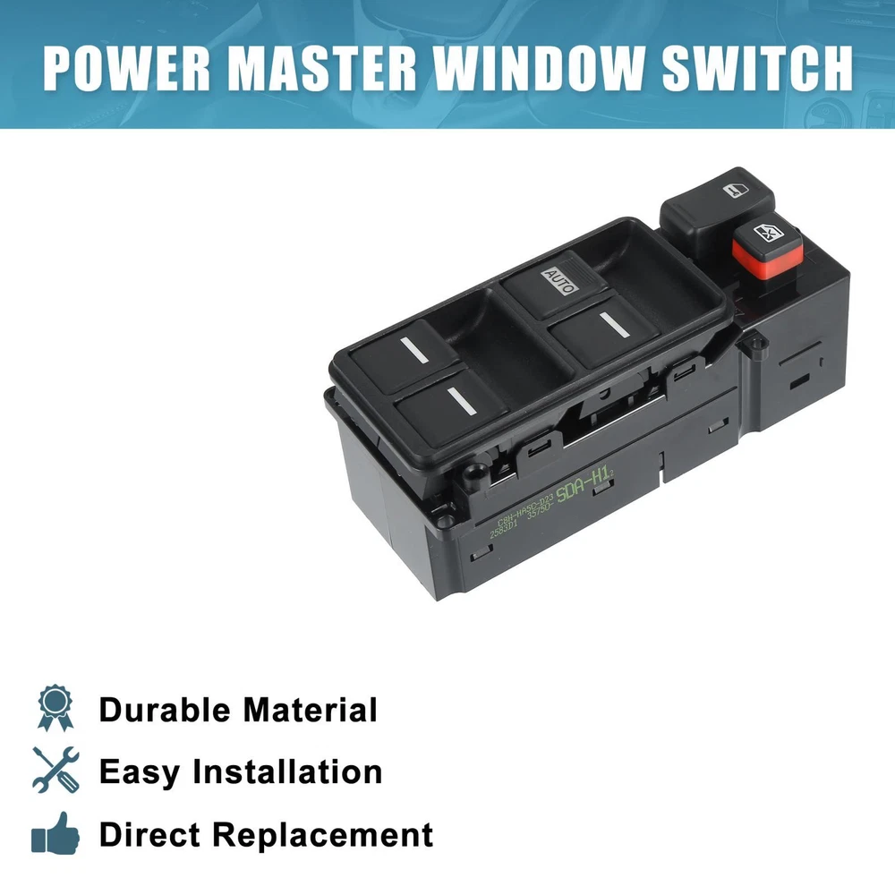 Document Description:Direct replace your broken window switch, please confirm your car model and part number before purchasing.Made of plastic material, not easy to crack with long service life.Please allow 1-2cm differences due to manual measurement.This is a non-OEM product, accessory only!Specifications:Color: BlackMaterial: PlasticOE Number: 35750-SDA-H12Pin Number: 23Size: 13.9x6.3x5.9cm / 5.47"x2.48"x2.32"(L*W*H)Fitment:Fit for Honda Accord 2.4L 2003-2007Installation Steps:Firstly confirm your vehicle must be cutting off the power.Use a skid to pry the old switch out carefully.Pull out the plug from the old switch.Connect the new switch to the wiring harness.Finally, install it into the bezel bracket.Note:Please confirm the OE number, model, and year match your vehicle. Please confirm the pin number and position are the same as the original switch.Please install with power off of the battery, if it stops working after a period of work, you need to reoperate the steps again.This product needs to be installed with the power cut off. Installation in a charged status may damage the circuit and cause it not to work. Package Includes: 1 x Car Power Window Switch1 x Removal ToolWindow button does not work processing method:If the newly installed switch button does not work most likely because the vehicle still recognizes the old switch, the following operations are required.1. Press the left front door button (ie the button that controls the driver's seat window) down to the bottom and stay for 5~8 seconds.2. When the button is lowered for 5~8 seconds, please push the button up to the end and stay for 5~8 seconds, then turn off the vehicle and restart the vehicle to complete the match.Note: Please pay attention to the mating plug before installing the switch, and clean the excess dust. Power Window Master Control Switch 35750-SDA-H12 for Honda Accord 2003-07 Description: Direct replace your broken window switch, please confirm your car model and part number before purchasing. Made of plastic material, not easy to crack with long service life. Please allow 1-2cm differences due to manual measurement. This is a non-OEM product, accessory only! Specifications: Color: Black Material: Plastic OE Number: 35750-SDA-H12 Pin Number: 23 Size: 13.9x6.3x5.9cm / 5.47"x2.48"x2.32"(L*W*H) Fitment: Fit for Honda Accord 2.4L 2003-2007 Installation Steps: Firstly confirm your vehicle must be cutting off the power. Use a skid to pry the old switch out carefully. Pull out the plug from the old switch. Connect the new switch to the wiring harness. Finally, install it into the bezel bracket. Note: Please confirm the OE number, model, and year match your vehicle. Please confirm the pin number and position are the same as the original switch. Please install with power off of the battery, if it stops working after a period of work, you need to reoperate the steps again. This product needs to be installed with the power cut off. Installation in a charged status may damage the circuit and cause it not to work. Package Includes: 1 x Car Power Window Switch 1 x Removal Tool Window button does not work processing method: If the newly installed switch button does not work most likely because the vehicle still recognizes the old switch, the following operations are required. 1. Press the left front door button (ie the button that controls the driver's seat window) down to the bottom and stay for 5~8 seconds. 2. When the button is lowered for 5~8 seconds, please push the button up to the end and stay for 5~8 seconds, then turn off the vehicle and restart the vehicle to complete the match. Note: Please pay attention to the mating plug before installing the switch, and clean the excess dust. ITEM SPECIFICS Brand X AUTOHAUX To Control Window Placement on Vehicle Front Features Durable Manufacturer Part Number 35750-SDA-H12 Type Switch Assembly Color Black Universal Fitment No Product Name Car Power Window Switch Net Weight 191g Shell Color Black Material Plastic Dimension 13.9x6.3x5.9cm / 5.47"x2.48"x2.32"(L*W*H) Package Content 1 x Car Power Window Switch 1 x Removal Tool upc 724708724814 Manufacturer Warranty 3 Months NOTICE If you have any questions, please feel free to contact our customer service. Our response will be faster than eBay! Our Handling Time: within 24 hours on weekdays eBay Handling Time: 72 hours ABOUT US SHIPPING POLICY PAYMENT RETURN CONTACT US We are committed to providing professional, safe and effective personal care products. We strive to provide customers loved products at the competitive price. We work with suppliers to discover practical, easy-to-use personal care products. Our store not only offers quality products at the competitive price, but also has professional customer service, offers you comfortable shopping experience. Please don't forget to follow us on eBay. We will continue to update and provide more and more practical personal care products. switchpart thank you for your business! We work hard to safely and securely ship your order in the least amount of time. Storewide free shipping in United States. All our items will be shipped to buyer's address, please confirm your address on eBay before you purchase. Taxes and other charges are included in the item price or shipping charges. Buyers are responsible for these charges. We accept payment methods show in payment details. Payment must be received within 7 days of auction closing. According to eBay guidelines, all unpaid purchases case will be opened automatically. If you need to specify the color or other information for the items you purchased, please Click here to contact us directly with item # and your eBay ID. We offer a 30 day return policy. This is under the following conditions: The item must be unused and in a resalable condition otherwise are not eligible for a refund. All items returned by post are returned at your expense, we cannot be held responsible for this. Please use a traceable service. Generally we answer emails w