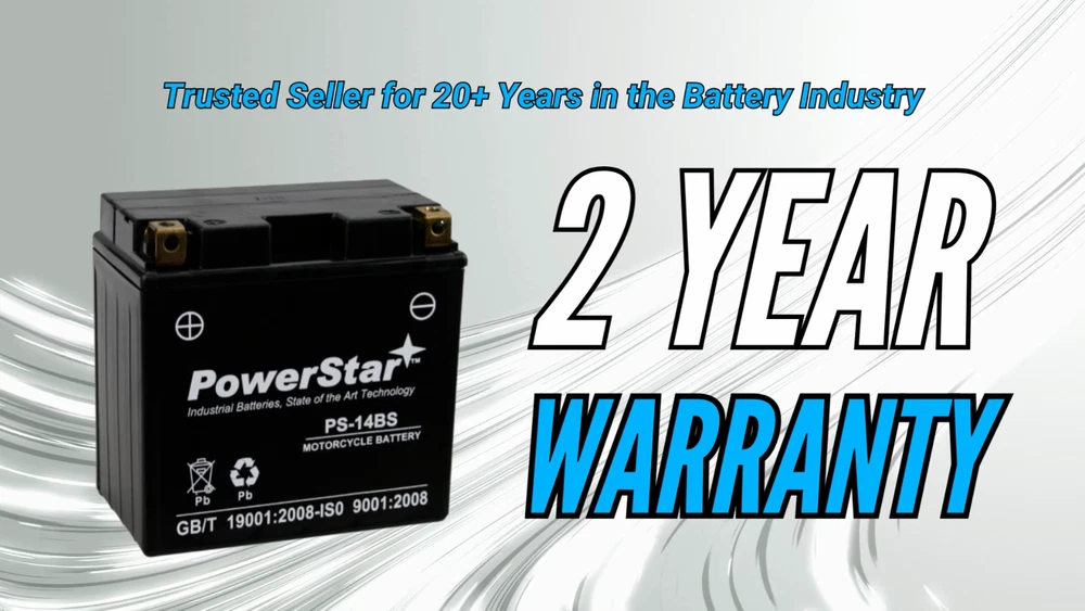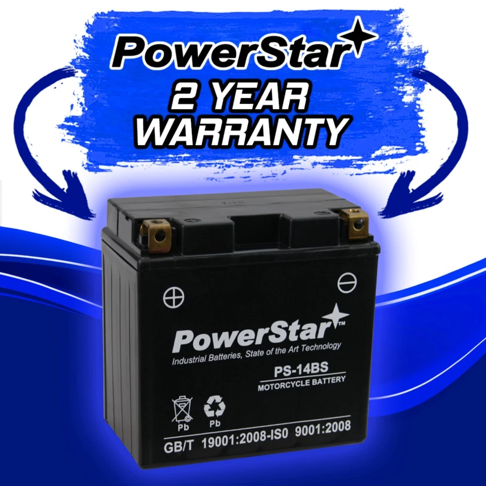 Upgrade your ride with the PowerStar PS-14BS 12V 12Ah 200 CCA AGM Motorsports Battery , a dynamic powerhouse designed to elevate your driving experience. Say goodbye to sluggish starts and unreliable performance - with the PS-14BS , you're equipped with the ultimate solution to all your power needs. Our sealed motor sports batteries feature Absorbed Glass Mat technology (AGM for short). This design dramatically improves a battery's performance. Perfect for motorcycle, snowmobile, ATV, and watercraft applications. PowerStar batteries are shipped charged and ready to install! Seamless Replacement for Part Numbers = YTX14-BS , 14-BS, 14BS, BTX14-BS, CTX14 (FA), CTX14-BS, EBX14-BS, ES-TX14, ES14BS, ETX14-BS, GTX14-12B, GTX14-BS, LTX14-BS, M3RH4S, M4RH4S, M7RH4S, PTX14-BS, SC14FA, STX14-BS, TX14, UTX14-BS, WP14-BS, YTX14 ... and more! See full specifications below! PowerStar PS-14BS Battery Specifications Voltage = 12V Capacity = 12 Ah CCA = 200 CCA Terminal Type = A ; as pictured (Positive - R, Negative -L) L = 5.94” x W = 3.43” x H = 5.79” Weight = 9.43 lbs (4.28 kg) Seamless Replacement for Part Numbers= YTX14-BS , 14-BS, 14BS, BTX14-BS, CTX14 (FA), CTX14-BS, EBX14-BS, ES-TX14, ES14BS, ETX14-BS, GTX14-12B, GTX14-BS, LTX14-BS, M3RH4S, M4RH4S, M7RH4S, PTX14-BS, SC14FA, STX14-BS, TX14, UTX14-BS, WP14-BS, YTX14, 12V 12Ah batteries . APPLICATIONS= Motorcycle, Snow Mobile, ATV, Watercraft, Scooter, anywhere 12V 12Ah batteries are needed! Upgrade your ride with the PowerStar PS-14BS Motorsports Battery , a dynamic powerhouse designed to elevate your driving experience. Say goodbye to sluggish starts and unreliable performance - with the PS-14BS , you're equipped with the ultimate solution to all your power needs. Equip your ride with this PowerStar Motorsports Battery and enjoy the thrill of consistent power, durability, and performance. Dominate the road, the trail, and every adventure in between with the battery that's built to keep you moving forward. Get yours today and experience the difference that true power can make! High CCA and Good Starting Performance Need a reliable start every time? The PowerStar YTX14-BS battery delivers high cold cranking amps (CCA) and exceptional starting performance , ensuring you're always ready to hit the road. High Capacity, Long Life The PowerStar YTX14-BS boasts a high-capacity design that provides extended usage time . Experience the freedom of longer rides without worrying about frequent recharges. Low Self-Discharge Experience prolonged storage life with the low self-discharge feature. This ensures your battery remains charged and ready for action even after extended periods of inactivity . Sealing Structure of PP Materials Crafted with a sealing structure of premium PP materials , this battery is highly resistant to leaks and corrosion , offering durability that stands up to tough environmental conditions. This fully sealed design means it can be mounted in any position or direction . Never fill or spill your battery again! Maintenance-Free Design Bid farewell to the hassle of regular battery maintenance. Our maintenance-free design ensures easy, no-fuss operation, allowing you to focus on enjoying your ride. C.O.S Application Perfect for a wide range of applications, whether you're a casual rider, a dedicated off-roader, or a motorsports enthusiast seeking unbeatable performance. This ensures that your battery arrives fully charged and ready to go! Fits a Wide Range of Models Compatible with an extensive list of models including YTX14-BS, 14-BS, 14BS, BTX14-BS, CTX14 (FA), CTX14-BS, EBX14-BS, ES-TX14, ES14BS, ETX14-BS, GTX14-12B, GTX14-BS, LTX14-BS, M3RH4S, M4RH4S, M7RH4S, PTX14-BS, SC14FA, STX14-BS, TX14, UTX14-BS, WP14-BS, YTX14 (and more!), this battery is engineered to power various motorsports vehicles. 2-Year Warranty Drive with confidence knowing that your investment is safeguarded. Our 2-year warranty guarantees worry-free usage and dependable performance. ADDITIONAL FEATURES Low Pressure Venting System High Recovery Capability