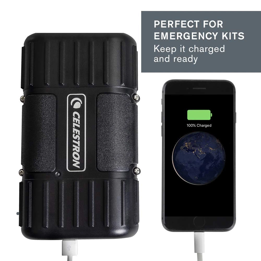 Keep your telescopes, smartphones, tablets, GPS systems, cameras and other USB-powered devices charged and ready with PowerTank Lithium LT—the ideal outdoor portable-charging solution. specially designed this product with the needs of amateur astronomers in mind; it’s packed with useful features. First, you’ll find a 12V connection for your telescope—no cigarette lighter port needed. Once your telescope is connected, attach the battery securely to one of the tripod legs with the included Velcro straps so it is safely out of the way. One USB port keeps your other devices charged, and can be used simultaneously with the telescope charger. When you’re not observing, keep this battery charged and at the ready for unexpected emergencies. PowerTank Lithium LT’s unique Nickel Manganese Cobalt Oxide chemistry which delivers a steady charge over long periods and requires less maintenance than a traditional sealed lead-acid battery. It will last you many times longer thanks to its un-recharged shelf life of 10 years and 2000 charge cycle lifespan. But most importantly, the PowerTank Lithium LT can withstand higher temperatures than standard lithium cobalt batteries and will not be a fire danger if accidentally punctured. All this combined with its rugged design make PowerTank Lithium LT the perfect outdoor power supply. PORTABLE POWER MADE FOR ASTRONOMERS: The perfect solution for most computerized telescopes, PowerTank Lithium LT features a regulated 12V connection, 8 hours of battery life, a USB port, and more. Mounts directly to the tripod leg. SMALLER, LIGHTER, SAFER: Unique Lithium Nickel Manganese Cobalt Oxide chemistry delivers a steady charge over long periods and requires less maintenance than a traditional sealed lead-acid battery. 5 YEARS OF DEPENDABLE PERFORMANCE: Unlike other batteries with limited lifespans, PowerTank Lithium LT will be your companion for 5 full years of astronomy adventures. WORKS WITH A VARIETY OF DEVICES: 12V connection works with all current computerized telescopes. Also includes one onboard USB port to charge your smartphone or other USB-powered devices in the field. AN EMERGENCY KIT ESSENTIAL: Keep PowerTank Lithium LT charged and ready for unexpected power outages. UNBEATABLE WARRANTY & SUPPORT: Buy with confidence from , a leading telescope brand in California since 1960. Your purchase includes a 2-Year US Warranty and unlimited support from our team of US-based experts.