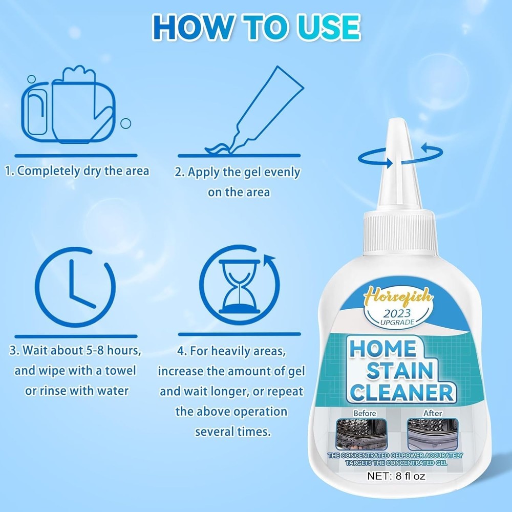 Effecive: Our product is the ideal solution to tough stains. You take 5 minutes to apply the gel and 5-8 hours to wait for it, you can clean on every corner of the house Quick: The thick gel can adhere to any surface, even on vertical and inclined surfaces, without dripping. This household cleaning gel for washig machine makes an effective solution for tackling any household cleaning problem. Easy to Use: 1. Dry the area , and unscrew the cap of our gel. 2. Tear off the aluminum foil paper, and install the white tip by rotating inward. 3.Then squeeze it evenly in need. 4. Wait 5-10 hours to allow the washing machine cleaner to work. 5. Scrub the treated areas with a brush. 6. Rinse with water or wipe with a towel. (Our product provides multi-sized brushes with help clean the stain from all Wide Range of Use: can be used in refrigerator, washing machine silicone sealant, kitchen sink, shower, bathroom sink, tile grout,silicone sealant, sinks, washbasin, and toilet bowls, bathtub, veranda, ceramic tile, window frame, and so on. High-capacity bottle can use lasts up to 6 to 12 months or more. Satisfaction: We're so confident that you'll love our grout cleaner, if you don't like this washer cleaner and if you have any problem about our front load washer cleaner, contact us at any time for help. Product Description
