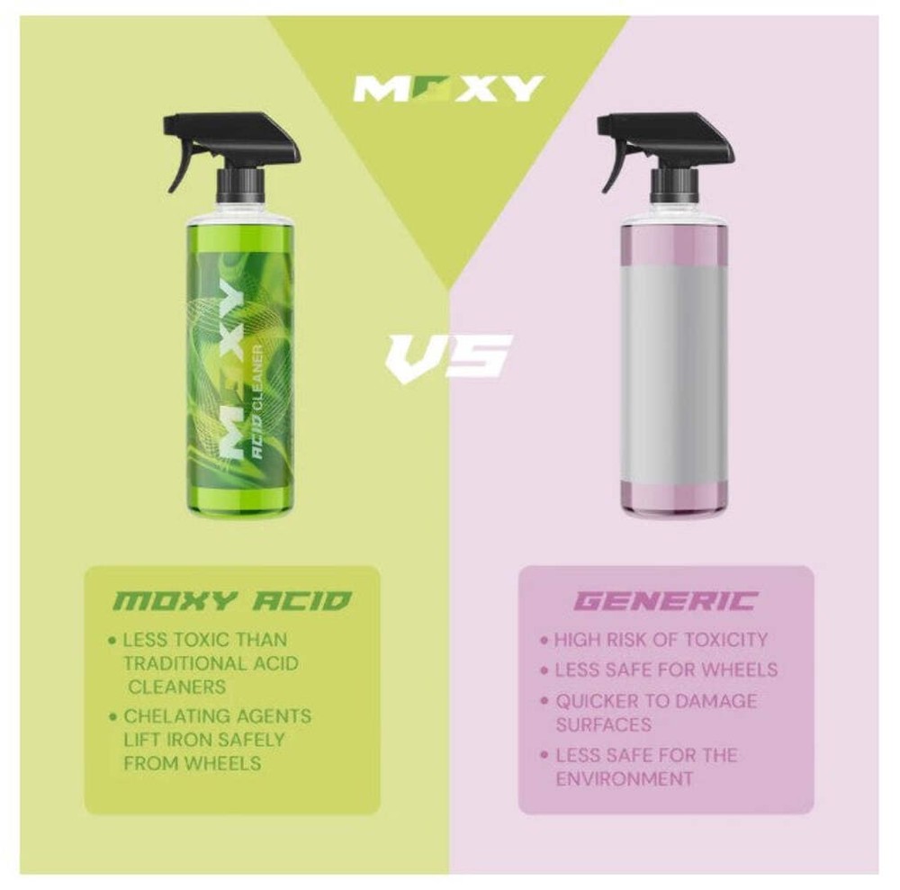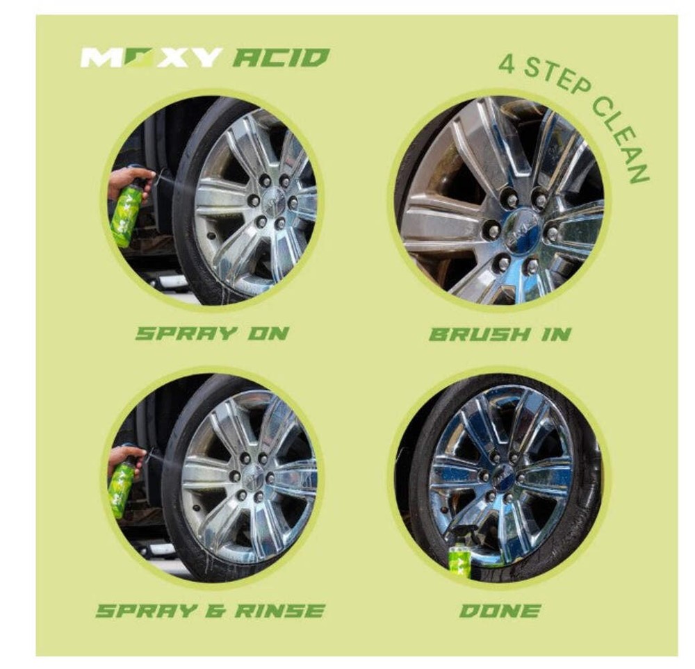 Acid Cleaner DO NOT USE ON RAW METAL OR DELICATE/MATTE FINISHES. DO NOT USE ON HOT SURFACES OR IN DIRECT SUNLIGHT. USE ON FACTORY COATED SURFACE ONLY. DO NOT USE ON REPAINTED PANELS. READ DIRECTIONS BEFORE USE. PERFORM TEST SPOT BEFORE PROCEEDING. Our acid based cleaner dissolves grime and contaminants from polished/coated metal, glass, porcelain and fiberglass surfaces. This heavy duty formula will remove water spots, soap scum, rust and other common contaminants. Use for wheels, emblems or even household cleaning.WEAR GLOVES AND READ WARNINGSPOLISHED AND COATED METAL: Mist the surface of with water, then spray acid cleaner onto the surface, ensuring even coverage, let stand for 15-20 seconds before spraying the acid off with a pressure washer and washing with soap and water. For heavily contaminated surfaces, mist with water and spray entire surface down with acid, use your choice of detail brushes to agitate contaminants and acid before thoroughly washing off with a pressure washer. Repeat as needed and always wash product off with soap and water. Dry with a microfiber towel and use a sealant of your choice to lock in shine and prevent water spots.PAINTED SURFACES, GLASS, PLASTICS AND EMBLEMS: Ensure you are not using on a hot surface or hot towel. Spray acid onto a clean microfiber towel and wipe onto surface and gently rub the product in to agitate contaminants. Working in sections. DO NOT WAIT quickly clean surface with soap and water. You can also clean off the residue using a neutral cleaner such as a glass cleaner or isopropyl alcohol. WARNING: The use of Moxy Acid on windshields may result in hazing or discoloration due to micro-scratches. It is recommended to test a small area along the wiper blade path prior to full application.Please consult with your wheel manufacturer prior to use. Please consult with a plumber regarding your specific plumbing and local disposal regulations for household use. Moxy is not liable for improper use of this product. Acid Cleaner DO NOT USE ON RAW METAL OR DELICATE/MATTE FINISHES. DO NOT USE ON HOT SURFACES OR IN DIRECT SUNLIGHT. USE ON FACTORY COATED SURFACE ONLY. DO NOT USE ON REPAINTED PANELS. READ DIRECTIONS BEFORE USE. PERFORM TEST SPOT BEFORE PROCEEDING. Our acid based cleaner dissolves grime and contaminants from polished/coated metal, glass, porcelain and fiberglass surfaces. This heavy duty formula will remove water spots, soap scum, rust and other common contaminants. Use for wheels, emblems or even household cleaning. WEAR GLOVES AND READ WARNINGS POLISHED AND COATED METAL: Mist the surface of with water, then spray acid cleaner onto the surface, ensuring even coverage, let stand for 15-20 seconds before spraying the acid off with a pressure washer and washing with soap and water. For heavily contaminated surfaces, mist with water and spray entire surface down with acid, use your choice of detail brushes to agitate contaminants and acid before thoroughly washing off with a pressure washer. Repeat as needed and always wash product off with soap and water. Dry with a microfiber towel and use a sealant of your choice to lock in shine and prevent water spots. PAINTED SURFACES, GLASS, PLASTICS AND EMBLEMS: Ensure you are not using on a hot surface or hot towel. Spray acid onto a clean microfiber towel and wipe onto surface and gently rub the product in to agitate contaminants. Working in sections . DO NOT WAIT quickly clean surface with soap and water. You can also clean off the residue using a neutral cleaner such as a glass cleaner or isopropyl alcohol. WARNING: The use of Moxy Acid on windshields may result in hazing or discoloration due to micro-scratches. It is recommended to test a small area along the wiper blade path prior to full application. Please consult with your wheel manufacturer prior to use. Please consult with a plumber regarding your specific plumbing and local disposal regulations for household use. Moxy is not liable for improper use of this product. × × × × × × × × Shipping info Click the Shipping & Payments tab above the listing description for more info Click the Shipping & Payments tab above the listing description for more info! Additional delivery notes PICK UP OPTION Sorry, our items are NOT available for pick-up. PAYMENT Immediate payment is required upon selecting "Buy It Now" or upon checking out through the cart. We accept payment via U.S. PayPal accounts and all Major Credit Cards, Debit Cards & Google Pay. We are legally required to collect sales tax in those states and localities where we maintain a physical presence (nexus). The applicable amount of sales tax charged to an order will be calculated based on the shipment destination's state and local sales tax laws. Thank you for shopping with us on eBay! Additional Information No additional information at this time Ask seller a question You might also like Base Tune File and ECU Setup Cherry Burst Soap Leather Cleaner Arctic Black Car Cologne Contact To contact our Customer Service Team, simply click the button here and our Customer Service team will be happy to assist. Ask seller a question © American Tuning & Fabrication Shipping & Payments Shipping is calculated on eBay, click the Shipping & Payments tab above the listing description for more information. Payment Accepted Payment Methods Immediate payment is required upon selecting "Buy It Now" or upon checking out through the cart. We accept payment via U.S. PayPal accounts and all Major Credit Cards, Debit Cards & Google Pay. We are legally required to collect sales tax in those states and localities where we maintain a physical presence (nexus). The applicable amount of sales tax charged to an order will be calculated based on the shipment destination's state and local sales tax laws. Thank you for shopping with us on eBay! Returns Returns are accepted Items must be returned within of the auction ending Seller will pay for return shipping. eBay integration by
