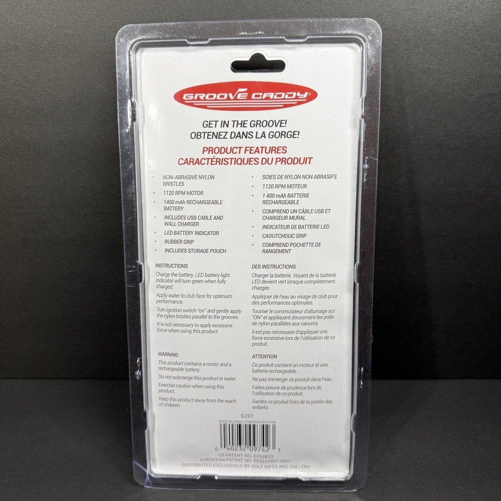 Enhance your golfing experience with the Groove Caddy G2 Motorized Golf Club Cleaner. This innovative accessory is designed to make cleaning your clubs a breeze, so you can focus on your swing. Its rechargeable feature ensures you always have the power you need to keep your clubs spotless on the course. The sleek grey design of the Groove Caddy G2 is both stylish and functional, easily fitting into your golf bag for convenient access. Whether you're a seasoned golfer or just starting out, this is an essential tool for maintaining your gear.