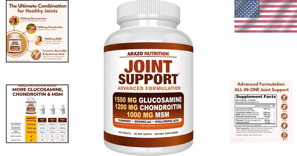 Powerful Joint Supplement - Glucosamine Chondroitin for Healthy Bones - 180 Ct ‹ › ‹ › ‹ › ‹ › ‹ › ‹ › ‹ › ‹ › ‹ › ‹ › ‹ › Powerful Joint Supplement - Glucosamine Chondroitin for Healthy Bones - 180 Ct - Made in the USA Key Features: POWERFUL JOINT RELIEF: A complete dietary supplement that aids in repairing cartilage, boosting joint mobility, and increasing joint flexibility. EXTRA STRENGTH INGREDIENTS: Formulated with Glucosamine (1500mg), Chondroitin (1200mg), MSM (1000mg), Turmeric, Boswellia, and Hyaluronic Acid for enhanced joint health and comfort. JOINT AND CARTILAGE FLEXIBILITY: Hyaluronic Acid acts as a lubricator and shock absorber for your joints, promoting smooth and pain-free movement. Benefits: Suitable for anyone experiencing joint discomfort, inflammation, or stiffness. Supports joint structure and protects joint tissue. Perfect for men, women, and seniors looking to maintain an active lifestyle. Helps rebuild and maintain joint flexibility to ease discomfort from age, weight, or physical activities. Crafted with care, ensuring premium quality and effectiveness. Why Choose Our Joint Supplement? If you are seeking a reliable solution for joint health, our Powerful Joint Supplement combines an effective blend of Glucosamine, Chondroitin, and other powerful ingredients designed to provide you with the relief you need. Whether you are dealing with the discomfort of aging, weight-related stress, or sports-related wear and tear, this formula supports the structure and resilience of your joints. Don't let joint discomfort hold you back from enjoying life — invest in your mobility today with our premium supplement. Order now and experience the difference! Shipping Free & Fast Shipping - We offer free shipping to most of the USA with a normal delivery time of 3-7 days. However, due to the current situation, additional delivery time (up to 3 weeks) may be required for some items. Alternative Carriers - We may use alternative carriers (e.g. USPS, FedEx, UPS, etc.) to ensure your package arrives safely and on time. Due to the use of multiple carriers, we are unable to provide a tracking number automatically. Handling Time - Orders are processed and shipped within 1-2 business days of receiving cleared payment. Shipping Restrictions - Shipping to Alaska, Hawaii, Puerto Rico, Guam, and other US territories may incur shipping charges or delivery restrictions. Please contact us before ordering, or your order can be refunded/cancelled. State Restrictions - There may be restrictions based on your state of purchase. For example, certain items may not be shipped to California due to state regulations. Contact for Tracking Updates - If you require tracking updates or have any concerns about the delivery of your order, please feel free to contact us, and we will be happy to assist you. Return 30-Day Hassle-Free Returns - We want you to be completely satisfied with your purchase. If you are not, you can return the item within 30 days of receiving it for a full refund or exchange. Easy Return Process - To start a return, simply contact us and we will provide you with a prepaid return shipping label and detailed instructions. Restocking Fee - There are no restocking fees for returns. However, the buyer is responsible for return shipping costs if the return is not due to a seller's error. Refund Processing Time - Refunds will be processed within 5 business days of receiving the returned item in its original condition. Payment We accept all major credit cards, PayPal, and Apple Pay for your convenience. Your payment information is secure and encrypted to ensure a safe and seamless transaction. Please complete your payment within 3 days of purchase to avoid any delays in shipping. Feedback Your feedback is extremely important to us. We strive to provide the best products and customer service possible. If you are satisfied with your purchase, please take a moment to leave us a positive review. If you have any concerns or issues with your order, please contact us before leaving negative feedback. We are committed to resolving any problems and ensuring your satisfaction. Contact Us If you have any questions or concerns, please feel free to reach out to our customer support team. You can contact us through the eBay messaging system. We are available Monday to Friday, 9:00 am to 5:00 pm EST, and we will do our best to respond to your inquiry within 24 hours. Buy it now and enjoy a pleasant shopping experience! UPC: Not Set Expiration Date: Joint Support Supplement Unit Quantity: 180 Active Ingredients: Chondroitin,Glucosamine,Hyaluronic Acid,Turmeric,MSM,Boswellia Formulation: Tablet Features: Gluten-Free Main Purpose: Joint Support Ingredients: Chondroitin,Glucosamine,Hyaluronic Acid,Turmeric,MSM,Boswellia Department: Adult When to Take: Not Set Brand: Unbranded Type: Vitamin MPN: Not Set Number of Pills: 180 Dosage: Not Set Country/Region of Manufacture: Not Set Flavor: Turmeric Item Weight: 10 ounces Volume: Not Set Unit Type: oz