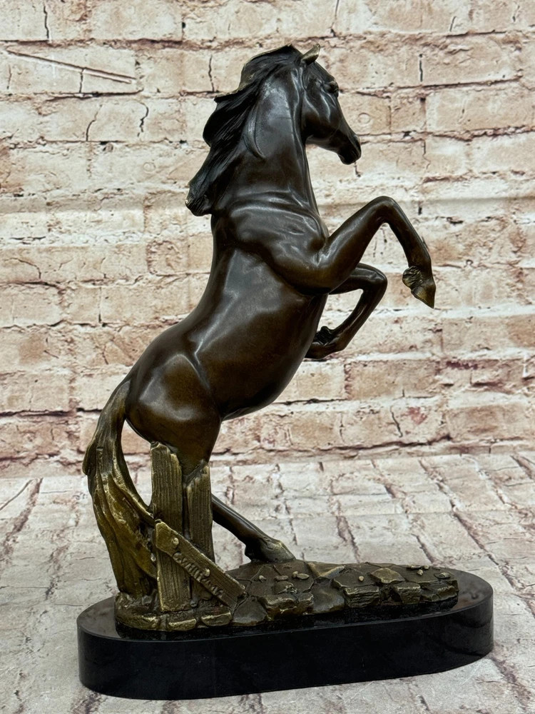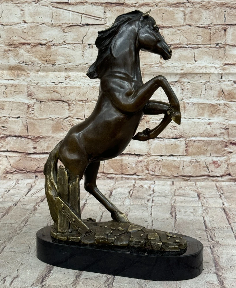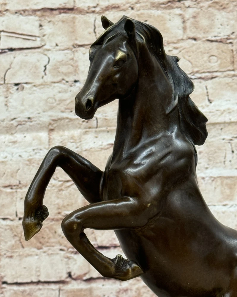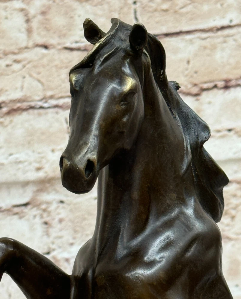 . Condition : This sculpture is in perfect condition. Bronze Dimensions with Marble Base: Height 13" X Width 9.5" Marble Dimensions: Diameter 9.5" Height without base:8.5" Weight:12 LBS Inventory:24YDW1676142 Introducing the captivating "Graceful Dancer" bronze sculpture, a tribute to the artistry and elegance of ballet. This exquisite piece showcases a graceful ballerina in mid-performance, capturing the fluidity and poise of her movements. With her body arched and her limbs extended, she exudes a sense of ethereal beauty and effortless grace. Crafted with meticulous attention to detail, this sculpture is made from 100% bronze using the renowned lost wax casting method. This ancient technique ensures that every nuance and delicate curve of the dancer's form is faithfully reproduced, resulting in a truly lifelike representation. The sculpture features a rich brown patina finish, adding depth and warmth to its overall appearance. Mounted on a sleek marble base, this sculpture commands attention and serves as a striking centerpiece in any setting. Whether displayed in a dance studio, art gallery, or cherished as a personal treasure, this bronze sculpture embodies the timeless allure of ballet and celebrates the dedication and artistry of dancers. Created by a talented artist, this masterpiece bears the artist's signature, a testament to their skill and creativity. Embrace the enchantment and beauty of ballet with this captivating bronze sculpture, and let it inspire your appreciation for the art of dance. Thoroughbred Rearing Horse Trainer Equestrian Farm Art Bronze Marble Statue Gift www.bronzhaus.com Video will open in a new window Using the eBay App? Paste link into a browser window: [isdntekvideo]