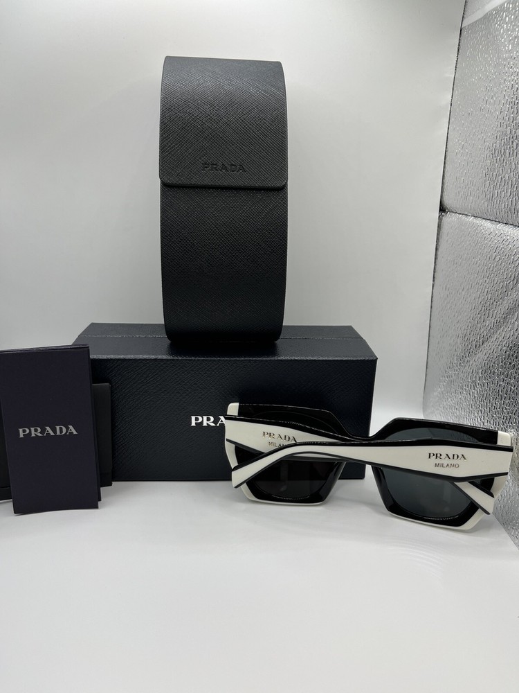 New Prada Oversized Cat Eye Sunglasses. Designed with geometric shaping. Full set includes case, box, and cleaning cloth. Lens width: 55mm Bridge width: 17mm Temple length: 145mm
