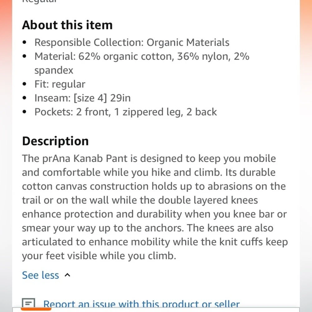 Great pants for hiking and other outdoor activities Organic cotton, nylon, elastane Side pocket with zipper 28” inseam