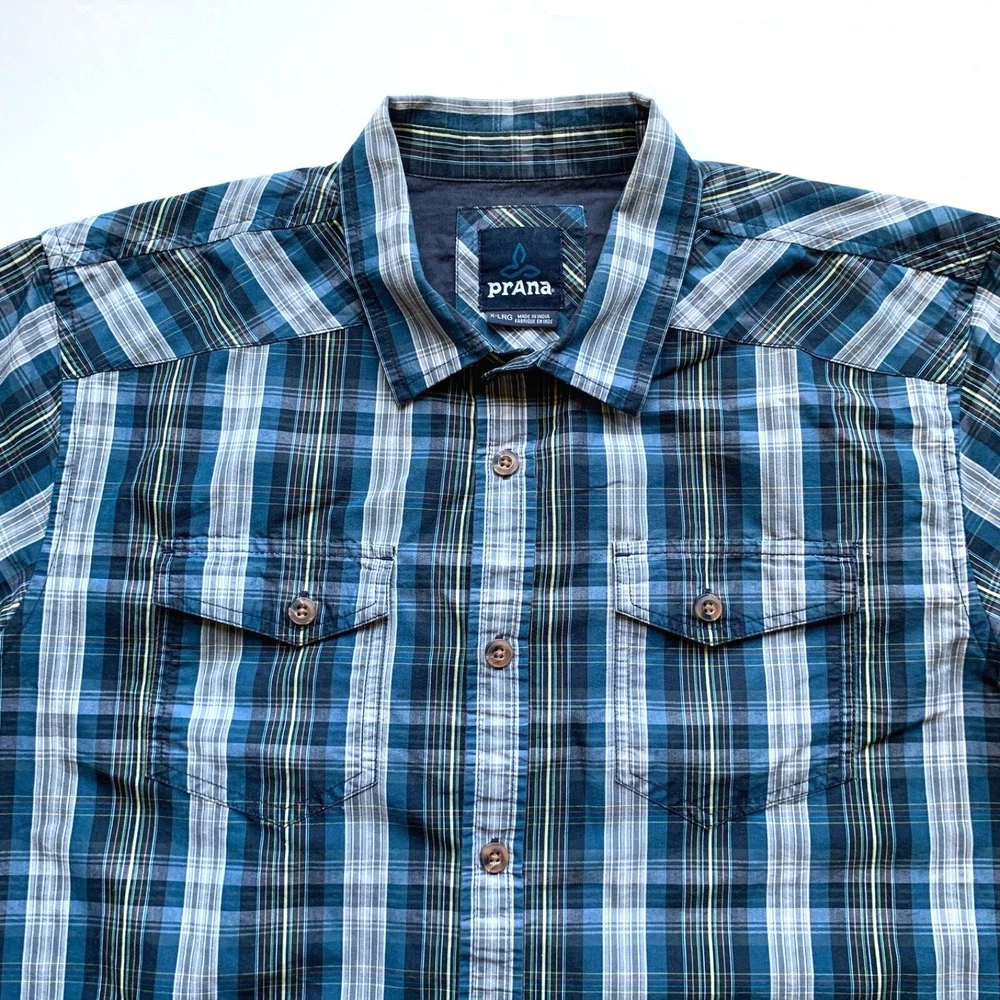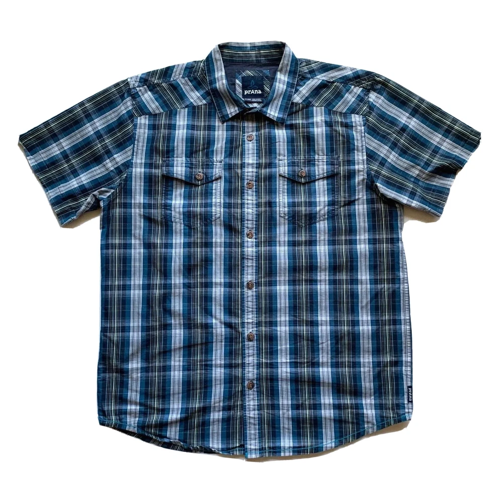 Prana Plaid Button Up Shirt Men XL Organic Cotton Blend Short Sleeve Lightweight Condition: Good condition. Please see all photos for condition and measurements. Please let us know if you have questions. Thanks for shopping with us.