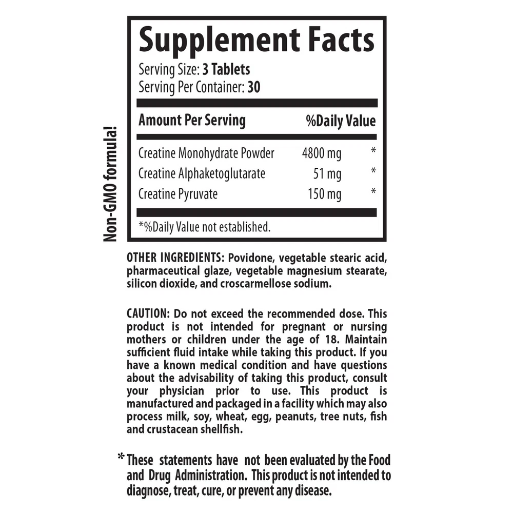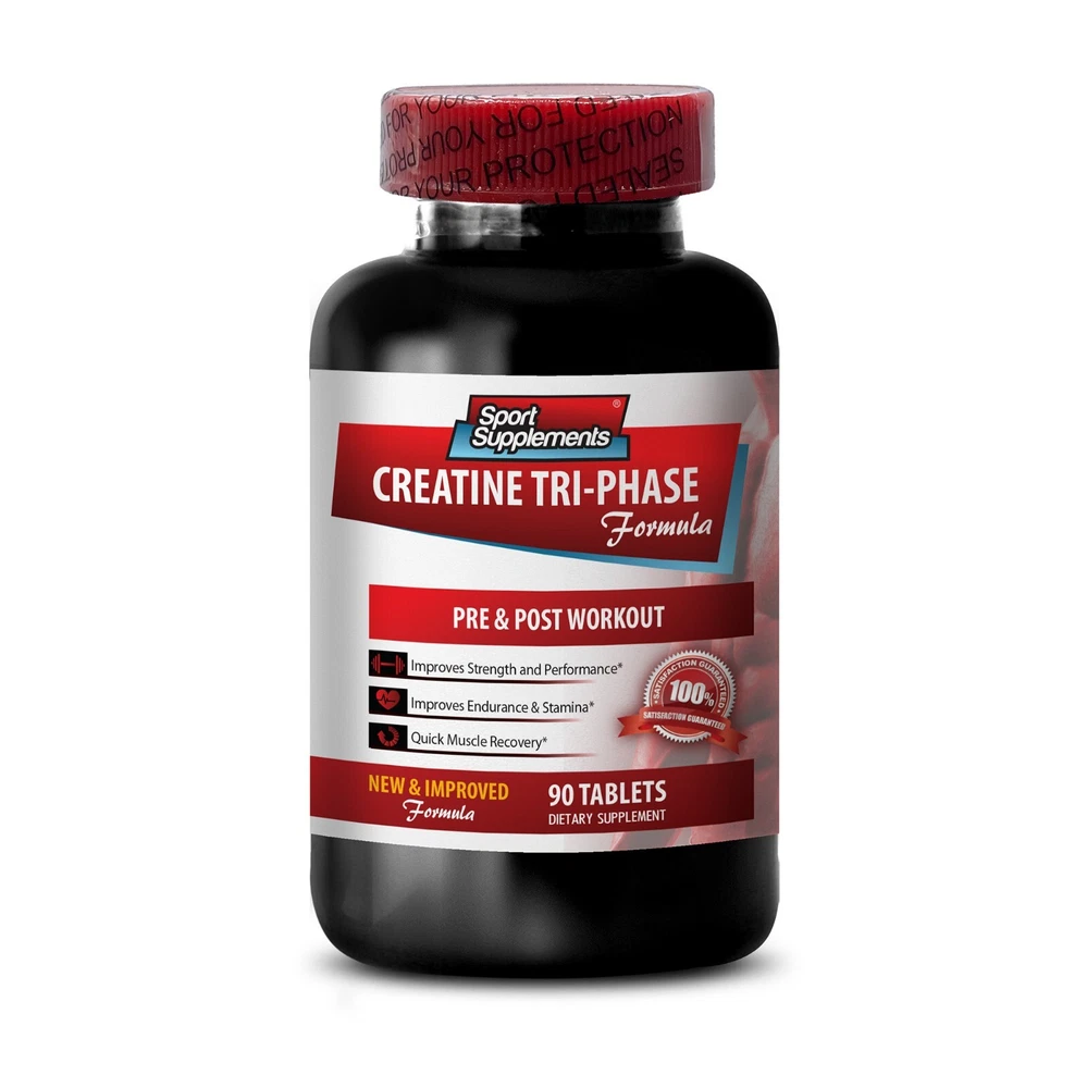 Creatine Tri-Phase Promote Muscle Growth Through Cell Hydration Increased Muscle Levels Of Creatine. Increased Work Capacity And Improved Training. Greater Increases In Lean Body Mass. Promote Muscle Growth Through Cell Hydration. Enhance Energy Reserves, Weight Gain. Optimize Protein Synthesis While Minimizing Protein Breakdown Enhanced Recovery After Exercise, Increased Power Output. Enhanced Muscle Mass/Strength, Delay Workout Fatigue. Improves Performance In High-Intensity Exercise. 1 Bottle, 90 Tablets Made In USA Scientists Discovered Creatine: Unlike proteins, when creatine is broken down, it doesn’t involve the removal of nitrogen when excreted from the body by the kidneys. Scientists discovered creatine in the early 1800’s. They found that creatine was an important component in the muscles of most mammals and named the discovery after the Greek work for flesh, Kreas. In particular, they were studying animal physiology and discovered that a wild fox contains 10 times more creatine in its muscles than a fox in captivity. Creatine is produced naturally in your body, primarily the liver, from the precursor amino acids arginine, glycine, and methionine. Even though creatine is made of amino acids, it’s not considered a protein because it’s metabolized differently. This increase was thought to be a byproduct of the higher exercise level of the wild fox compared to its sedentary counterpart. Micronized Creatine Maximizing Workouts & Improving Physical Performance: Micronized creatine can be a great tool for maximizing your workouts and improving your physical performance.Creatine is formed in the human body from the amino acids methionine, glycine and arginine. The average person's body contains approximately 120 grams of creatine stored as creatine phosphate. Certain foods such as beef, herring and salmon, are fairly high in creatine. However, a person would have to eat pounds of these foods daily to equal what can be obtained in one teaspoon of powdered creatine. Creatine Can Give Amazing Muscle-Building Benefits: Micronized creatine is a unique form of creatine monohydrate, following the same molecular structure as regular creatine but the creatine particles are 20 times smaller. This dramatically increases the surface area of the creatine molecules, while still maintaining all the benefits of regular creatine. It can be dissolved in water or added to protein shakes or juices, and when used correctly, micronized creatine can give amazing muscle-building benefits to those who don’t typically respond to regular creatine monohydrate. Study indicated that loading 20 grams per day of creatine monohydrate for seven consecutive days increased mean power by 5.4% from the Wingate Anaerobic test, but had no effect one-rep max strength or bodyweight. Creatine Universal Energy Booster & Fighting The Aging Process: Creatine is a substance that supplies energy to the skeletal muscle. In fact 95% of all the creatine in the human body is in the skeletal muscles. Creatine monohydrate is the most extensively studied nutritional supplement that is known to increase high-intensity exercise capacity and LBM during training. An increase in oxidative stress coupled with a cell's inability to produce essential energy molecules such as ATP, is a hallmark of the aging cell and is found in many disease states. Key factors in maintaining health are the ability to: (a) prevent mitochondrial damage to DNA caused by reactive oxygen species (ROS) and (b) prevent the decline in ATP synthesis, which reduces whole body ATP levels. It would appear that maintaining antioxidant status (in particular intra-cellular glutathione) and ATP levels are essential in fighting the aging process. Creatine is directly related to adenosine triphosphate (ATP). ATP is formed in the powerhouses of the cell, the mitochondria. ATP is often referred to as the "universal energy molecule" used by every cell in our bodies. Creatine Helps To Protect Cellular Structures: Creatine is a molecule synthesized naturally in the human body. It is most important in tissues where energy-requiring activities occur, as it is involved in maintaining constant energy flow inside the cell. It was show to protect skin from degeneration during ageing: creatine activates collagen synthesis, in this way decreasing the amount of wrinkles, and restoring skin firmness, smoothness and elasticity. Another important benefit of creatine is UV damage protection, as it helps to protect cellular structures (especially mitochondria) from oxidative stress and mutations. Furthermore, creatine-treated skin was shown to regenerate faster. However, to protect creatine itself, pairing with coenzyme Q10 or other antioxidants is advised. During periods of stress, phosphocreatine releases energy to aid cellular function. This is what causes strength increases after creatine supplementation, but this action can also aid the brain, bones, muscles and liver. Creatine Phosphate Essential For Healthy Bones And Teeth: The health benefits of phosphorous make it an important constituent of any diet.Phosphorus is required by the body for bone and teeth formation. Calcium alone can't build strong bones and tissues. New research shows calcium needs phosphorus to maximize its bone-strengthening benefits, and taking a lot of calcium supplements without enough phosphorus could be a waste of money. The predominant mineral in bones is hydroxyapatite, which is a compound that includes both calcium and phosphorus. The presence of both calcium and phosphorus is essential forgrowth and maintenance of healthy bones and teeth. It is well documented that phosphorus is an essential nutrient, critically important for every cell of the body, as it is involved in protein synthesis, cell signaling, bone formation, and acid-base regulation. The health benefits of phosphorous include healthy bone formation, improved digestion, regulated excretion, protein formation, hormonal balance, improved energy e