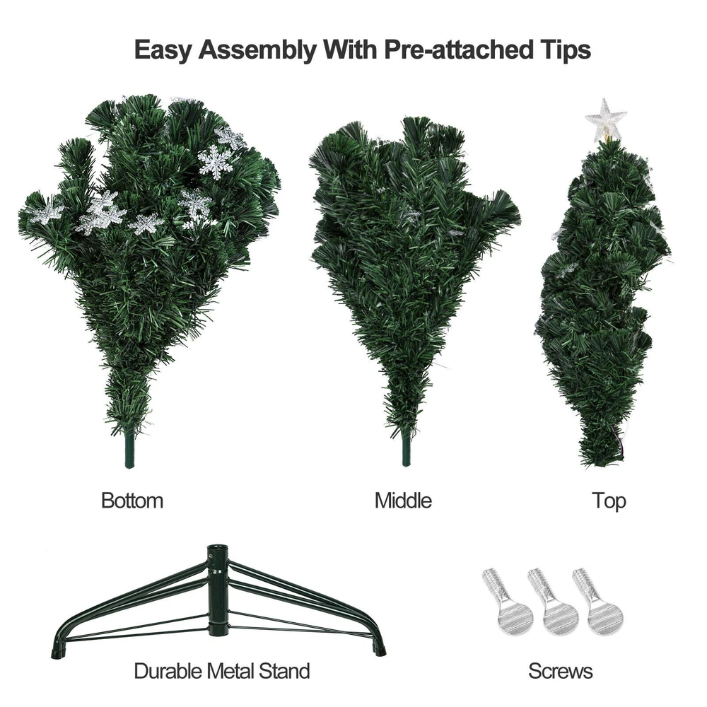 4-7ft Pre-Lit Fiber Optic Christmas Tree with 100 LED Snowflakes and Star
