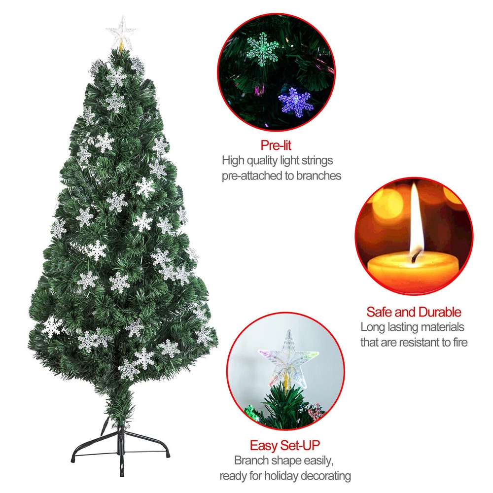 Christmas Giving New Arrival Home & Garden Festival Item Sporting Goods Bicycle Accessories Water Sport Accessories Skateboarding Climbing Accessories Fitness Training Light Storage Computers/Tablets & Networking For Apple iPad For iPad Mini 7.9" For iPad 9.7" For iPad Air Modle For iPad Pro Models For All Models Charger Electronics MP3 Speakers Headphones/Headset Smart Watch Video Games & Consoles Video Game Accessories Replacement Parts & Tools Batteries For Nintendo Wii For XBOX Rechargeable Batteries Special Sales Trampoline Professional Amateur Professional Tools EXTRA 15% OFF When Buy 2+ Item Free Shipping When Buy 2+ Item Save 10% Buy 1 Get 1 at 25% OFF Volume Discount 10%/15%/20%OFF Auctions Other Pre-Lit Fiber Optic Artificial Christmas Tree w/Multicolor Lights Snowflakes US Features: 1. Great for indoor, especial for Christmas decoration, which can be used to decorate offices, apartments, or any room in a house 2. Optical fiber tubes and low voltage electrodeless LED lights with 7 different colors 3. Decorated with Multi-Colored Snowflake LED Lights and top star that will create a warm and romantic atmosphere 4. Pre-lit design saves your time to set up electric lines, you just need to put your favorite decorations on the tree 5. Durable and strong metal stand to help prop the tree, high stability 6. Snowflakes Come Lose In The Box Which You Need To Put On Each LED Light Given On The Tree. Easy To Put And Take Off. Details: Tree Colour:Green LED and Fibre Optic Colour :Red, Blue, White, Green, Yellow, Purple and Pink Size and LED Quantity: π 4FT ( 120cm ) - 130 Branches - 35LEDs - 30 Snowflake π 5FT ( 150cm ) - 180 Branches - 55LEDs - 50 Snowflake π 6FT ( 180cm ) - 230 Branches - 85LEDs - 80 Snowflake π 7FT ( 210cm ) - 280 Branches - 105LEDs - 100 Snowflake Plug: US Plug Material:PVC+Metal Stand Package Include: 1 X Christmas Tree(Come in 2 or 3 Parts) 1 X Metal Stand 1 X 30/50/80/100 Snowflake (as you choose) 1 X US Plug Note: Christmas Tree comes in 2 or 3 Parts, each part has a LED connector. You need to connect the LED connectors firstly so that all lights will light up. Payment Method Shipping Policy Returns Policy Contact US Payment Method We have shifted to eBay managed payment, buyers can pay using credit, debit, and gift cards, Apple Pay, Google Pay, PayPal, and PayPal Credit. Shipping Policy β’ All items are shipped from US warehouse β’ Your package will be shipped via US warehouse. β’ All items would be dispatched within 24 - 48 hours after we confirm the payment β’ Postage usually takes 2 to 3 business days, including handling time(excludes Saturdays, Sundays and US public holidays- these do not count as business days) β’ If you do not receive your item in the normal period, please feel free to contact us Returns Policy Within 7 days after receiving your parcel, we offers a No-hassle 7 days exchange (replace) only if your parcel is defective due to manufacturing problem. The faulty item will be exchanged for the same model once the return guidelines are followed: 1. We might ask buyer to test the item in order to eliminate improper use factor, buyer has responsibility to follow the test correctly. 2. The item must be returned in NEW condition and with the entire original package, including cartons, parts and instructions manual etc. 3. Customer is responsible for return postage, but we will cover all expense in sending replacement. 4. Any returning must inform us first, to send back without return ID (given by LD customer service) will not be accepted. 5. Shipping and insurance charges are not refundable. Contact US We will keep you updating via email messages regarding the status of the orders.Please make sure your ebay registered email available and you adjust the spam limitation to allow messages from us, or check your ebay message box. If you are satisfied with the item,pls take a few moments of your time to leave a positive feedback for us. Any problems, please contact us via ebay message, all email / message will be respond within 24 business hours. On Aug 19, 2025 at 19:42:28 PDT, seller added the following information: