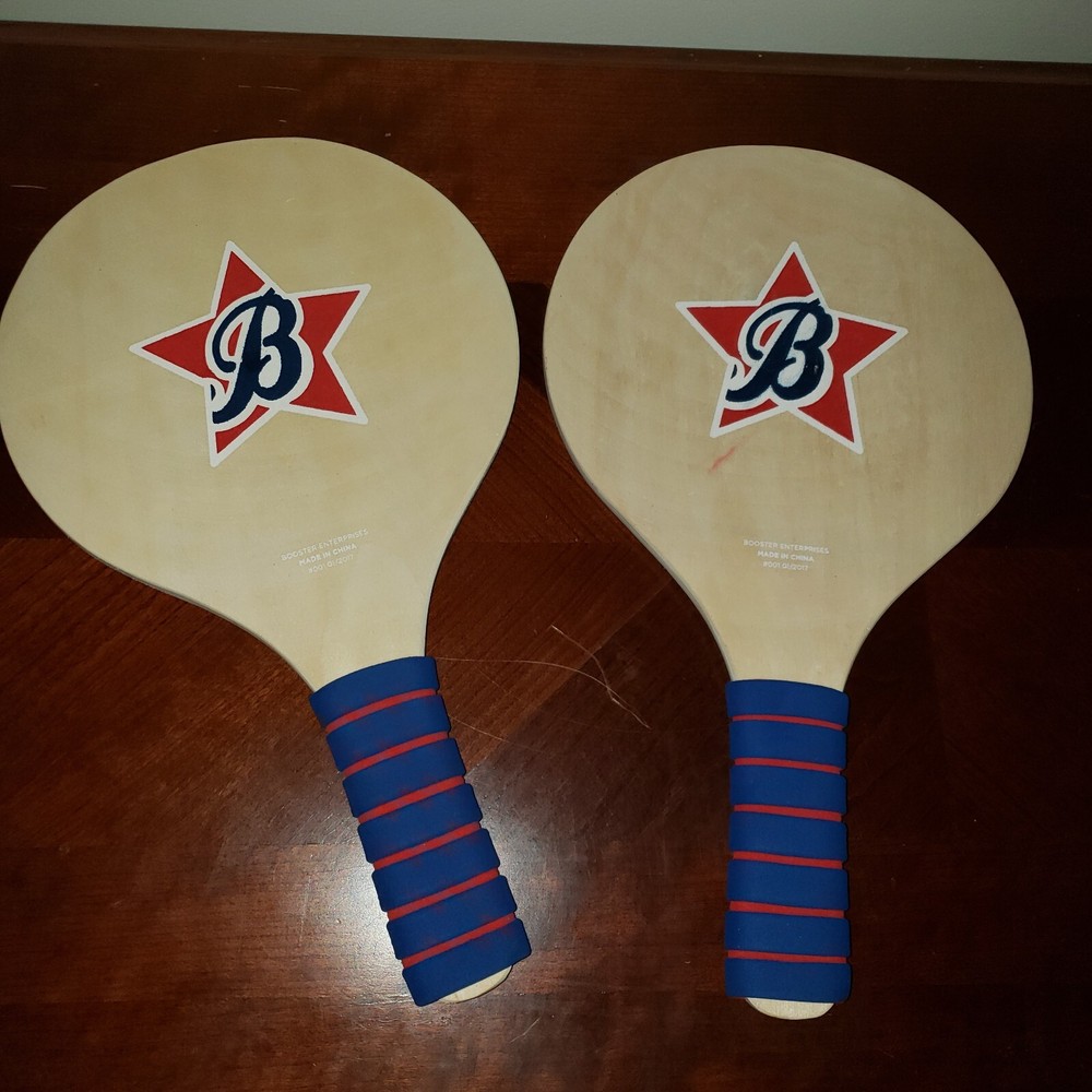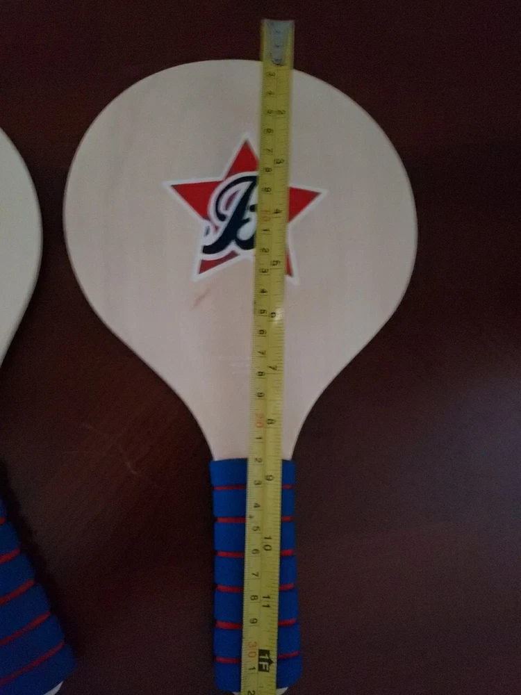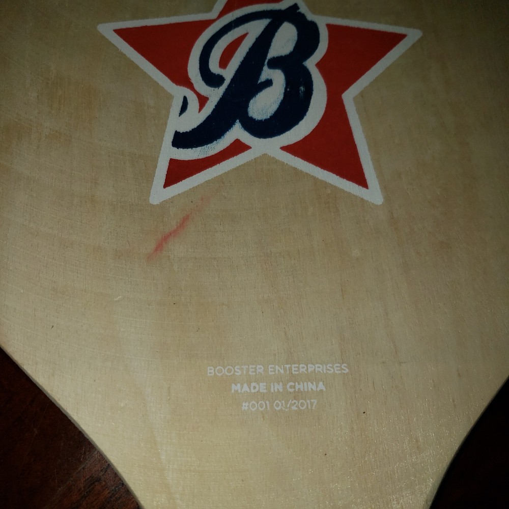 This set of (2) Booster Enterprises Paddles is perfect for any indoor game enthusiast. Made in China, these pre-owned paddles are great for players of all levels. The brand, Booster Enterprises, is known for their high-quality equipment and this set is no exception. The paddles are designed for use with indoor game tables and provide a great playing experience. Whether you're a beginner or an experienced player, these paddles are sure to enhance your game. So, don't miss out on the opportunity to add this great set to your collection. VT4-8044 Please note- there is a few marks on one of the rackets/paddles. Please see photos. It does not affect the functionality of this item.