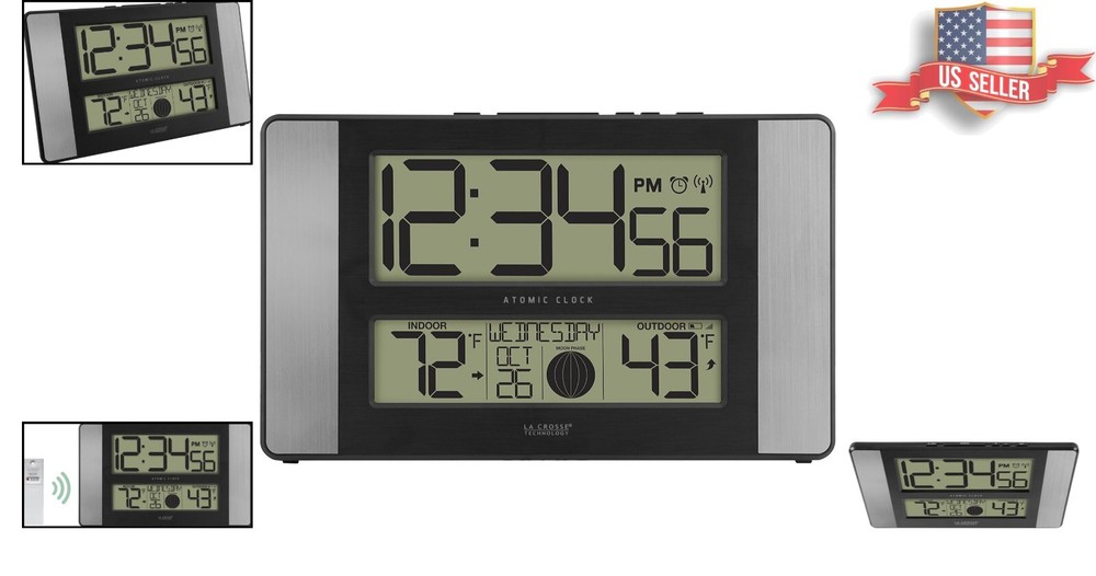 Accurate Atomic Clock with Outdoor Temp Sensor - Battery Operated, Compact Style ‹ › ‹ › ‹ › ‹ › ‹ › ‹ › ‹ › ‹ › Accurate Atomic Clock with Outdoor Temp Sensor Battery Operated, Compact Style Features: Wireless Transmission: Monitors indoor/outdoor temperatures in °F/°C with HI/LO records. Includes a weather-resistant sensor boasting a 330 ft range without obstructions. Precise Atomic Time: Accurate to the second, this clock automatically sets and readjusts to Daylight Saving Time, with an OFF option available. Alarm with Snooze: Features a crescendo time alarm with a 10-minute snooze capability. Full calendar display along with moon phase icons add functionality. Simple-Set: Effortlessly adjustable switch to configure your time zone (7 USA time zone settings from Atlantic to Hawaiian); operates in a 12-hour time mode. Easy Read: Large 2.125-inch time digits offer an effortless viewing experience. Battery Operated: Requires 4 AA alkaline batteries (not included) for both clock and sensor. Why Choose This Atomic Clock? This stylish atomic digital clock not only enhances your living space with its modern look but also packs a plethora of features for your convenience. With a weather-resistant transmitting sensor that provides reliable data on outdoor temperatures as low as -40°F, you will be informed no matter the weather. The large, easy-to-read LCD display ensures you can glance at the time, date, and moon phase effortlessly. Embrace the future of precise timekeeping. Order your Accurate Atomic Clock with Outdoor Temp Sensor today and experience the blend of sophistication and functionality. Shipping Free & Fast Shipping - We offer free shipping to most of the USA with a normal delivery time of 3-7 days. However, due to the current situation, additional delivery time (up to 3 weeks) may be required for some items. Alternative Carriers - We may use alternative carriers (e.g. USPS, FedEx, UPS, etc.) to ensure your package arrives safely and on time. Due to the use of multiple carriers, we are unable to provide a tracking number automatically. Handling Time - Orders are processed and shipped within 1-2 business days of receiving cleared payment. Shipping Restrictions - Shipping to Alaska, Hawaii, Puerto Rico, Guam, and other US territories may incur shipping charges or delivery restrictions. Please contact us before ordering, or your order can be refunded/cancelled. State Restrictions - There may be restrictions based on your state of purchase. For example, certain items may not be shipped to California due to state regulations. Contact for Tracking Updates - If you require tracking updates or have any concerns about the delivery of your order, please feel free to contact us, and we will be happy to assist you. Return 30-Day Hassle-Free Returns - We want you to be completely satisfied with your purchase. If you are not, you can return the item within 30 days of receiving it for a full refund or exchange. Easy Return Process - To start a return, simply contact us and we will provide you with a prepaid return shipping label and detailed instructions. Restocking Fee - There are no restocking fees for returns. However, the buyer is responsible for return shipping costs if the return is not due to a seller's error. Refund Processing Time - Refunds will be processed within 5 business days of receiving the returned item in its condition. Payment We accept all major credit cards, PayPal, and Apple Pay for your convenience. Your payment information is secure and encrypted to ensure a safe and seamless transaction. Please complete your payment within 3 days of purchase to avoid any delays in shipping. Feedback Your feedback is extremely important to us. We strive to provide the best products and customer service possible. If you are satisfied with your purchase, please take a moment to leave us a positive review. If you have any concerns or issues with your order, please contact us before leaving negative feedback. We are committed to resolving any problems and ensuring your satisfaction. Contact Us If you have any questions or concerns, please feel free to out to our customer support team. You can contact us through the eBay messaging system. We are available Monday to Friday, 9:00 am to 5:00 pm EST, and we will do our best to respond to your inquiry within 24 hours. Buy it now and enjoy a pleasant shopping experience! Item Length: Atomic Clock with Outdoor Temperature Product Line: Atomic Clock with Outdoor Temperature Unit Quantity: 1 Features: Alarm,Wireless Transmission,Temperature Monitoring,HI/LO Records,Weather-Resistant Sensor,Precise Atomic Time,Crescendo Alarm,Snooze Feature,Full Calendar Display,Moon Phase Icons,Easy to Read LCD,Low Battery Indication,Adjustable Display Language Material: Plastic Room: Kitchen,Living Room Character: Atom Department: Adults Type: Atomic Clock Style: Modern Movement: Quartz (Battery Powered) Power Source: Battery Powered Color: Grey/Black Display Type: Digital Frame Material: Plastic Shape: Rectangular Item Weight: 1 lb Unit Type: Unit