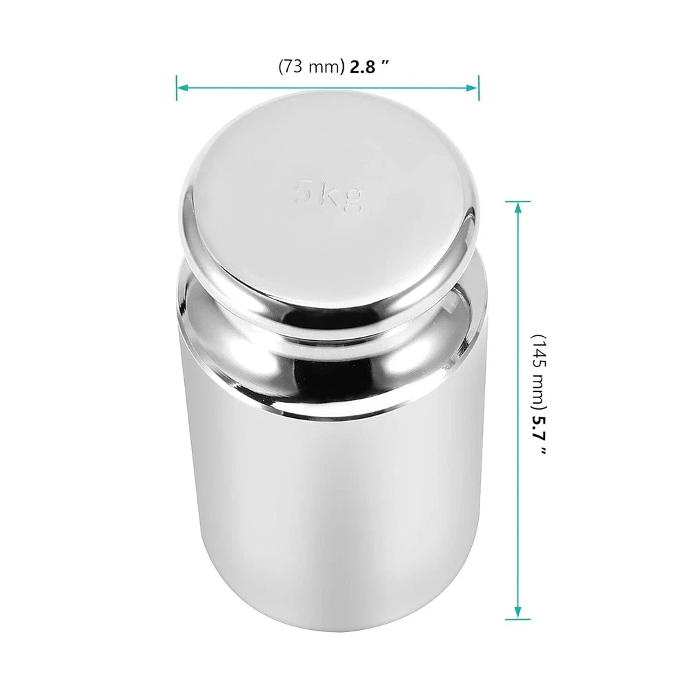 FUNSUEI 5 KG Calibration Weight, Precision Class M1 Scale Calibration Weight, Calibration Weight for Digital Scale, Chrome Finish, Carbon Steel, Silver WELL-MADE WEIGHT - The calibration weight is made of high-quality carbon steel, which has high wear resistance, and low magnetic susceptibility. The chrome-plated and fully polished surface makes it highly resistant to corrosion and rust. ACCURATE MEASUREMENT - Processed by professional machines, the 5 kg calibration weight has accurate measurement. To guarantee precision, it is recommended to wear gloves before taking the weight. With a flat bottom, it can stay steady on the scale. VALUABLE PACKAGE - You will receive one scale calibration weight with a height of 5.7 inches and a bottom diameter of 3 inches. There is a laser-etched number on top which shows the weight of 5 kg. It comes with a box, and you can store the weight when not in use. WIDE RANGE OF APPLICATION - The calibration weight is practical and multipurpose. The weight fits various scales such as diamond scale, jewelry scale, digital scale, kitchen scale, etc. It is widely used in labs, jewelry stores, schools, and more. AFTER SALES SERVICE - We hope you are satisfied with the calibration weights, which is why we provide you with a risk-free purchase. If our products fail to meet your expectations, please feel free to contact us. Our professional customer service will reply you within 24 hours and provide you with a satisfactory solution.