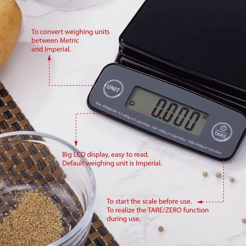 You may also like 54" X 72" Indoor Solid Area Rug Decoration Tufted Livingroom Bedroom Multicolor 29.95 USD Free shipping Neutral Multi Area Rug 5' X 7' Rectangle Living Room Transitional Multicolor Hot 89.4 USD Free shipping Canned Chicken & Dumplings Hearty Soup 10.5 Oz Quick Meal Protein Rich 8 Pcs New 20.64 USD Free shipping 13 Gallon Trash Bags Scented Odor Control Drawstring 40 Count Kitchen Gray New 12.8 USD Free shipping Dehydrated Diced Bell Peppers Gluten Free Long Shelf Life Perfect Food Storage 25.18 USD Free shipping 4 Piece Kitchen Towel Set Floral Design Durable Absorbent Towels Home Use Cotton 17.97 USD Free shipping Whole Kernel Corn Non-GMO Canned Vegetables Ready to Eat Easy Side Dish 15.25 oz 7.92 USD Free shipping 8 Piece Kitchen Textiles Set Cotton Oven Mitt Pot Holders Towels Dishcloths New 11.97 USD Free shipping Chenille Decorative Pillow Set Super Soft 18 Inch Square Indoor Accents 2 Pieces 22.44 USD Free shipping Indoor Area Rug Stain Resistant Non-Slip Backing Tufted Polypropylene 4'6" x 6'6 30.53 USD Free shipping Indoor Accent Rug Non-Slip Stain Resistant Leaf Block Design Machine Washable US 12.85 USD Free shipping 4 Slice Toaster Oven W/ 3 Settings Baking Rack & Pan Kitchen Adjustable Timer US 29.8 USD Free shipping The Mainstays High Precision Digital Kitchen Scale is the perfect tool for accurately measuring your food and ingredients. Its strong and durable ABS plastic weighing platform is equipped with built-in high precision load sensors that quickly and accurately measure in 0. 005-ounce or 0. 1-gram increments, making it ideal for adding ingredients. The scale has different increments for different weighing ranges, which ensures high accuracy when weighing ingredients of smaller mass, as specified in the instruction manual. The large LCD screen is easy to read, making it easy to accurately weigh your food and ingredients. Whether you're trying to achieve diet, health, or wellness goals, the Mainstays High Precision Digital Kitchen Scale can help. Bring this scale home today and take control of your portions and recipes. Build your kitchen from the ground up with all the cookware, bakeware, tools, dinnerware and other items you need to create a useful cooking and dining arrangement. The Mainstays kitchen collection focuses on colorful and decorative design applied to simple basics, keeping your daily life vibrant and efficient. This category includes such a wide variety of products that you may want to make a list of the kitchen items you need and use the product filters on the left side of the page to browse more efficiently. This way, you'll get to see all the relevant Mainstays kitchen products in each subcategory to find the best match for your lifestyle. Mainstays High Precision Digital Kitchen Scale, Black Maximum weight capacity up to 3000 g/6. 6 lbs Advanced sensor technology delivers quick, accurate responses Displays weight down to 0. 005 oz /0. 1 g increments Switch between different units easily Has both "manual off" and "auto off" to save power Tare button subtracts container weight to zero out the scale so you only measure what you want Clean the scale with a slightly damp cloth. Do not immerse the scale in water or use chemical/abrasive cleaning agents All plastic parts should be cleaned immediately after contact with fats, spices, vinegar and strongly flavored/ colored foods Always use the scale on a hard, flat surface Do not use on carpet You may also like 13 Gallon Drawstring Kitchen Trash Bags Unscented Puncture Resistant 40 Count US 10.15 USD Free shipping Dehydrated Diced Bell Peppers Gluten Free Long Shelf Life Perfect Food Storage 25.18 USD Free shipping Gluten Free Original Ranch Dressing Topping Creamy Condiment Salad Dip 24 fl oz 7.92 USD Free shipping Minced Garlic in Water Family Size 32oz Glass Jar Gluten-Free Shelf Stable New 8.12 USD Free shipping Durable 13 Gallon Drawstring Trash Bags 80 Count Puncture Resistant Kitchen Use 18.39 USD Free shipping Stoneware Serve Bowl Handcrafted Durable Kitchen Decor Microwave Dishwasher Safe 19.11 USD Free shipping 12 Cans No Salt Added Whole Kernel Sweet Corn Pantry Essential Healthy Side Dish 11.22 USD Free shipping Heavy Duty 55 Gallon Trash Bags 20 Count Puncture Resistant Twist Tie Plastic US 22.47 USD Free shipping Cilantro Lime Dressing Marinade Avocado Oil Paleo Keto Non-GMO Gluten-Free 8oz 9.72 USD Free shipping Ceramic Serving Bowl Floral Design Dishwasher Safe Vintage Style W/ Handles New 26.91 USD Free shipping Plant Based Ranch Dressing Marinade Vegan Gluten Free Paleo Keto 8fl oz Liquids 8.16 USD Free shipping Organic Roasted Garlic Marinara Sauce 24oz Gluten-Free Pasta Sauce Gourmet New 11.67 USD Free shipping