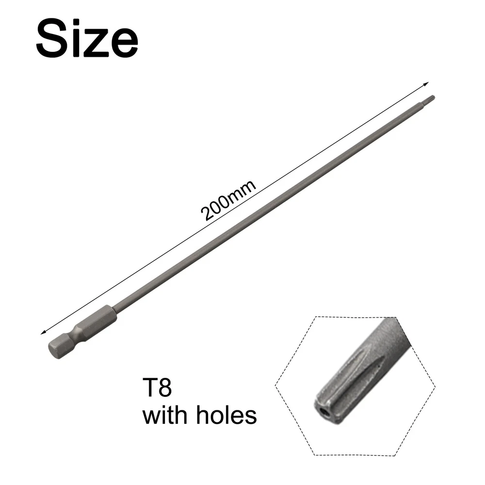 Product Description Features: *The accuracy and durability of this screwdriver meets higher standards. Use them for DIY home projects or work sites. *With magnetic, the parts adopt strong permanent magnet, which can fix the screws firmly. Perfect placement every time. *Standard shank diameter, 6.35mm on the opposite side of the hexagonal shank, 1/4 standard shank diameter, suitable for all kinds of pneumatic screwdrivers, electric screwdrivers, and rechargeable screwdrivers. *Straight and concentric angles can effectively reduce the phenomenon of bit swinging. *Made of sturdy alloy steel, high hardness, strong torsion, long-term use. *Upgraded anti-rust and better storage, the for adopts special anti-rust for treatment. Specifications: Product name: Screwdriver Bits Material: Steel Color: Grey Length: 200mm/ 7.78Inch Head: for Torx Shank: 1/4 Inch Hex Magnetic: Yes With Hole: Yes Optional Size: T8, for T10, for T15, for T20, for T25, T27, for T30, T40 Suitable for: electric drills with speed regulating device, electric screwdrivers, hand screwdrivers Quantity: 1Pc Package Includes: 1× for Torx Screwdriver Bits Notes: 1.Transition: 1cm=10mm=0.39inch. 2. The real color of the item may be slightly different from the pictures shown on website caused by many factors such as brightness of your monitor and light brightness. 3. Please allow slight manual measurement deviation for the data. Payment Payment must be completed within 5 days. If you have any problems about payment, please contact us via ebay message. Delivery details We only ship to confirmed ebay Order addresses. Please comfirm that your Order address is in line with your shipping address. Please kindly note that the c ombined shipping is not provided because the shipping fee is calculated by weight. Also, the each additional item means exactly the the same color and size. It takes about 7 -15 working days to US; about 10-30 working days to other countries. Transit time may be a little delayed because of the bad weather and customs inspection . If you do not receive your item within 30 working days since payment finished, please contact us immediately for further assistance. Contact us We strive for 100% customer satisfaction! Positive Feedback is very important to us. If you have any questions, p lease feel free to contact us via "Ask seller a question" . We will reply your email within 24 working hours.