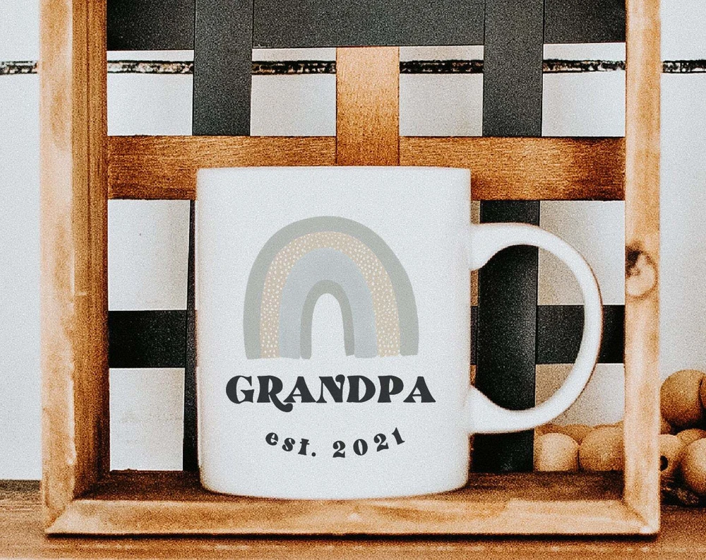 Pregnancy Announcement For Grandpa Grandpa Est 2021 Mug Coffee Mug For Grandpa Product Details.. This high quality 11oz. ceramic white mug has a premium hard coat that provides crisp and vibrant color reproduction sure to last for years. Perfect for all hot & cold beverages. The highest quality printing possible is used. It will never fade no matter how many times you wash it. Material: 100% Ceramic. Print both sides. Dishwasher and Microwave Safe. High Gloss + Premium White Finish. Printed in the U.S.A. Personalized & Custom. We support personalized and custom mug to add custom, when placing an order, you can add notes to the "order note" in shipping address section. Also you can contact us directly via message. Shipping Info. Ready to ship in 1 to 2 business days, All products are made-to-order and proudly printed in the United States. Shipped by USPS and DHL, You will receive your order in 5-7 days. Replace & Refund. All products are defective during shipping broken, chipped will be replaced free of charge. You are not satisfied with the product, we will refund 100% money to you. If any other issues arise, please do not hesitate to message, we would be more than happy to assist you.