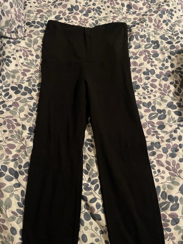 In great shape, no stains nor rips From a smoke and pet free home ✨ These black leggings are perfect for pregnant women who want to stay comfortable during their maternity period. The leggings are designed to fit perfectly and provide the necessary support to the body. They are made of high-quality material which is gentle on the skin and helps in maintaining the body's natural shape. The leggings come in size M and are perfect for women who want to wear them for an extended period. The jogger style of the leggings is perfect for pregnant women who want to stay active and comfortable at the same time. The leggings are ideal for wearing during workout sessions or for casual wear. The black color of the leggings is versatile and can be paired with any outfit. These leggings are a must-have for any pregnant woman who wants to feel comfortable and stylish during their maternity period.