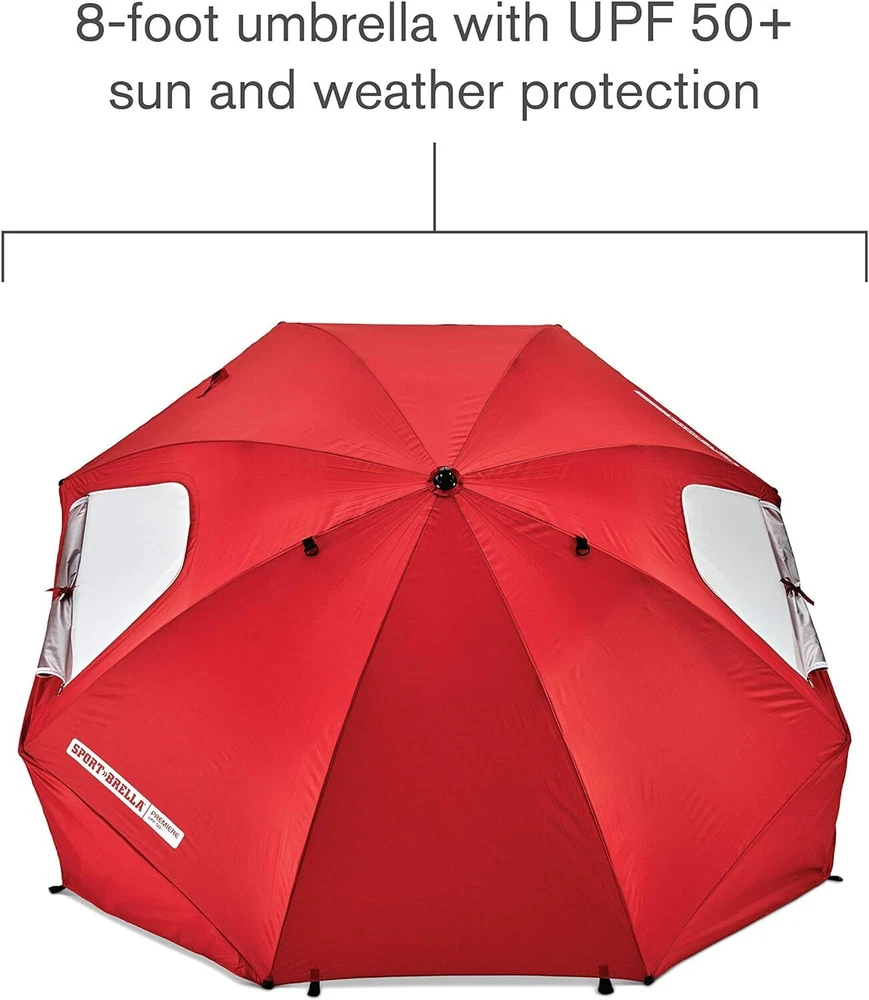 Product Description Premiere UPF 50+ Umbrella Shelter for Sun and Rain Protection (8-Foot, Gray) 8-foot umbrella canopy features UPF 50+ sun and weather protection for the beach, camping, sporting events, concerts and festivals Oversized umbrella provides privacy and maximum protection from the sun’s rays and rain with two patented side panels; stow-away clips store the flaps when not in use A heavy-duty 1.25-inch center pole has a built-in tilt mechanism for adjustability; zippered windows allow for airflow and prevent the umbrella from blowing away The oversized auger bit with an integrated twist handle easily and securely anchors the umbrella in sand, grass, and dirt; included stakes offer extra security Internal pockets store a phone, snacks, or other gear; carry bag, stakes, and guy lines are included; packed umbrella measures 53x3.5x3.5 inches and weighs 8 pounds About Us We are a reputable seller with many years of experience selling on eBay. Our goal is to provide high-quality products and excellent customer service. Shipping Items will be shipped within 1-3 business days when we received payment. (Orders are not processed on weekends & holidays) Tracking information will be sent once item is shipped. Delivery time depends on destination and other factors Item is shipped to ebay address. Leaving correct address can minimize delay. For international shipping and shipping to Guam, Hawaii and Alaska, Please contact us before placing the order. International buyers please note: Import duties, taxes and charges are not included in the item price or shipping charges. These charges are buyer’s responsibility. We will try our best to reduce the risk of the custom duties. Local pick-up is unavailable at the moment. Contact Us We reply any email messages within 1 business / working days(off-duty at weekend). If you do not get a response from us, then please check your junk or spam mailbox. Our Business hours: Mon-Fri 9:00-18:00, UTC/GMT +8 hours. Please contact us either by clicking "contact seller" in the "purchase history" section or simply click "ask a question" at the bottom of this page. If you are unsatisfied with our item or service, please contact us before leaving any feedback. We are committed to resolve all issues in a friendly and satisfactory manner.