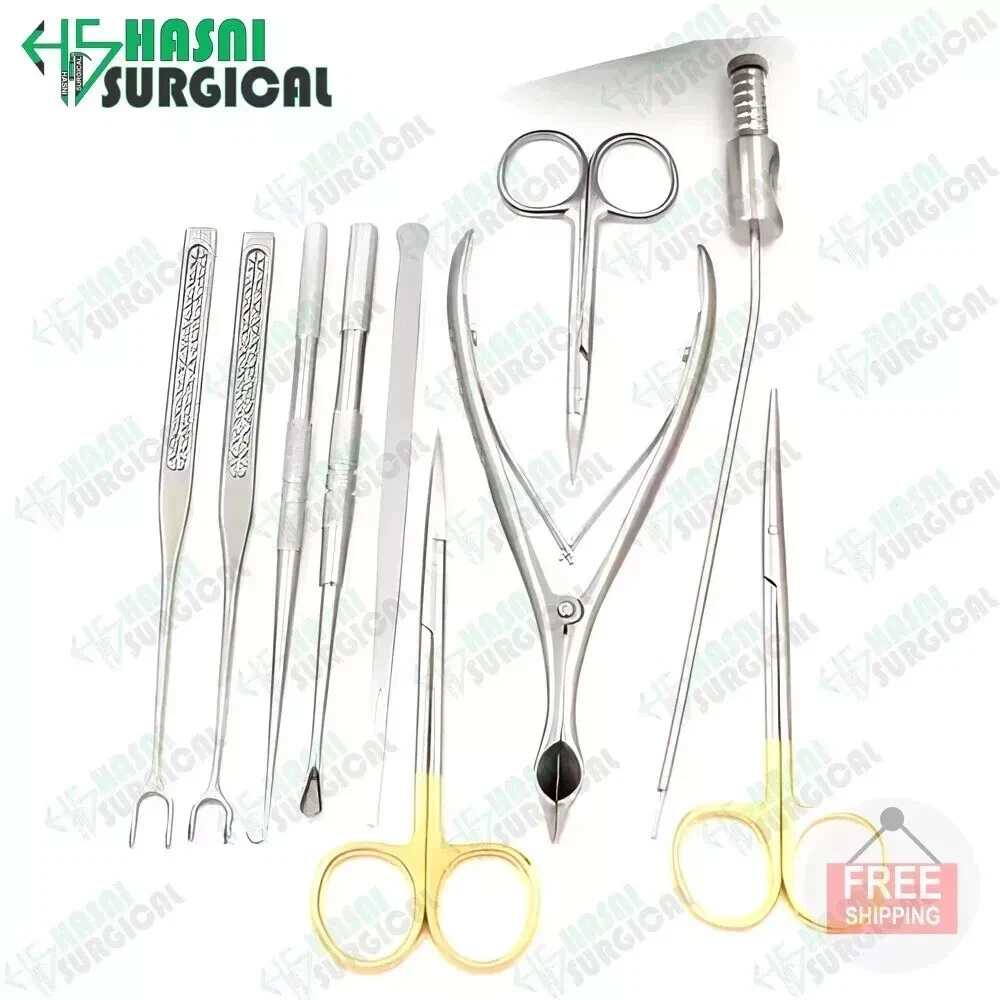 Product Name: Premium 30-Piece Stainless Steel Rhinoplasty & Cosmetic Plastic Surgery Set Note: The product will be same as it is in picture. Product Description: Key Features: Comprehensive 30-Piece Toolset : A versatile and complete set tailored for rhinoplasty and other cosmetic plastic surgeries, providing essential tools for both aesthetic and reconstructive procedures. Surgical-Grade Stainless Steel : Made from high-quality stainless steel, these instruments are durable, resistant to corrosion, and maintain their sharpness throughout repeated use. Precision Engineering : Designed for delicate procedures, this set allows for precise cuts, tissue handling, and optimal reshaping, minimizing trauma to the patient and ensuring professional results. Ergonomic and Lightweight : Instruments are lightweight and ergonomically designed to reduce hand strain and provide excellent control during complex surgeries. Autoclavable & Reusable : The instruments are autoclavable, making them easy to sterilize and ensuring long-term reusability without compromising performance. Convenient Storage Case : Comes with a professional-grade storage case that securely holds and organizes the instruments for easy access and safe transport. Ideal for Cosmetic Surgeons : A trusted choice for rhinoplasty surgeons and other cosmetic procedures, designed to meet the highest standards of surgery. Included Instruments: Nasal Speculum (2 Sizes) – Expands nostrils for improved visibility and surgical access. Freer Elevator – Used for lifting nasal mucosa and cartilage for precise dissection. Cottle Nasal Elevator – Separates tissue layers and cartilage, enhancing access to the nasal septum. Joseph Nasal Scissors – Precise scissors for cutting delicate nasal tissues and cartilage. Curved Rhinoplasty Scissors – Allows for delicate cutting in curved nasal areas. Straight Bone Cutter – For precise cutting and reshaping of nasal bones during osteotomy. Osteotomy Forceps – Used to carefully cut and reshape nasal bones with precision. Nasal Rasp (Double-Ended) – Smoothens and refines the nasal bone structure after osteotomy. Blunt Dissector – Gently separates nasal tissues, reducing trauma to surrounding structures. Blunt Nasal Retractor – Holds nasal tissues in place to provide better exposure during surgery. Skin Hook Retractors (2 Sizes) – Helps retract skin for better access to deeper nasal tissues. Suture Scissors – Trims sutures post-surgery for a clean, professional finish. Takahashi Nasal Forceps – Efficiently removes nasal bone or tissue fragments during surgery. Hydrodissection Cannula – Facilitates fluid separation for easier tissue dissection. Micro Needle Holder – Holds smaller needles for delicate suturing work in nasal procedures. Castroviejo Caliper – Provides accurate measurements for symmetrical and proportional nasal results. Rhinoplasty Osteotome – For precise chiseling of nasal bones to reshape the nose during surgery. Iris Scissors – Ideal for fine, precise cutting of delicate nasal tissues. Vessel Clamp – Clamps blood vessels to control bleeding and maintain a clear surgical field. Needle Holder (2 Sizes) – Provides a secure grip for accurate suturing. Vannas Scissors – Fine scissors designed for dissection in confined or delicate areas. Bayonet Forceps – Allows clear tissue manipulation with a long, angled design for narrow spaces. Adson Forceps – For fine tissue handling without causing unnecessary trauma. Double-Ended Nasal Rasp – For shaping and smoothing the nasal bone surface after surgery. Curved Bone File – Smoothens the nasal bone post-osteotomy for a refined appearance. Straight Retractor – Retracts tissue for improved visibility and better access. Surgical Ruler – Used to measure nasal dimensions and ensure symmetry throughout the procedure. Micro Scissors – Ideal for cutting fine, delicate tissues with precision. Needle Holder – Secures needles for controlled suturing in intricate surgical areas. Professional Storage Case – Keeps all instruments organized, safe, and easily accessible during surgery. The Premium Stainless Steel Rhinoplasty and Cosmetic Plastic Surgery Set of 30 Pieces provides a complete toolkit for surgeons performing complex rhinoplasty and cosmetic plastic surgeries. With high-quality instruments designed for precision, comfort, and durability, this set ensures the best outcomes for both aesthetic and reconstructive procedures. Trusted by professionals, it is an indispensable set for any cosmetic surgery practice. HANDLING AND DELIVERY: The item will be shipped within 3- 5 business days. Standard Delivery Within a week & Economy within 4 to 8 weeks. If there is any issue regarding late delivery contact the DHL/FedEx Company or contact us via message. Once the parcel reaches your country we are not responsible for customs issues. Custom should clear the parcel on your behalf. If the order is in a remote area extra charges will be applied. We will give a discount on shipping if you order in bulk. We will deliver orders through DHL, FEDEX, UPS , or any other fast services. PAYMENT POLICY: We accept all major debit/credit cards and PayPal. RETURN AND EXCHANGE POLICY: If you are not satisfied with the product's quality or any other issues, we will refund or exchange within 30 days, we will refund you fully or partially. The items which are refunded should be in original packaging material. FEEDBACK POLICY: Youre Feedback Is Very Important for us. Give us your precious feedback, In case of any kind of issue dont give us negative feedback, instead make a follow-up in our inbox so that the company could do its best to satisfy our customers' requirements. We will respond and handle your issues. IMPORTANT NOTE: 1. We are also dealing with customizing and bulk orders. 2. We are a manufacturer of Dental orthopedic, ENT, Ophthalmology, General surgery, and Anesthetic, Veterinary, so if you want any surgical instrument related 
