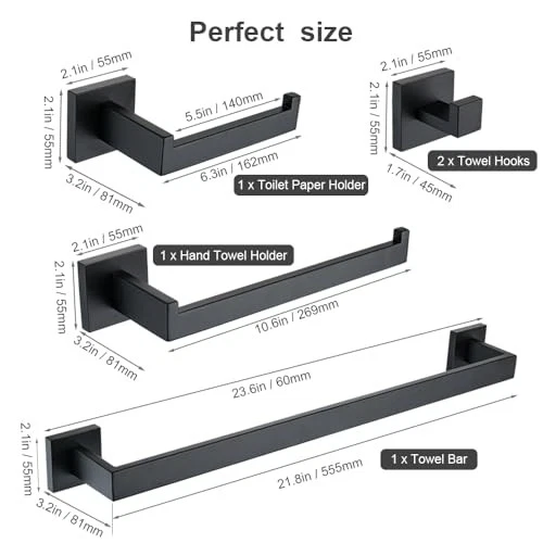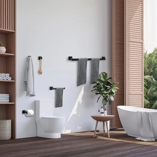 Return Policy Fast Delivery Trusted seller Premium 5-Piece Matte Black Bathroom Hardware Accessory Set, Durable SUS304 Stainless Steel Wall-Mounted Towel Bar and Towel Holder, 23.6-Inch Bathroom Towel Rack Product Description 1. Durable and rust-resistant: Our towel bars are made from high-quality SUS304 stainless steel, which prevents rust and corrosion, ensuring durability and resistance to rust in humid bathroom environments. 2. Versatile Usage: Our towel bars can be used in various settings, such as bathrooms, kitchens, or even closets. They are not only suitable for hanging towels but also great for organizing other items like bathrobes or clothes. 3. Seamless Integration: Each component of this bathroom towel holder set has been meticulously designed for a flawless finish, allowing for seamless integration with your existing bathroom decor while enhancing the overall aesthetic. 4. Cost-effective design: This 5-piece set includes a single towel bar, towel ring, tissue holder, and 2 towel hooks, providing you with all the essential bathroom accessories in one package. 5. Easy Installation: The included mounting hardware and instructions allow for quick and hassle-free installation, saving you time and effort. If you have any questions or need assistance, our customer service team is always ready to help. Shipping Returns Payment Shipping Shipping is FREE to all addresses other than APO/PO boxes in the lower 48 states. All our stock ships from US-based warehouses. Shipped via USPS or UPS (depending on location and package weight) Unless stated otherwise, all orders will ship within 24-72 hours of your payment being processed. Check our feedback to see the great reviews of FAST shipping we offer. Returns Seller does not accept returns Payment We currently accept payment via eBay managed payments only. Once payment is cleared, we will dispatch your shipment within 1-3 business days. Please refer to the "Shipping" tab for more information regarding shipping speed to your destination.
