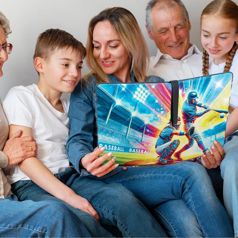 Baseball Card Binder 900 Pockets, Trading Card Binder with Sleeves, Baseball Card Binder, Sports Card Albums Compatible with Pokemon Card, Fits 900 Cards with 50 Removable Sheets Spacious 900-Pocket Capacity: Designed with a large capacity to hold up to 900 cards, this Baseball card binder is perfect for collectors who need ample storage for their growing collection, whether it's trading cards, game cards. Premium Quality: Crafted from high-quality waterproof PU leather, ensuring your cards remain protected from moisture and dirt, making it an ideal choice for long-term storage. Versatile Compatibility: This versatile trading card binder is compatible with a variety of trading cards, making it an ideal solution for Yu-Gi-Oh Card Game, Skylanders, Football Cards, Baseball Cards, MTG Card Game, Dutch Blitz Card. Multiple Protection: Our trading card binder includes additional protective features such as anti-scratch pockets and sturdy stitching, ensuring your cards are safeguarded against damage while stored or during transport. Best Gift for Kids: Looking for the perfect gift? This trading card binder is the best gift for kids who love collecting cards, providing them with a stylish and practical way to store and showcase their favorite cards.