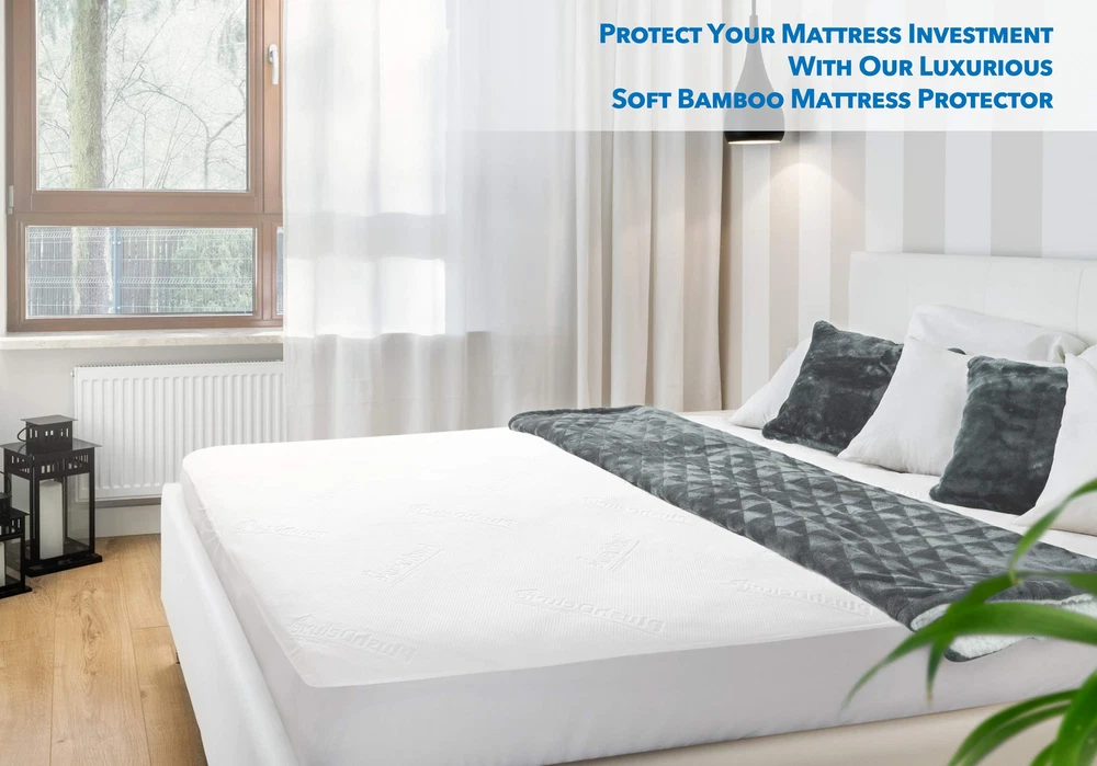 SAFEGUARD YOUR INVESTMENT: Keep your expensive mattress in pristine condition with our Premium King Bamboo Mattress Protector. Our ultra-soft mattress cover protects from dirt, water and normal wear & tear, so it stays clean and comfortable. ULTIMATE COMFORT: Our King mattress cover is made from finest quality, natural bamboo fabric. The ultra-soft and breathable membrane wicks away moisture and regulates heat, so you and your family can enjoy a fresh and cool sleeping environment. 100% WATERPROOF MATTRESS PROTECTOR: Our viscose mattress pad cover effectively resist waters including accidental spills & bodily fluids such as sweat or urine. An excellent choice for dealing with incontinence, potty training, nursing the sick & pets. PERFECT FIT: Our mattress topper is designed for all types of mattresses including memory foam, latex or spring. It is completely silent - no crinkling sound! Our bed protector stays smooth and neat, so your mattress remains quiet and comfy. King measures 76''x80'' and fits any mattress depth up to 18''.