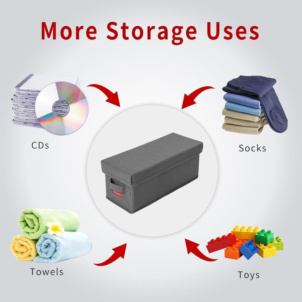 Premium CD Storage Box - Stackable CD Organizer Box with Lid - Holds 70 Jewel Cases - 14.37 x 5.5 x 6.3 inches - 2 Pack - Grey 【Versatile CD Storage】Unclutter your scattered CD collections and keep your space tidy with our smart CD storage boxes. Designed to hold up to 35 jewel-case, 70 slim-case, or 200 CDs in sleeves, it's a real lifesaver for CD enthusiasts! 【Stackable and Space-Saving Design】Our CD storage boxes have a dimension of 14.37x5.7x6.3 inches, perfect for stacking and maximizing your storage space. Say goodbye to messy spaces and hello to an organized lifestyle! 【Stackable and Space-Saving Design】Our CD storage boxes have a dimension of 14.37x5.7x6.3 inches, perfect for stacking and maximizing your storage space. Say goodbye to messy spaces and hello to an organized lifestyle! 【Protective CD Storage】Features lids to keep dust and scratches away. Our CD box storage has been meticulously designed to keep your CDs, DVDs, and tapes in mint condition. 【Convenient CD Storage Shelves Alternative】Fed up with bulky CD shelves? Try our compact and lightweight CD case organizer. It's a perfect combination of convenience, space-efficiency, and visual appeal!