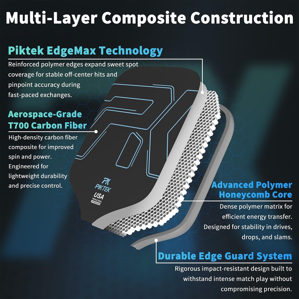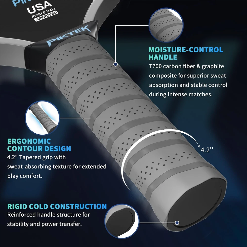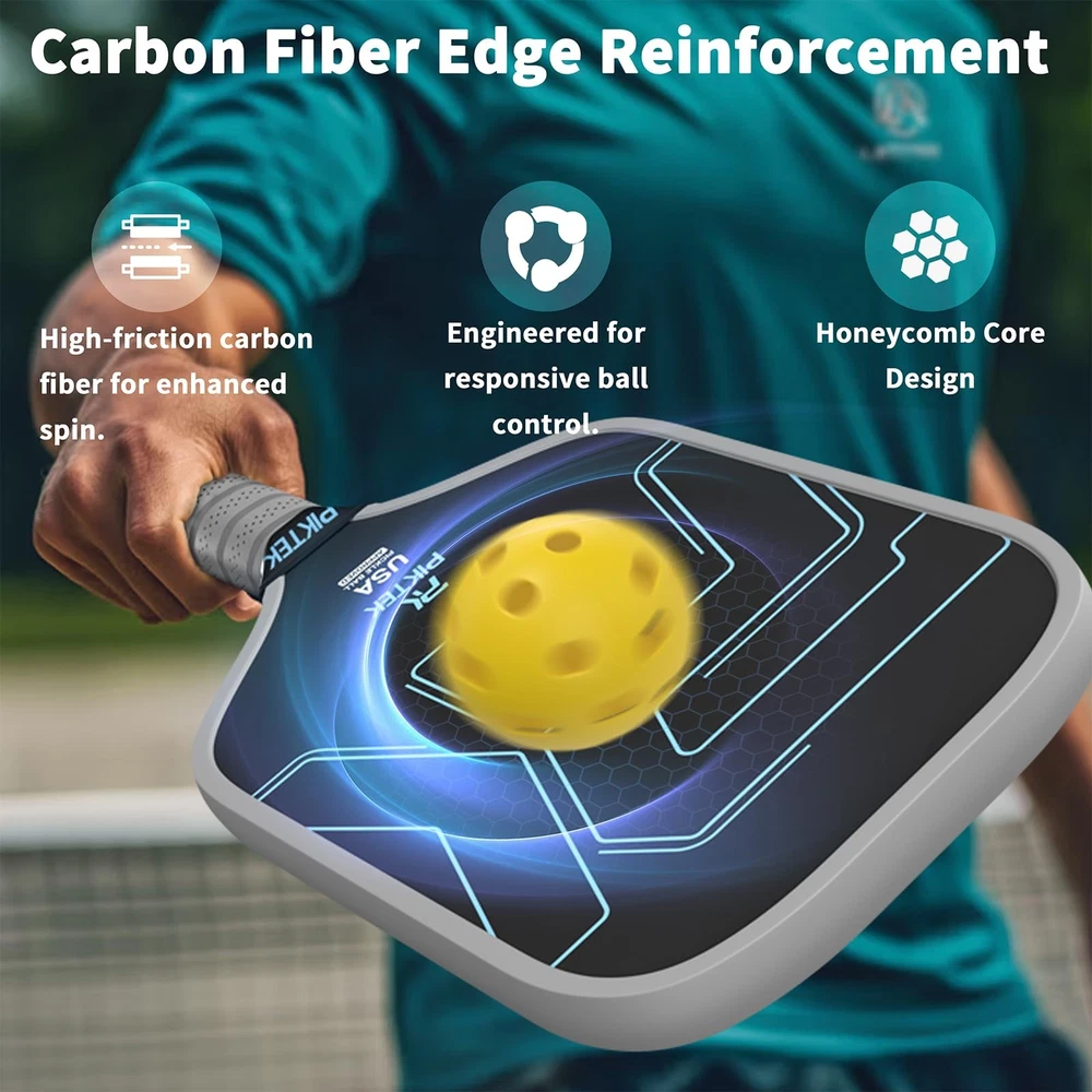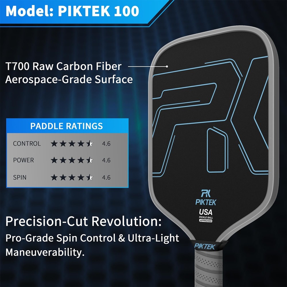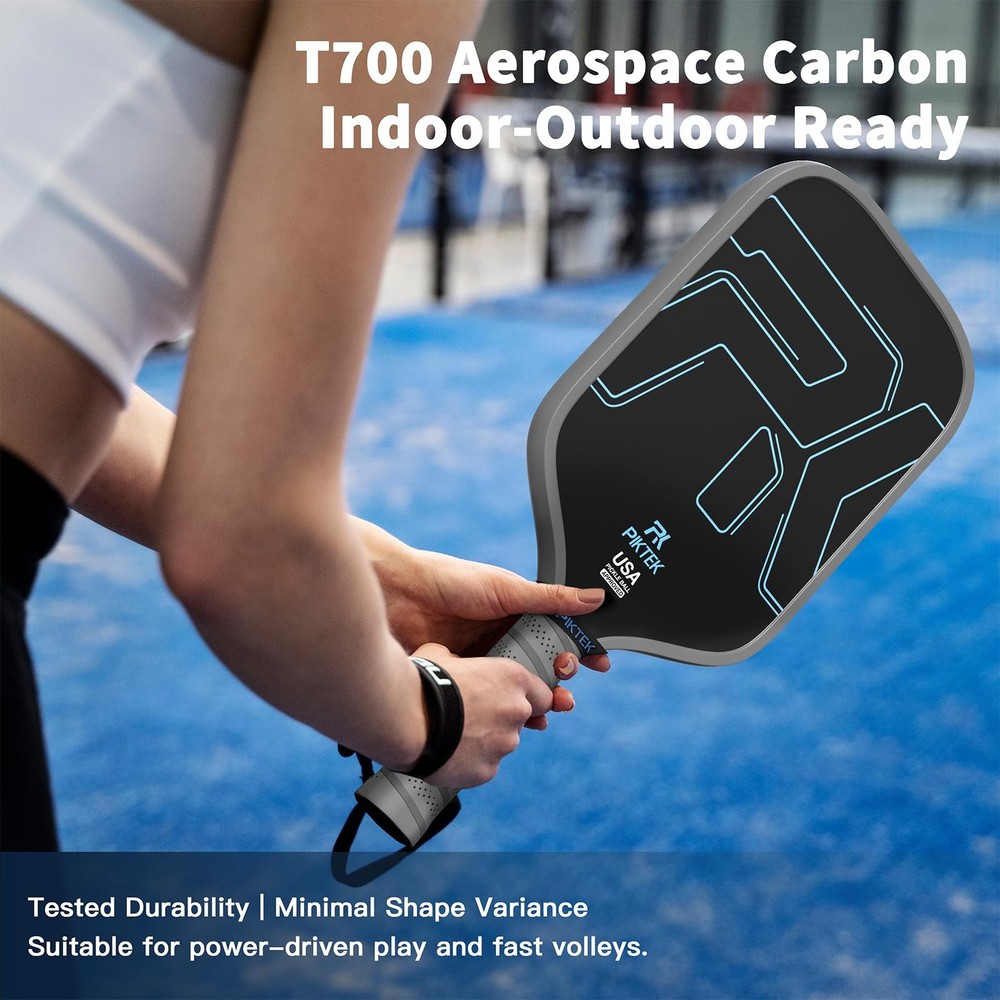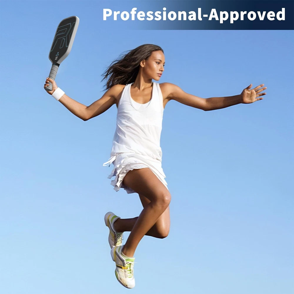 100 T700 Carbon Fiber Pickleball Paddle, Sharkskin Spin Control and Lightweight & Durable The 100 is engineered for players who demand precision and power. Crafted with a T700 carbon fiber blade and a cold-cut polymer honeycomb core, this paddle delivers unmatched speed and spin control. The sharkskin-textured surface enhances ball grip for aggressive shots, while the ergonomic sweat-resistant grip ensures comfort during marathon matches. Key Features: Lightweight Design: Only 7.76oz (220g) for quick reflexes and reduced fatigue Durable Construction: Cold-cut edges eliminate weak spots and resist delamination Versatile Spin: Ideal for dinks, drives, and volleys in both recreational and competitive play Free Replacement Parts: Includes eraser and rubber strips for on-the-go maintenance Why Choose Us? Our paddle outperforms competitors with its aerospace-grade materials and patented texture technology. Backed by a 30-day satisfaction guarantee, it’s the perfect choice for serious players seeking a tournament-grade edge. 【Carbon Fiber Pickleball Paddle】Good quality T700 carbon fiber pickleball paddle for drives & drops, dominate every rally with Sharkskin Carbon Surface, precision-engineered grooves enhance ball grip for superior spin control. Master topspin lobs, slice serves, and third-shot drops during backyard family games or competitive rec center matches. Our paddle use high quality pickleball paddles carbon fiber also wonderful pickleball gifts for women & men. 【All-Day Comfort Design】Lightest carbon paddle for wrist relief, at 7.76oz (220g), our honeycomb polymer core absorbs vibrations during 3-hour marathon sessions while boosting reaction speed for rapid dinks and fast volleys. Ideal for players transitioning from heavy fiberglass paddles or managing joint sensitivity. Ideal pickle gifts for friend & family. It's also ideal pickleball training paddle. 【Weatherproof Control Grip】Non-slip pickleball paddle for humid climates, the 4.2" cushioned handle locks in palms during Florida summer tournaments or Seattle drizzle sessions, with replaceable tape to adjust thickness. Deep ridges prevent slips better than standard grips, keep dominance even when palms sweat. 【Impact-Tough Carbon Frame】Concrete court-ready pickleball paddle, built with T700 carbon edges and honeycomb reinforcement, survives many smashes on asphalt driveways or indoor gym floors. Engineered for power slams and backhand blocks, no dead spots or warping after accidental court collisions. Edge guard pickleball paddle can significantly improve the service life of the racket. 【What You Get】1 premium USAPA-approved carbon fiber pickleball paddle (single unit),a paddle eraser,a free rubber grip and car-trunk-friendly box. Note: This listing is for an individual pickleball paddle, designed for solo players or mixed doubles compatibility. Compatible with ALL Series pickle ball paddles. Whether you're a seasoned professional player or a beginner, this pickleball paddle set provides all the essential gear for exciting matches with friends and family.