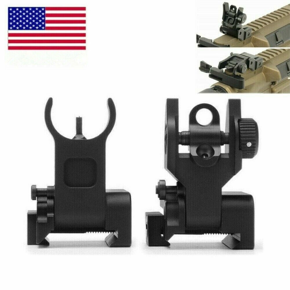 New Premium Flip up Front Rear Iron Sight Set Fits Picatinny Rails Flattop Features : Low profile folding design Dual Apertures Rear sight Windage adjustable with click knob Front sight A2 post elevation adjustable Ambidextrous Non-rust hard anodized finish Compatible with most Picatinny / Weaver rails Specifications: Color - Black anodized finish Material:6061 aircraft grade Aluminum Dimensions width: 33mm Length: 28mm (upright position) Height: 40mm (upright position) / 11mm (folded, measured from rail base) Weight:1.7 oz (front) 1.9 oz (rear) Interface:Picatinny / Weaver Rails Package : Front&Rear Iron Sight Set