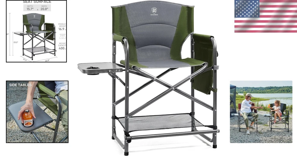 Premium Foldable Directors Chair with Cup Holder & Side Table - 400LBS Support ‹ › ‹ › ‹ › ‹ › ‹ › ‹ › ‹ › ‹ › ‹ › ‹ › Premium Foldable Directors Chair -With Cup Holder & Side Table -Support up to 400 lbs Features: Open size: 25.5 L * 17.6 W * 39 H inches. Extra wide design with a maximum weight capacity of 400 lbs. 23.2-inch seat height for easy access. Foam padded armrests for added comfort and easy standing assistance. Steel footrest for relaxing your feet, and it is half-detachable for convenience. Quick one-step open and fold mechanism for easy setup. Built-in side table and cup holder for keeping essentials within reach. Bottom mesh pocket for extra storage, perfect for outdoor essentials. Maximum Comfort: Seat and back are one full piece for additional comfort. Designed for both relaxation and support during use. Benefits: Easy in and out with an extra-wide design. Space-saving storage and convenient portability. Versatile use for camping trips, fishing, outdoor concerts, craft shows, vendor events, and sports meetings. Ideal for both indoor and outdoor activities, providing exceptional comfort and durability. Why choose our Premium Foldable Directors Chair? If you're in search of a robust, comfortable, and portable chair that combines elegance with utility, look no further than our Premium Foldable Directors Chair. With a remarkable weight capacity of 400 lbs, this chair features an extra-wide design, a supportive foam-padded armrest, and a detachable footrest designed for your ultimate comfort. The chair effortlessly folds for storage and travel, making it an excellent companion for any outdoor adventure or event. Elevate your relaxation experience, whether at home or in nature—order your Premium Foldable Directors Chair today! Shipping Free & Fast Shipping - We offer free shipping to most of the USA with a normal delivery time of 3-7 days. However, due to the current situation, additional delivery time (up to 3 weeks) may be required for some items. Alternative Carriers - We may use alternative carriers (e.g. USPS, FedEx, UPS, etc.) to ensure your package arrives safely and on time. Due to the use of multiple carriers, we are unable to provide a tracking number automatically. Handling Time - Orders are processed and shipped within 1-2 business days of receiving cleared payment. Shipping Restrictions - Shipping to Alaska, Hawaii, Puerto Rico, Guam, and other US territories may incur shipping charges or delivery restrictions. Please contact us before ordering, or your order can be refunded/cancelled. State Restrictions - There may be restrictions based on your state of purchase. For example, certain items may not be shipped to California due to state regulations. Contact for Tracking Updates - If you require tracking updates or have any concerns about the delivery of your order, please feel free to contact us, and we will be happy to assist you. Return 30-Day Hassle-Free Returns - We want you to be completely satisfied with your purchase. If you are not, you can return the item within 30 days of receiving it for a full refund or exchange. Easy Return Process - To start a return, simply contact us and we will provide you with a prepaid return shipping label and detailed instructions. Restocking Fee - There are no restocking fees for returns. However, the buyer is responsible for return shipping costs if the return is not due to a seller's error. Refund Processing Time - Refunds will be processed within 5 business days of receiving the returned item in its original condition. Payment We accept all major credit cards, PayPal, and Apple Pay for your convenience. Your payment information is secure and encrypted to ensure a safe and seamless transaction. Please complete your payment within 3 days of purchase to avoid any delays in shipping. Feedback Your feedback is extremely important to us. We strive to provide the best products and customer service possible. If you are satisfied with your purchase, please take a moment to leave us a positive review. If you have any concerns or issues with your order, please contact us before leaving negative feedback. We are committed to resolving any problems and ensuring your satisfaction. Contact Us If you have any questions or concerns, please feel free to reach out to our customer support team. You can contact us through the eBay messaging system. We are available Monday to Friday, 9:00 am to 5:00 pm EST, and we will do our best to respond to your inquiry within 24 hours. Thank you for supporting our small family business! UPC: Not Set Unit Quantity: 1.0 count Set Includes: Chair,Side Table,Cup Holder,Footrest Room: Patio Garden,Camping,Vendor Events,Sports Meeting Frame Material: Alloy Steel Department: Adults Features: Foldable,Cup Holders,Padded Armrest,Footrest,Quick Open and Fold Theme: Not Set Brand: Unbranded Color: Grey Green Item Height: Directors Chair Item Length: Directors Chair Item Width: Directors Chair Type: Directors Chair Upholstery Fabric: Foam Style: Modern Indoor/Outdoor: Indoor & Outdoor Wood Tone: Not Set Assembly Status: Fully Assembled Item Weight: 16.9 lb MPN: Not Set Model: Not Set Number of Items in Set: 1 Pattern: Solid Finish: Matte Country/Region of Manufacture: Not Set Manufacturer Warranty: Not Set Maximum Weight Capacity: 400 lb Seat Height: Not Set Seat Depth: 17.6 in Backrest Height: Not Set Minimum Length: Not Set Unit Type: Unit Additional Parts Required: Not Set Assembly Required: Not Set Personalized: Not Set