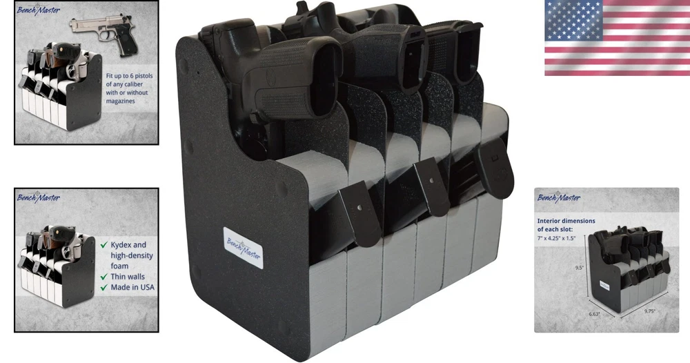 Premium High-Density Foam Pistol Storage Rack - Securely Accommodates 6 Pistols ‹ › ‹ › ‹ › ‹ › ‹ › ‹ › ‹ › ‹ › Premium High-Density Foam Pistol Storage Rack Securely Accommodates 6 Pistols Features: SAFE & SECURE GUN STORAGE: Accommodates up to 6 pistols of any caliber, with or without magazines. PISTOL ORGANIZER: Individual Slot Dimensions: Interior: 4.25″ x 7″ x 1.5″; Exterior: 6.63″ x 8.44″ x 18.75″ – Maximizing space, allowing no wasted room in your safe. NO METAL PARTS: This innovative design provides soft yet rigid protection, ensuring no risk of marring your gun's finish. LIGHTWEIGHT & HIGH RESILIENCY: Crafted for great shock absorption, the rack won’t collapse under heavy weight, offering reliable security. EXCEPTIONAL MATERIALS: Constructed with Kydex and high-density foam, this product contains no latex, won’t absorb moisture, and boasts excellent chemical resistance. MADE IN THE USA: Handmade in the USA using All-American caliber materials. Proudly veteran-owned. Benefits: Ensure safe, organized, and easily accessible firearm storage. Protects your pistols from scratches and damage. Efficient use of space in your safe, making room for more essentials. Durable and lightweight, allowing for simple transportation of firearms. Why choose our Premium Pistol Storage Rack? Experience the peace of mind that comes with superior gun organization and protection. Our Premium High-Density Foam Pistol Storage Rack not only accommodates a wide variety of handguns but does so without compromising their integrity. The thoughtful design ensures each firearm is cradled in safety while maximizing the space within your safe. Don't settle for inadequate storage solutions. Choose a product that embodies quality, durability, and security—order your Premium Pistol Storage Rack today and enhance your gun storage experience! Shipping Free & Fast Shipping - We offer free shipping to most of the USA with a normal delivery time of 3-7 days. However, due to the current situation, additional delivery time (up to 3 weeks) may be required for some items. Alternative Carriers - We may use alternative carriers (e.g. USPS, FedEx, UPS, etc.) to ensure your package arrives safely and on time. Due to the use of multiple carriers, we are unable to provide a tracking number automatically. Handling Time - Orders are processed and shipped within 1-2 business days of receiving cleared payment. Shipping Restrictions - Shipping to Alaska, Hawaii, Puerto Rico, Guam, and other US territories may incur shipping charges or delivery restrictions. Please contact us before ordering, or your order can be refunded/cancelled. State Restrictions - There may be restrictions based on your state of purchase. For example, certain items may not be shipped to California due to state regulations. Contact for Tracking Updates - If you require tracking updates or have any concerns about the delivery of your order, please feel free to contact us, and we will be happy to assist you. Return Please see our eBay Return Policy. Thank you. Payment We accept all major credit cards, PayPal, and Apple Pay for your convenience. Your payment information is secure and encrypted to ensure a safe and seamless transaction. Please complete your payment within 3 days of purchase to avoid any delays in shipping. Feedback Your feedback is extremely important to us. We strive to provide the best products and customer service possible. If you are satisfied with your purchase, please take a moment to leave us a positive review. If you have any concerns or issues with your order, please contact us before leaving negative feedback. We are committed to resolving any problems and ensuring your satisfaction. Contact Us If you have any questions or concerns, please feel free to reach out to our customer support team. You can contact us through the eBay messaging system. We are available Monday to Friday, 9:00 am to 5:00 pm EST, and we will do our best to respond to your inquiry within 24 hours. Thank you for supporting our small family business! UPC: Not Set Unit Quantity: 1 Material: Kydex,High-Density Foam Features: Lightweight,Safe & Secure Gun Storage,Pistol Organizer,Sturdy,No Flex,Great Shock Absorption,Excellent Chemical Resistance,Won't Mar Gun's Finish For Gun Type: Pistol Type: Rack Brand: Unbranded Number of Guns: 6 Color: Multicolor Country/Region of Manufacture: Not Set Item Height: Not Set Item Width: Not Set Item Length: Not Set Item Weight: 1.01 lb MPN: Not Set Unit Type: lb