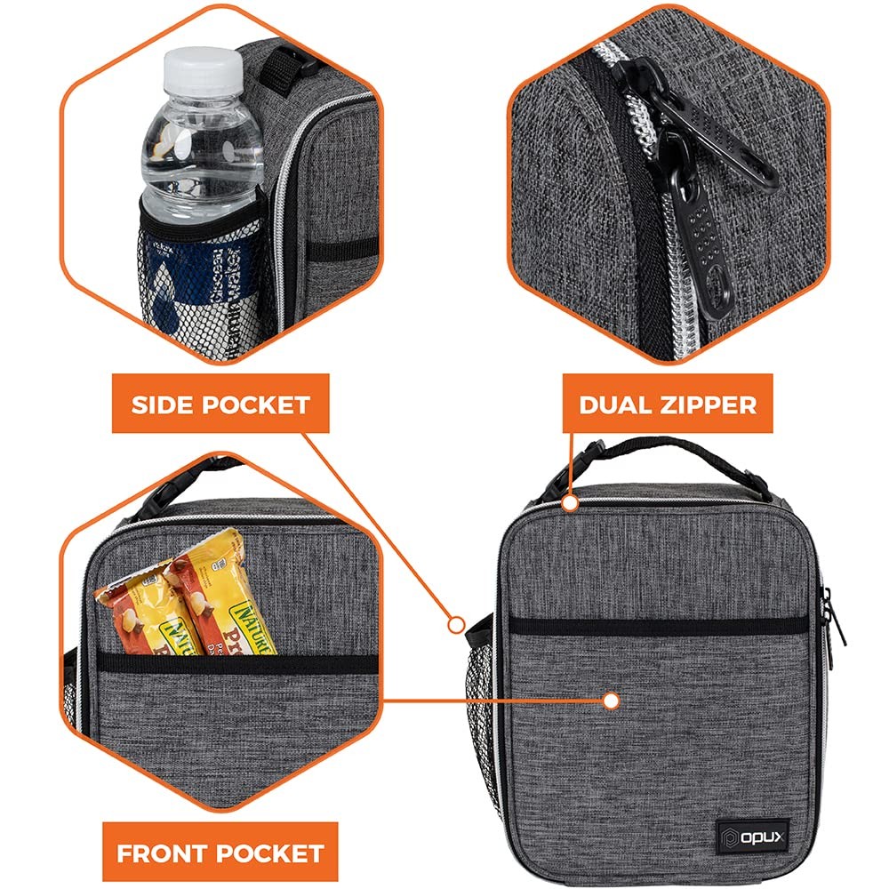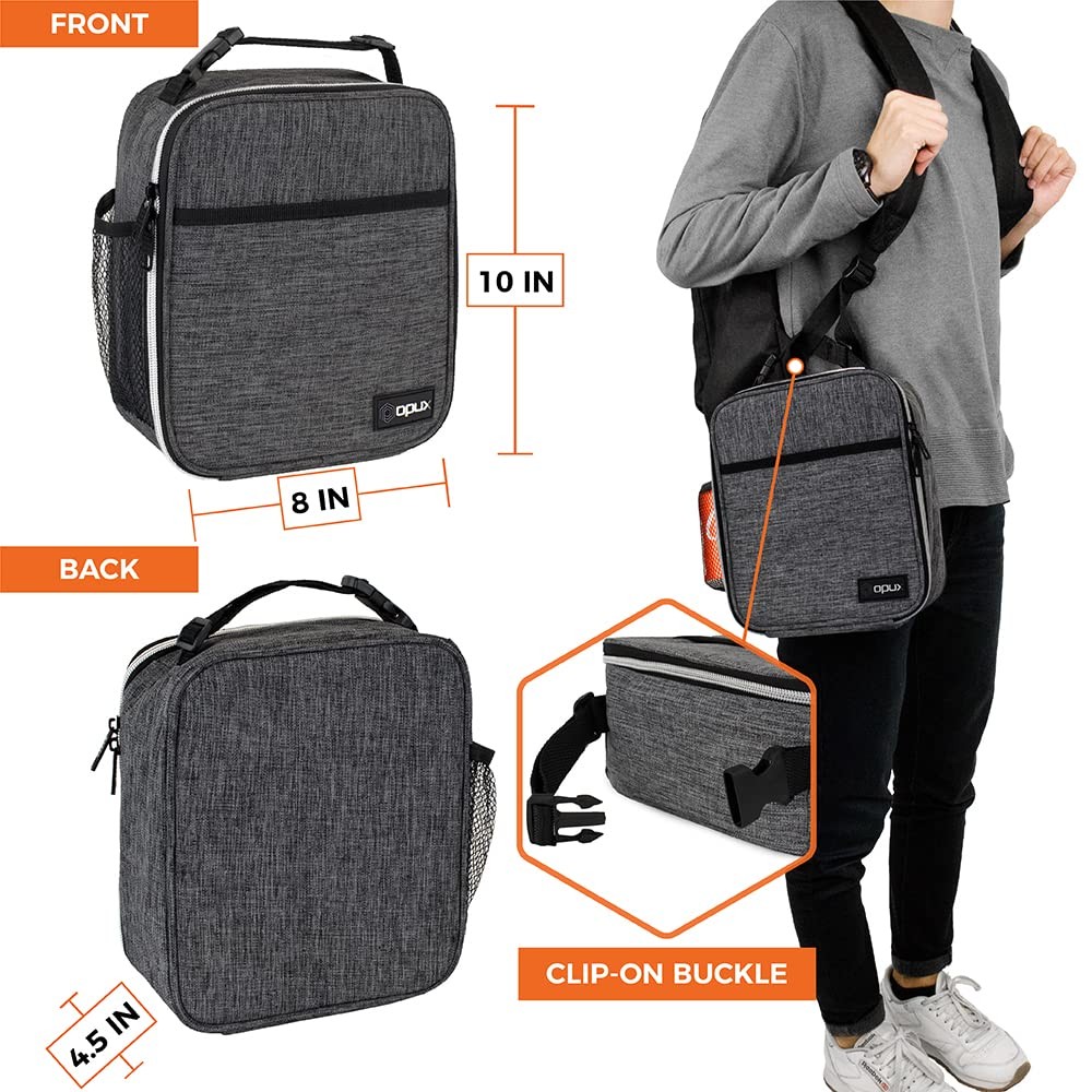 Premium Thermal Insulated Compact Lunch Bag by This durable, functional, and easy to use Premium Compact Lunch Bag by is perfect for taking food/snacks to school and for men and women to bring lunch to work or on the go. These lunch bags are lined with thermal insulated lining and are spacious enough to fit one persons lunch. Contains side pockets to carry extra items and a multi-functional strap with a buckle, making the lunch bag easy to carry. Measures at 10" x 8" x 3.7" (L x W x H) and is made from high-quality nylon and polyester fabric with reinforced zippers, ensuring maximum durability. creates quality products for your many lifestyles. Our Vision To provide premium kitchen and wine products that greatly simplifies your life. We will continue to innovate and bring exciting products to market so you can achieve more in life! Our Products At , we offer an extensive line of kitchen tools (such as salt & pepper mills), lunch bags, and wine bags/accessories made of highest quality for all occasions. Our products are meticulously designed with materials and functions that truly simplify your life so you can focus on creating your favorite meals or entertaining your guests. LUNCH BAG FOR KIDS: The insulated lunch box for boys girls is perfect for carrying food, snacks, lunch to school, office, work or picnic. With top handle buckle, the lunch pail lunchbag can hook onto your backpack or office bag, making it easy to carry and on the go. It also comes with side water bottle pocket and front pocket so you can conveniently store utensils and essential supplies. Small lunch cooler will meet all your childrens lunch and meal prep needs at school and classroom. INSULATED LUNCH BOX BAG: Our insulated leakproof lunch cooler keeps your food, salad, and drink hot or cold for hours so they will be at optimal temperature during lunch or dinner. The adult lunch pail lunchbox for women, men has soft thermal lining that is BPA and PVC Free and acts as an insulated protection to keep your food, bento, containers safe during travel. Lunch bag for kid boy girl is made with 600D polyester and reinforced zippers to keep stable temperature of lunch food. SMALL LUNCH BAG FOR MEN WOMEN: This compact lunch box is ideal for adults and professionals to take lunch to work and office. There is an inner mesh pocket to hold your utensils. Its small compact portable size also means the lunch bag can conveniently fit inside a backpack or office travel bag. This is the simple insulated lunch box for school, work, office, picnic, hiking, beach, and camping. CHARCOAL GREY SIMPLE LUNCH BOX KIT: This lunch bag comes in vibrant color that kids, boys, girls will love. Its functional design means this lunch bag is practical for school and work. It is a great back to school, birthday, and christmas gift, an ideal gift idea for on the go parents packing lunch for kids, children, and perfect lunchbox lunch bag for men women professional for taking lunch food to work. SAFE WORK LUNCH BAG TOTE: The small medium compact lunch bag is sized 10 x 8 x 3.7 inches (L x W x H) and can easily fit 6 cans or one persons lunch. The inside lining can be easily wiped clean with a damp cloth. Tested for safety, the lunch box passed CPSIA Lead, CSPA Phthalates & Cadmium Test - Manufacturer recommended age: Ages 3+.