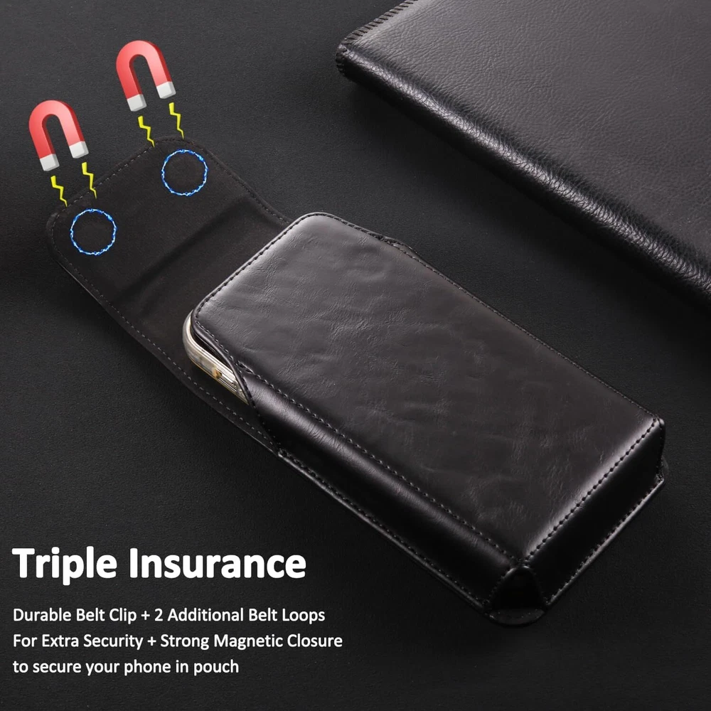 Feature: [Premium Durable PU Leather] The elegant phone holster is made of high-quality PU leather materials with metal belt clip, which not only shows a stylish and unique texture, but also protects your phone from scratches and damage. [Two-Ways to Carry] The flip phone holster has a belt clip and double belt loop. No matter wear a belt or not, you could clip the phone holster to anywhere you like,very convenient to use. The double belt loops are 2 inches wide to ensure that the cell phone belt holder is held tightly on your belt. [Secured Closure] The highly-efficient sturdy magnetic cover of phone pouch can be opened and closed safely and ensure the inside phones in place, slide the phone in and out easily. [Occasions] Suitable for construction work, camping, hiking, outdoor-living, cycling and hiking, etc.. It can also be used as a waist bag, utility belt pouch, outdoor hiking bag, or travel pouch. So convenient to use. Size: Medium is widely compatible with iPhone 15, iPhone 15 Pro, iPhone 14, iPhone 14 Pro, iPhone 13, iPhone 13 Pro, iPhone 12, iPhone 12 Pro, iPhone 11, iPhone 11 Pro, iPhone XR, Samsung Galaxy S24, Samsung Galaxy S23, Galaxy S22, Galaxy S21. Large is widely compatible with iPhone 15 Pro Max, iPhone 15 Plus, iPhone 14 Pro Max, iPhone 14 Plus, iPhone 13 Pro Max,iPhone 12 Pro Max, iPhone 11 Pro Max, iPhone XS Max, Samsung Galaxy S24+, Galaxy Fold 5/4/3, Galaxy S23+ and other folded phones. X-Large is widely compatible with Samsung Galaxy S24 Ultra, Galaxy S23 Ultra, S22 Ultra, S21 Ultra, S20 Ultra, Note 20 Ultra 5G Note 10+ Plus 5G, Google Pixel 7 Pro, Pixel 6 Pro. Package included: 1 x Holster