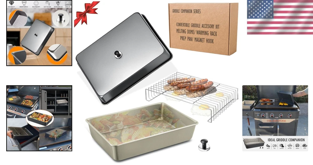 Premium Non-Stick Grill Dome and Warming Rack Set - Perfect for Festive Gifting ‹ › ‹ › ‹ › ‹ › ‹ › ‹ › ‹ › ‹ › ‹ › Premium Non-Stick Grill Dome and Warming Rack Set Transform your culinary experience with our thoughtfully designed grill toolset, perfect for festive gifting to the grilling enthusiast in your life. Features: Multifunctional Combination: Includes 2PCS griddle dome/metal serving tray, 1PC warming rack, and 2PCS strong magnets with knobs. Expand Your Cooking Surface: The Blackstone warming rack keeps food warm while providing additional cooking space. Versatile Use: Flip the large serving tray to use it as a melting dome for griddles; the included magnetic knob also serves as a hook for hanging utensils. Heat-Resistant Knob: Safe to handle even when hot, making cooking a breeze. Compatible with Various Grills: Ideal for flat-top grills from brands such as Blackstone, Camp Chef, Weber, and more. Benefits: Enhance your grilling experience with professional-grade tools. Effortlessly deal with cheese, vegetables, and meats. Easy to clean; dishwasher safe components for your convenience. Compact storage; warming rack fits neatly inside the serving tray for travel ease. Durable, food-grade materials ensure safe cooking for you and your loved ones. Why Choose Our Grill Dome and Warming Rack Set? Elevate your grilling game with this premium set that encapsulates functionality and elegance. Crafted from heat-resistant carbon steel with a non-stick coating, it guarantees durability and safety during your culinary endeavors. The thoughtful design and multifunctional aspects make it perfect for both seasoned chefs and grilling rookies. This set isn't just equipment; it's the perfect gift for Father's Day, Thanksgiving, Christmas, or any occasion. Impress the grilling aficionado in your life with a nonstick baking pan set that will elevate their experience and inspire delicious creations. Discover the joy of grilling with our Premium Non-Stick Grill Dome and Warming Rack Set—your ultimate companion in the art of cooking. Shipping Free & Fast Shipping - We offer free shipping to most of the USA with a normal delivery time of 3-7 days. However, due to the current situation, additional delivery time (up to 3 weeks) may be required for some items. Alternative Carriers - We may use alternative carriers (e.g. USPS, FedEx, UPS, etc.) to ensure your package arrives safely and on time. Due to the use of multiple carriers, we are unable to provide a tracking number automatically. Handling Time - Orders are processed and shipped within 1-2 business days of receiving cleared payment. Shipping Restrictions - Shipping to Alaska, Hawaii, Puerto Rico, Guam, and other US territories may incur shipping charges or delivery restrictions. Please contact us before ordering, or your order can be refunded/cancelled. State Restrictions - There may be restrictions based on your state of purchase. For example, certain items may not be shipped to California due to state regulations. Contact for Tracking Updates - If you require tracking updates or have any concerns about the delivery of your order, please feel free to contact us, and we will be happy to assist you. Return 30-Day Hassle-Free Returns - We want you to be completely satisfied with your purchase. If you are not, you can return the item within 30 days of receiving it for a full refund or exchange. Easy Return Process - To start a return, simply contact us and we will provide you with a prepaid return shipping label and detailed instructions. Restocking Fee - There are no restocking fees for returns. However, the buyer is responsible for return shipping costs if the return is not due to a seller's error. Refund Processing Time - Refunds will be processed within 5 business days of receiving the returned item in its original condition. Payment We accept all major credit cards, PayPal, and Apple Pay for your convenience. Your payment information is secure and encrypted to ensure a safe and seamless transaction. Please complete your payment within 3 days of purchase to avoid any delays in shipping. Feedback Your feedback is extremely important to us. We strive to provide the best products and customer service possible. If you are satisfied with your purchase, please take a moment to leave us a positive review. If you have any concerns or issues with your order, please contact us before leaving negative feedback. We are committed to resolving any problems and ensuring your satisfaction. Contact Us If you have any questions or concerns, please feel free to reach out to our customer support team. You can contact us through the eBay messaging system. We are available Monday to Friday, 9:00 am to 5:00 pm EST, and we will do our best to respond to your inquiry within 24 hours. Thank you for supporting our small family business! UPC: Not Set Unit Quantity: 2 Set Includes: Grill Prep Tray,Griddle Dome,Basting Cover,Warming Rack,Magnetic Knob,Serving Tray Features: Dishwasher Safe,Easy Clean,Non-Stick,Reusable,Heat Resistant,Compact Storage Type: Griddle Accessories Kit Brand: Unbranded Number in Pack: 2 Color: Silver Handle Material: Rubber Item Weight: 5.66 lb Size: Large Head Material: Carbon Steel Finish: Nonstick Coating Country/Region of Manufacture: Not Set Item Height: Not Set Item Width: Not Set Model: Not Set Year Manufactured: Not Set Number of Items in Set: Five-Piece Style: Contemporary MPN: Not Set Manufacturer Warranty: Not Set Unit Type: lb Personalize: Not Set
