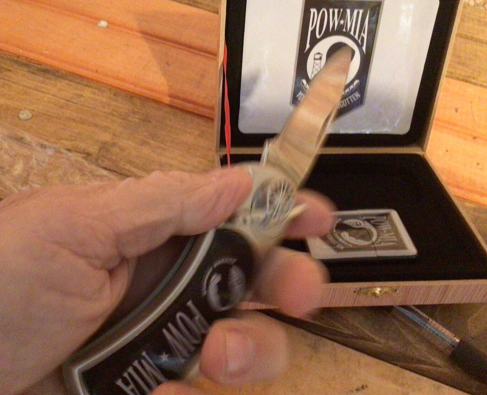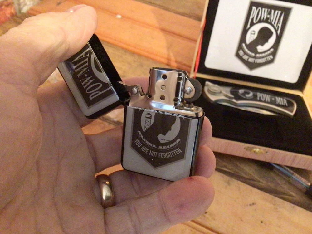 I have always been a supporter of our troops and the heroes that never returned. (RIP). This knife is a beautiful piece of work. I am very pleased with how the seller kept the knife, lighter and case in perfect condition. Great seller. Scotty J.