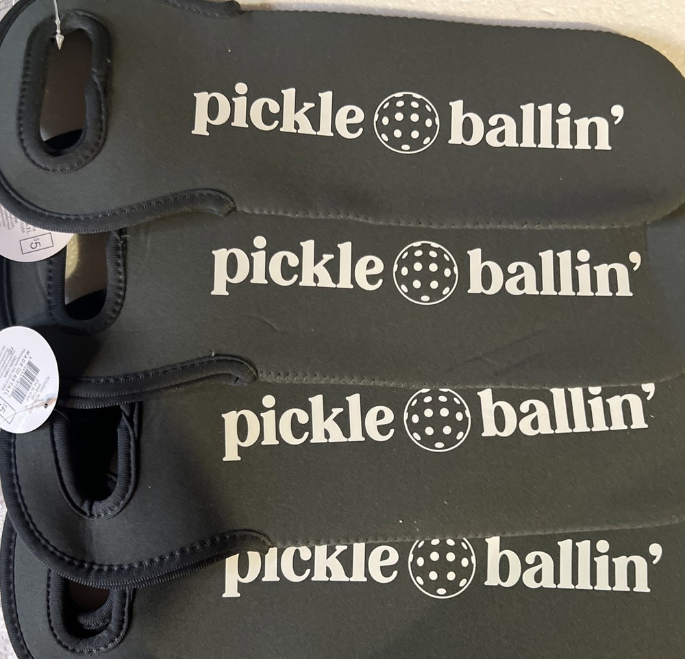 The Pickle Ball Lot includes 14 Paddle Covers and 4 ball/bottle holders, providing you with all the accessories you need for your pickleball games. The set offers a variety of colors including black, pink, and blue, allowing you to customize your equipment to match your style. Made in China, this set is designed to enhance your gameplay and ensure you have everything you need for a fun and competitive pickleball match. 048