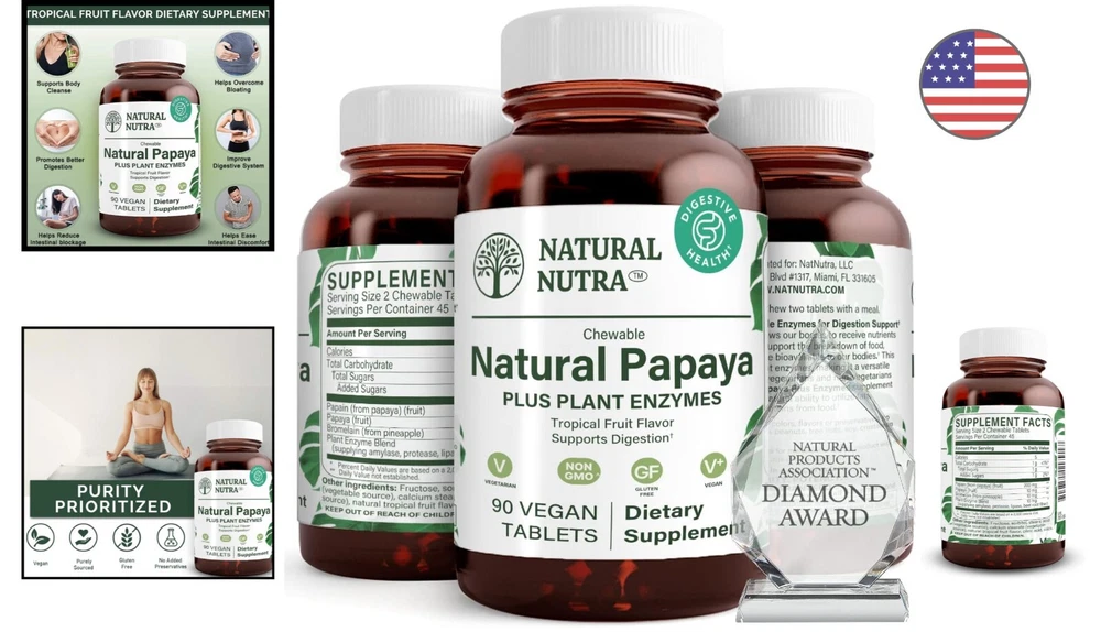 Premium Plant Enzymes - Digestive Health Support - 90 Chewable Tablets ‹ › ‹ › ‹ › ‹ › ‹ › ‹ › ‹ › ‹ › ‹ › Premium Plant Enzymes - Digestive Health Support -90 Chewable Tablets Features: Promotes better digestion Helps prevent bloating and discomfort Contains papain, a special digestive health enzyme found in papaya Optimizes digestion of fats, carbohydrates, proteins, cellulose, and fiber Formulated with all-natural contents Contains 100% natural health enzymes such as protease, amylase lipase, bromelain, and papain Sealed in BPA-free, recyclable glass bottles Each bottle contains 90 easy-to-swallow tablets Gluten-free and vegetarian Benefits: Promotes proper nutrient absorption Supports maximum digestion Contains multiple vitamins, minerals, and flavonoids Optimal digestive support Safe and pure product Environmentally friendly packaging Easy to swallow tablets Backed by extensive research Why choose our Premium Plant Enzymes? Are you tired of digestive issues such as bloating and discomfort? Our Premium Plant Enzymes are here to help. With the special digestive health enzyme papain found in papaya, our chewable tablets promote better digestion and prevent bloating. Our formulation of all-natural papaya enzymes contains essential health enzymes for optimal digestive support. Plus, our BPA-free, recyclable glass bottles ensure the safest and purest product available. Don't settle for cheap plastic bottles - choose our Premium Plant Enzymes for a healthier digestive system today! Experience the benefits of proper digestion and nutrient absorption - order your Premium Plant Enzymes now! Shipping Free & Fast Shipping - We offer free shipping to most of the USA with a normal delivery time of 3-7 days. However, due to the current situation, additional delivery time (up to 3 weeks) may be required for some items. Alternative Carriers - We may use alternative carriers (e.g. USPS, FedEx, UPS, etc.) to ensure your package arrives safely and on time. Due to the use of multiple carriers, we are unable to provide a tracking number automatically. Handling Time - Orders are processed and shipped within 1-2 business days of receiving cleared payment. Shipping Restrictions - Shipping to Alaska, Hawaii, Puerto Rico, Guam, and other US territories may incur shipping charges or delivery restrictions. Please contact us before ordering, or your order can be refunded/cancelled. State Restrictions - There may be restrictions based on your state of purchase. For example, certain items may not be shipped to California due to state regulations. Contact for Tracking Updates - If you require tracking updates or have any concerns about the delivery of your order, please feel free to contact us, and we will be happy to assist you. Return 30-Day Hassle-Free Returns - We want you to be completely satisfied with your purchase. If you are not, you can return the item within 30 days of receiving it for a full refund or exchange. Easy Return Process - To start a return, simply contact us and we will provide you with a prepaid return shipping label and detailed instructions. Restocking Fee - There are no restocking fees for returns. However, the buyer is responsible for return shipping costs if the return is not due to a seller's error. Refund Processing Time - Refunds will be processed within 5 business days of receiving the returned item in its original condition. Payment We accept all major credit cards, PayPal, and Apple Pay for your convenience. Your payment information is secure and encrypted to ensure a safe and seamless transaction. Please complete your payment within 3 days of purchase to avoid any delays in shipping. Feedback Your feedback is extremely important to us. We strive to provide the best products and customer service possible. If you are satisfied with your purchase, please take a moment to leave us a positive review. If you have any concerns or issues with your order, please contact us before leaving negative feedback. We are committed to resolving any problems and ensuring your satisfaction. Contact Us If you have any questions or concerns, please feel free to reach out to our customer support team. You can contact us through the eBay messaging system. We are available Monday to Friday, 9:00 am to 5:00 pm EST, and we will do our best to respond to your inquiry within 24 hours. Thank you for supporting our small family business!
