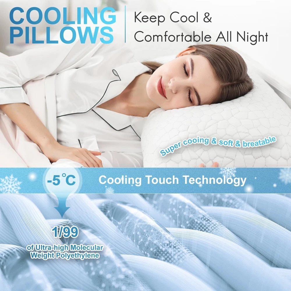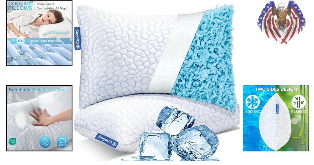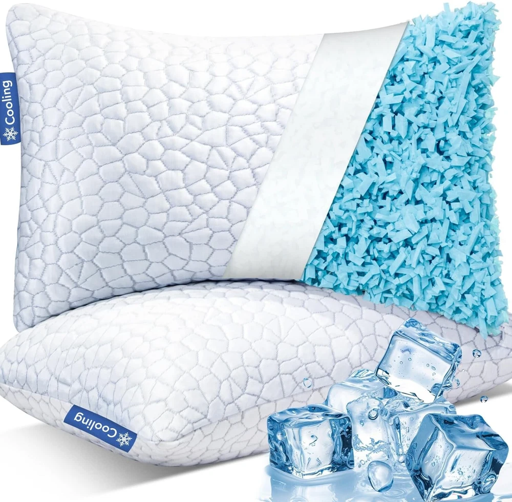 Premium Shredded Memory Foam Pillows - Cooling Comfort, Standard Size 20" x 26"