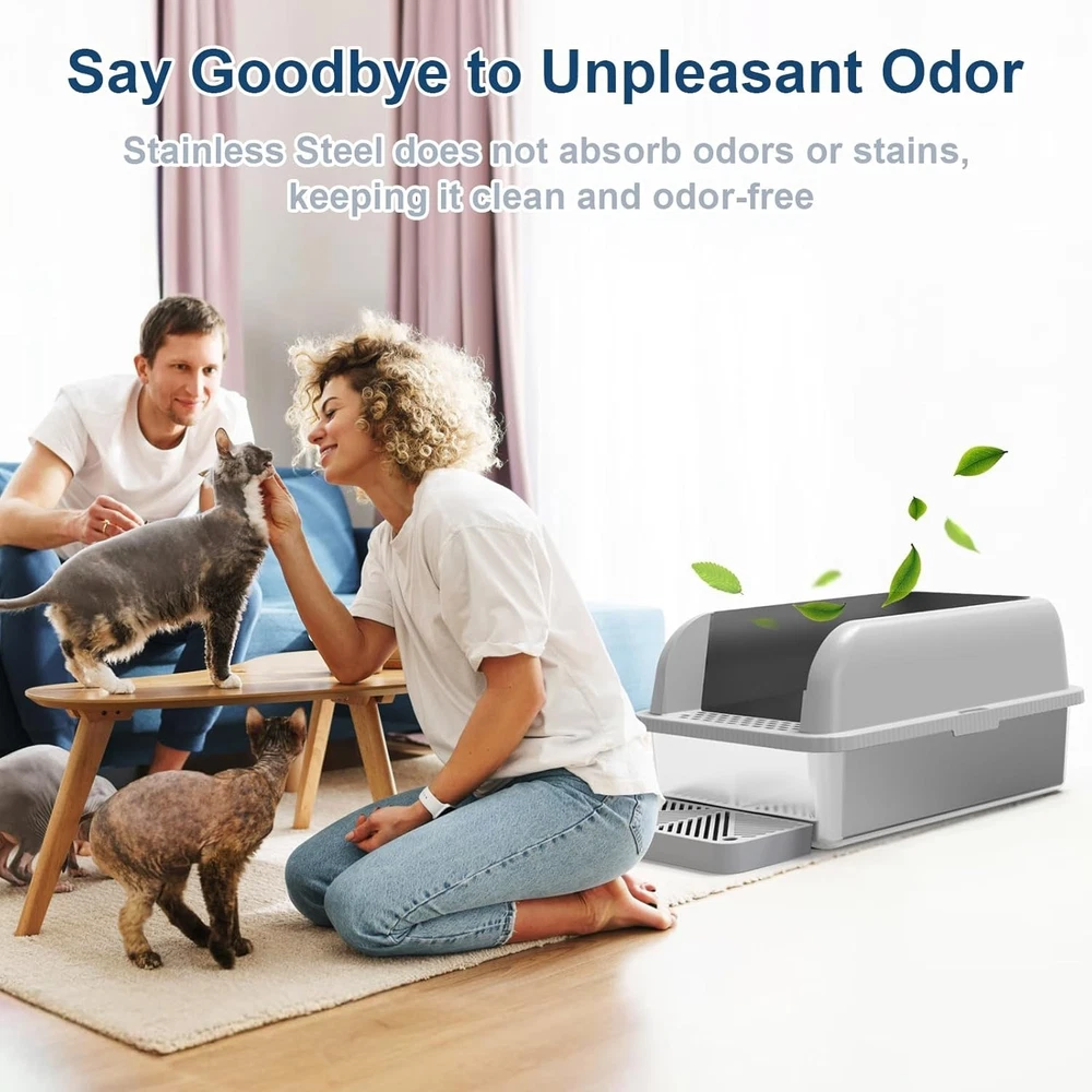 Luxury Stainless Steel Cat Litter Box with Lid - Non-Stick & Easy Clean Design ‹ › ‹ › ‹ › ‹ › ‹ › ‹ › ‹ › ‹ › Luxury Stainless Steel Cat Litter Box with Lid Unparalleled Features: Engineered for High Peeing Cats: Our unique reinforced plastic enclosure clasps securely to the high-sided stainless steel box, ensuring that it remains intact even when your cats make their exit. The overlap design prevents urine from seeping through seams, so you never have to worry about spills! Extra Large Dimensions: Measuring 23.6" long by 16" wide with a generous height of 12", this litter box is specially designed for large cats or multiple felines. The high sides provide privacy while the wrapping corners prevent litter from splashing out. Odor-Free Experience: Say goodbye to lingering smells! The smooth and non-stick stainless steel surface allows waste to slide off easily, creating a clean and sanitary environment. Unlike plastic, our stainless steel construction resists rust and scratches where odors often hide. Litter Containment System: Equipped with a cleverly designed filter pedal and foot board, this litter box minimizes litter spread, ensuring your floors stay clean and your litter usage is optimized. The footboard also eases access for older or shorter-legged cats. Effortless Maintenance: Included with your purchase is a convenient litter scoop, making cleanup a breeze. With a litter capacity of up to 37L, this XL litter box is designed to comfortably accommodate your adult cat for up to 30 days without constant changes—perfect for busy lifestyles. Why Choose Our Luxury Stainless Steel Cat Litter Box? Elevate your cat's bathroom experience with our Luxury Stainless Steel Cat Litter Box—an investment into hygiene, durability, and style. No more worrying about unsightly spills, odors, or frequent litter changes. This exquisite litter box not only boasts a sleek and modern design, but it also meets the needs of larger breeds and multiple cats with ease, ensuring a serene and pleasant environment for your beloved pets. Transform your home and ensure your cats enjoy privacy and cleanliness—order your Luxury Stainless Steel Cat Litter Box with Lid today! Shipping Free & Fast Shipping - We offer free shipping to most of the USA with a normal delivery time of 3-7 days. However, due to the current situation, additional delivery time (up to 3 weeks) may be required for some items. Alternative Carriers - We may use alternative carriers (e.g. USPS, FedEx, UPS, etc.) to ensure your package arrives safely and on time. Due to the use of multiple carriers, we are unable to provide a tracking number automatically. Handling Time - Orders are processed and shipped within 1-2 business days of receiving cleared payment. Shipping Restrictions - Shipping to Alaska, Hawaii, Puerto Rico, Guam, and other US territories may incur shipping charges or delivery restrictions. Please contact us before ordering, or your order can be refunded/cancelled. State Restrictions - There may be restrictions based on your state of purchase. For example, certain items may not be shipped to California due to state regulations. Contact for Tracking Updates - If you require tracking updates or have any concerns about the delivery of your order, please feel free to contact us, and we will be happy to assist you. Return 30-Day Hassle-Free Returns - We want you to be completely satisfied with your purchase. If you are not, you can return the item within 30 days of receiving it for a full refund or exchange. Easy Return Process - To start a return, simply contact us and we will provide you with a prepaid return shipping label and detailed instructions. Restocking Fee - There are no restocking fees for returns. However, the buyer is responsible for return shipping costs if the return is not due to a seller's error. Refund Processing Time - Refunds will be processed within 5 business days of receiving the returned item in its condition. Payment We accept all major credit cards, PayPal, and Apple Pay for your convenience. Your payment information is secure and encrypted to ensure a safe and seamless transaction. Please complete your payment within 3 days of purchase to avoid any delays in shipping. Feedback Your feedback is extremely important to us. We strive to provide the best products and customer service possible. If you are satisfied with your purchase, please take a moment to leave us a positive review. If you have any concerns or issues with your order, please contact us before leaving negative feedback. We are committed to resolving any problems and ensuring your satisfaction. Contact Us If you have any questions or concerns, please feel free to out to our customer support team. You can contact us through the eBay messaging system. We are available Monday to Friday, 9:00 am to 5:00 pm EST, and we will do our best to respond to your inquiry within 24 hours. Buy it now and enjoy a pleasant shopping experience! Model: Cat Litter Box MPN: Cat_Litter_Box Unit Quantity: 6.38 Type: Hooded Litter Box Unit Type: lb