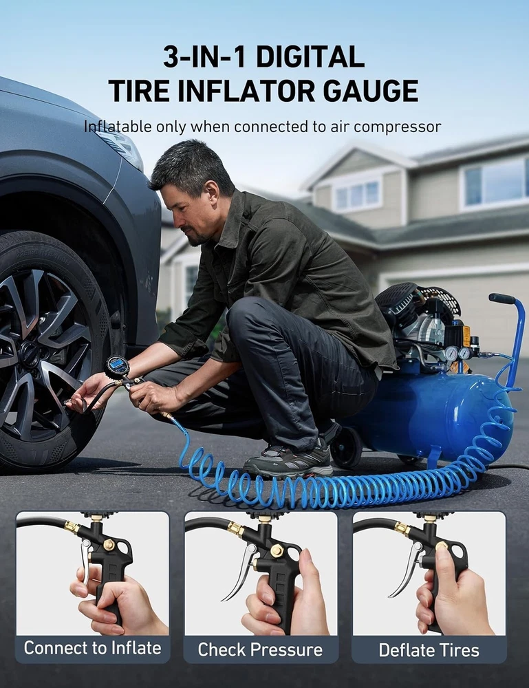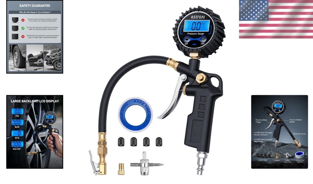 Accurate Inflator Gauge for Enhanced Safety - Premium Stainless Steel Build ‹ › ‹ › ‹ › ‹ › ‹ › ‹ › ‹ › ‹ › ‹ › ‹ › Accurate Inflator Gauge for Enhanced Safety - Premium Stainless Steel Build Features: Professionally calibrated to always return an accurate reading within 1% of the exact pressure of your tire. Accurately measures in a range from 0-250 PSI (0-17.2 Bar; 0-1724 Kpa; 0-17.5 kg/cm^2). Increased safety with properly inflated tires providing better performance in all weather conditions. Decreases the likelihood of flats, explosions, and crashes. Increases MPG, saves money on fuel/tire wear, and drives safer. All-in-one features including an inflator, straight locking chuck, gauge, hose, and bleed valve. Compatible with both ¼” and ½” NPT air compressors outputs. Made with heavy-duty stainless steel and high-quality brass components for lasting reliability and performance. Leak-proof lock-on chuck allows the inflator to handle pressure from various vehicles. Battery saver feature: automatically turns on when pressurized air is detected and turns off after 20 seconds of inactivity. Benefits: Premium stainless steel build for durability and safety. High accuracy ensures no more guessing with tire pressure readings. Enhanced safety with properly inflated tires. Cost-effective as it increases MPG and saves on fuel/tire wear. Convenient all-in-one design for easy use and storage. Compatible with a wide range of vehicles. Battery saver feature for extended use. Perfect stocking stuffer for men who value safety and quality. Why choose our Accurate Inflator Gauge? Upgrade your safety and accuracy with our Accurate Inflator Gauge. Say goodbye to guesswork and hello to precise tire pressure readings with our professionally calibrated gauge. Properly inflated tires not only enhance performance in all conditions but also increase safety on the road, saving you money on fuel and tire wear. Made with durable stainless steel and featuring an all-in-one design, this inflator is a must-have for every vehicle owner. Ensure your safety and peace of mind - choose our Accurate Inflator Gauge today! Shipping Free & Fast Shipping - We offer free shipping to most of the USA with a normal delivery time of 3-7 days. However, due to the current situation, additional delivery time (up to 3 weeks) may be required for some items. Alternative Carriers - We may use alternative carriers (e.g. USPS, FedEx, UPS, etc.) to ensure your package arrives safely and on time. Due to the use of multiple carriers, we are unable to provide a tracking number automatically. Handling Time - Orders are processed and shipped within 1-2 business days of receiving cleared payment. Shipping Restrictions - Shipping to Alaska, Hawaii, Puerto Rico, Guam, and other US territories may incur shipping charges or delivery restrictions. Please contact us before ordering, or your order can be refunded/cancelled. State Restrictions - There may be restrictions based on your state of purchase. For example, certain items may not be shipped to California due to state regulations. Contact for Tracking Updates - If you require tracking updates or have any concerns about the delivery of your order, please feel free to contact us, and we will be happy to assist you. Return 30-Day Hassle-Free Returns - We want you to be completely satisfied with your purchase. If you are not, you can return the item within 30 days of receiving it for a full refund or exchange. Easy Return Process - To start a return, simply contact us and we will provide you with a prepaid return shipping label and detailed instructions. Restocking Fee - There are no restocking fees for returns. However, the buyer is responsible for return shipping costs if the return is not due to a seller's error. Refund Processing Time - Refunds will be processed within 5 business days of receiving the returned item in its original condition. Payment We accept all major credit cards, PayPal, and Apple Pay for your convenience. Your payment information is secure and encrypted to ensure a safe and seamless transaction. Please complete your payment within 3 days of purchase to avoid any delays in shipping. Feedback Your feedback is extremely important to us. We strive to provide the best products and customer service possible. If you are satisfied with your purchase, please take a moment to leave us a positive review. If you have any concerns or issues with your order, please contact us before leaving negative feedback. We are committed to resolving any problems and ensuring your satisfaction. Contact Us If you have any questions or concerns, please feel free to reach out to our customer support team. You can contact us through the eBay messaging system. We are available Monday to Friday, 9:00 am to 5:00 pm EST, and we will do our best to respond to your inquiry within 24 hours. Thank you for supporting our small family business! Placement on Vehicle: Front Manufacturer Part Number: Digital Tire Pressure Gauge with Inflator OE/OEM Part Number: Digital Tire Pressure Gauge with Inflator Material: Brass,Stainless Steel Finish: Metallic Interchange Part Number: Digital Tire Pressure Gauge with Inflator Superseded Part Number: Digital Tire Pressure Gauge with Inflator Brand: Unbranded Type: Tire Pressure Gauge Manufacturer Warranty: Digital Tire Pressure Gauge with Inflator