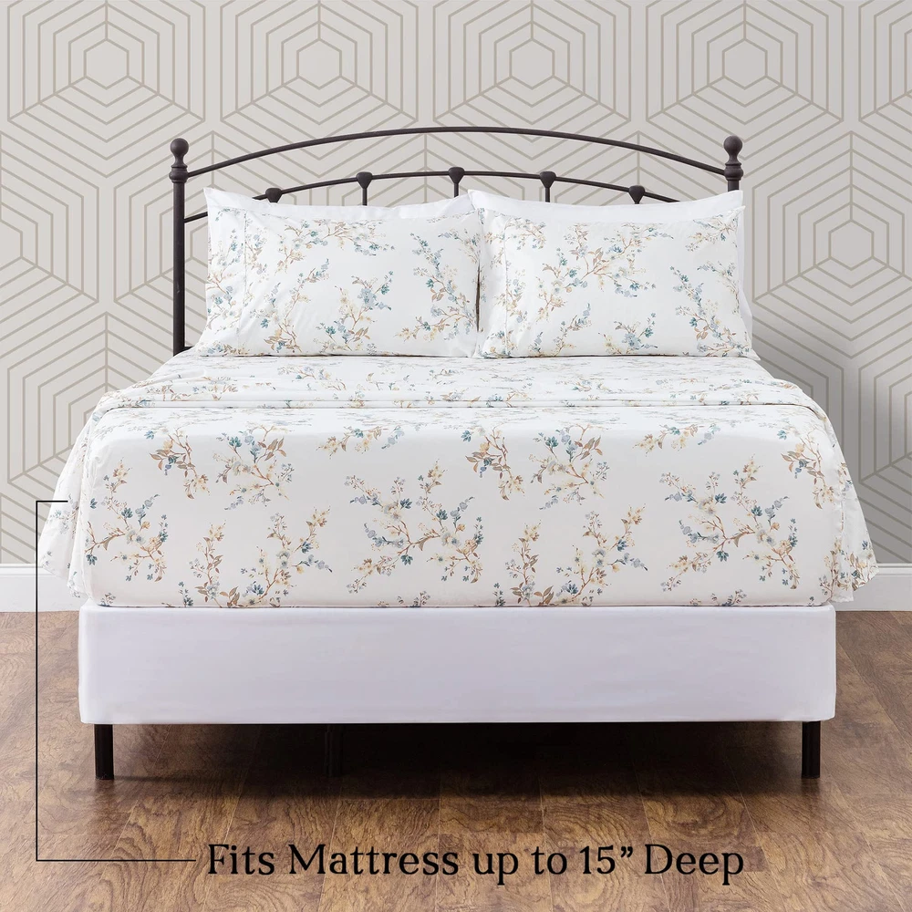 SUPER SOFT & COZY: This 4-piece sheet set is made of a super soft premium quality double brushed microfiber. Add a splash of color to your room with our many classic prints to mix and match with your personal style. This set also makes a perfect personal gift for any occasion such as housewarming or birthday. BEAUTIFUL PRINT: Our variety of prints can suit your personal style and bring a fresh new look to your bedroom. Turn your room into a relaxing space with our simple yet elegant designs. No matter if you want to add a unique pop of color or mix and match with your existing décor, it’s easy to add a fresh elegant look into your room. ELEGANT PRINTED DESIGN: Add a touch of elegance to your room with our unique classic and beautiful design featured on each flat sheet, fitted sheet and pillow case cover. 4-PIECE SET INCLUDES: 1 Fitted Sheet ( 60 x 80 Inches ), 1 Flat Sheet ( 90 x 102 Inches) with 15 inch corners; 2 Pillow Shams ( 20x30 Inches ). Fabric Content: 100% double brushed microfiber. EASY CARE: Machine wash on gentle cycle with cold water, tumble dry at very low temperature.