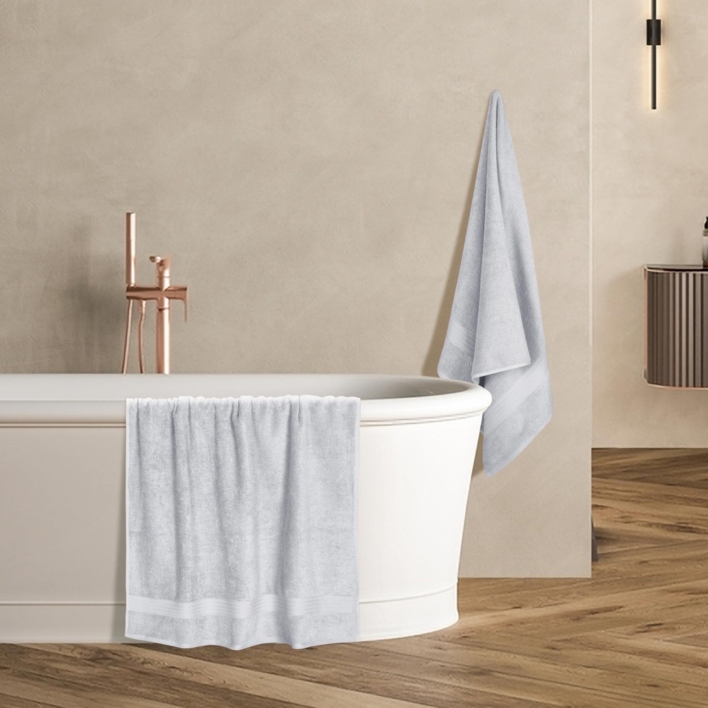 cotton towel is a beautiful and carefully crafted product with lot of attention to details. High quality living, luxurious, exceptionally smooth and soft to the touch. Sustainable product without compromising on the comfort and style. Made in a state of the art vertically integrated facility. Each set contains four (4) 100% pure cotton bath towels 27 inch x 54 inch 100% Pure cotton for softness, absorbency & durability - Luxurious hotel & spa quality bath towels Complimented set for daily use, hotel & spa, quick drying & multipurpose usage 100% Natural materials & free from harmful chemicals / materials - safe for you & your family Machine washable & dryable, wash in cold water, tumble dry low - wash separately before first use