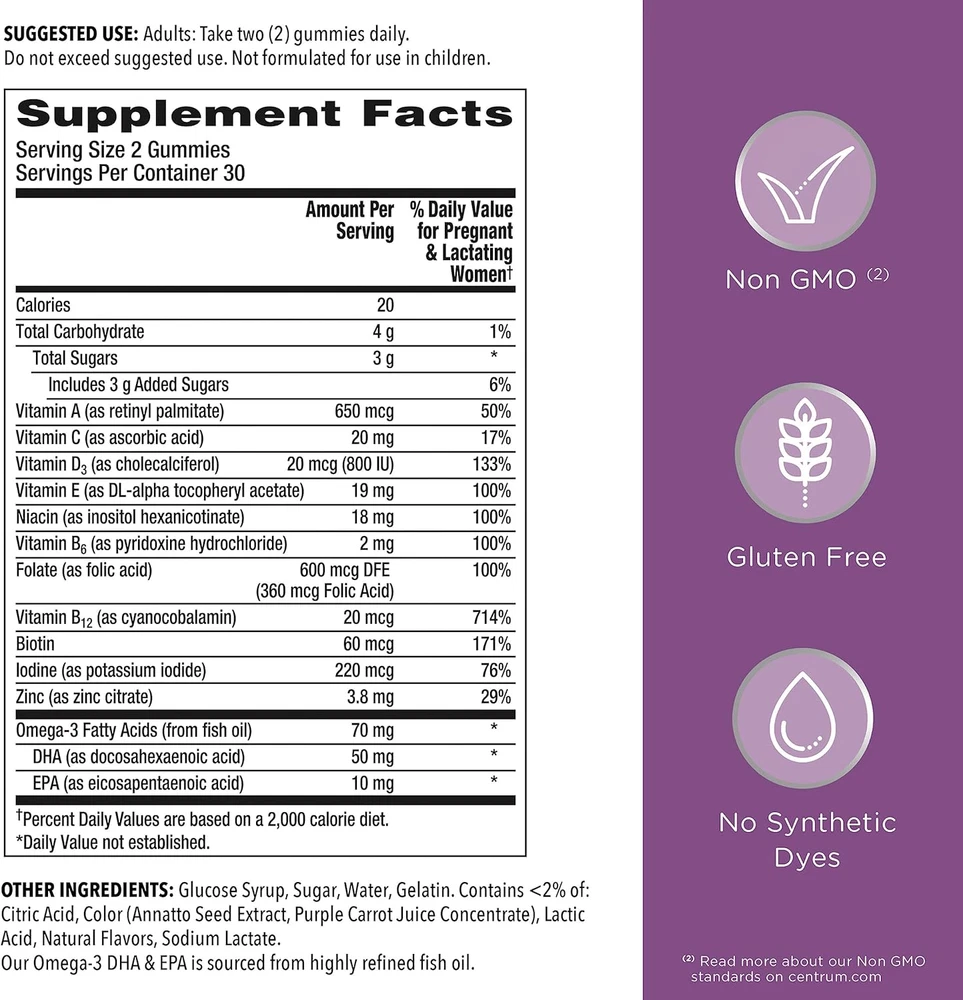 Store New Arrivals Add to Favorite View Feedback Contact Prenatal Multivitamin Gummies with DHA and Folic Acid, Mixed Berry and Orange Flavors - 60 Count, 30 Day Supply Description Item model number 60000000200344 Primary Supplement Type Multivitamin Country of Origin USA Diet Type Gluten Free Flavor Mixed Berry and Orange Item Form Gummy Package Dimensions 5.04 x 2.6 x 2.56 inches; 9.14 ounces 60-count bottle of delicious mixed berry and orange flavored Centrum Prenatal Multivitamin Gummies Gummies with ingredients specially crafted to support pregnancy and fetal development (1) Prenatal vitamin D gummies with DHA, folic acid, iodine and other essential nutrients Delicious fruit-flavored women's vitamins made with no high fructose corn syrup, synthetic dyes, or artificial flavors or sweeteners Gluten-free prenatal gummy vitamins Dietary supplements formulated with your prenatal care in mind from Centrum, the makers of the number 1 doctor recommended multivitamin brand HSA and FSA eligible product Centrum Prenatal Multivitamin Gummies deliver essential nutrients you and your little one need throughout your pregnancy. These gummy multivitamins are crafted with folic acid and 10 other key vitamins to support pregnancy for women who are pregnant or trying to conceive (1). Centrum Prenatal gummies contain DHA and iodine to help support a healthy pregnancy, as well as vitamin D to help support bone health for both mother and baby (1). These vitamin gummies are formulated with folic acid to help support fetal brain and spinal cord development (1). Each serving of two Centrum gummies delivers the nutrients you and your baby need with no high fructose corn syrup, synthetic dyes, or artificial flavors or sweeteners. Chew two dietary supplement gummies daily to support you and your little one. For supplements before, during and after pregnancy, choose Centrum daily supplements, the makers of the number 1 doctor recommended multivitamin brand. (1) These statements have not been evaluated by the Food and Drug Administration. This product is not intended to diagnose, treat, cure or prevent any disease. (2) Does not include iron ABOUT US We offer the best prices around on high quality products. Our E-store includes media such as books, movies, music and games while offering electronics, toys, sporting apparel, clothing, tools, general home, garden items and more. SHIPPING We are always working hard to ensure your package arrives as soon as possible. Please understand that some factors like weather, high postal traffic, and the performance of shipping companies are outside of our control. We offer free shipping to the lower 48 states and ship within 2 business days of payment, usually sooner. We do not accept P.O. Boxes. Please provide a physical address. For shipping outside of the continental USA, we only use eBay's Global Shipping Program.The item is shipped to KY and then sent to the rest of the world. International customers are responsible for all duties and taxes. Continue to check out in order to calculate costs for shipping the item to your country. Messages regarding eBay's Global Shipping Program MUST be directed at eBay EXCLUSIVELY. RETURNS We offer a 30-Day Return Policy on items which you are not completely satisfied with. You have the option for a full-refund or an exchange of the item. No returns are available on items shipped outside of the USA. PAYMENT We accept PayPal. CONTACT US This page content is yet to come Please ad us to your favorite seller and visit again later Thank You CUSTOMER SATISFACTION We try our very best to make sure every customer is completely satisfied. If there's a problem, message us! We're happy to help. WE ACCEPT Copyright © 2021 AutoDS. | All Rights Reserved