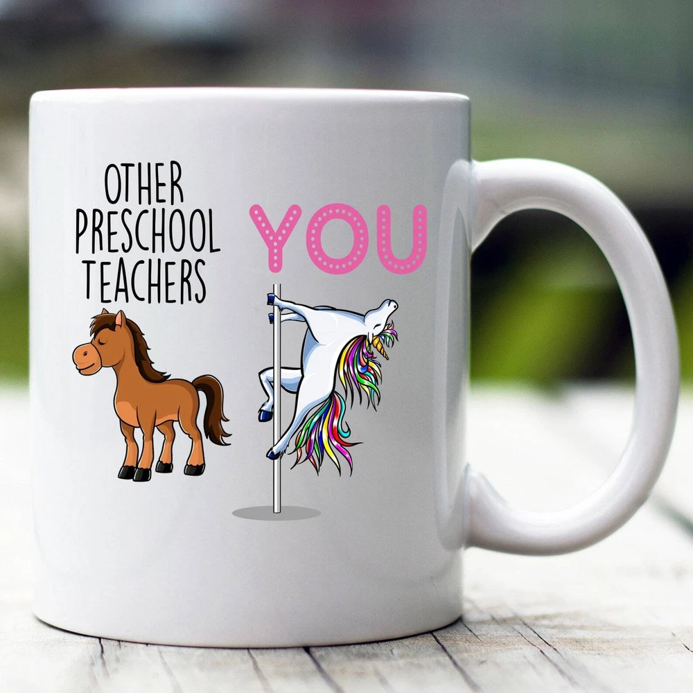 Preschool Teacher Gift Preschool Teacher Mug Preschool Teacher Funny Unicorn Mug Preschool Teacher Cup Preschool Teacher Coffee Mug Product Details.. This high quality 11oz. ceramic white mug has a premium hard coat that provides crisp and vibrant color reproduction sure to last for years. Perfect for all hot & cold beverages. The highest quality printing possible is used. It will never fade no matter how many times you wash it. Material: 100% Ceramic. Print both sides. Dishwasher and Microwave Safe. High Gloss + Premium White Finish. Printed in the U.S.A. Personalized & Custom. We support personalized and custom mug to add custom, when placing an order, you can add notes to the "order note" in shipping address section. Also you can contact us directly via message. Shipping Info. Ready to ship in 1 to 2 business days, All products are made-to-order and proudly printed in the United States. Shipped by USPS and DHL, You will receive your order in 5-7 days. Replace & Refund. All products are defective during shipping broken, chipped will be replaced free of charge. You are not satisfied with the product, we will refund 100% money to you. If any other issues arise, please do not hesitate to message, we would be more than happy to assist you.