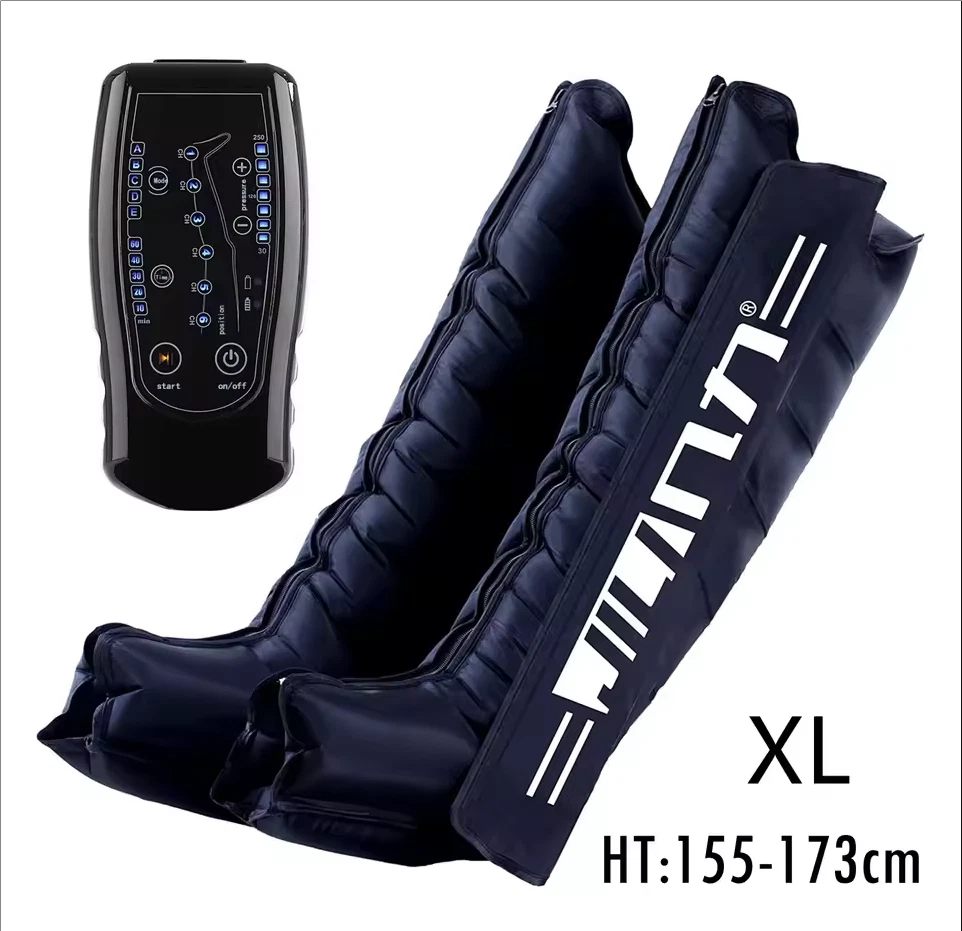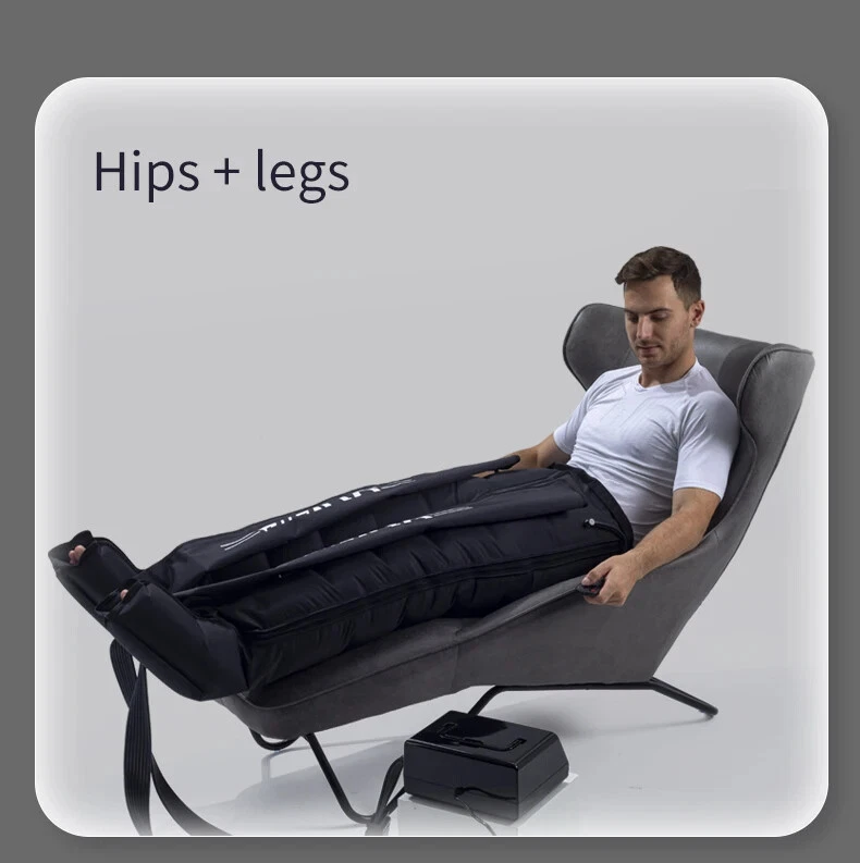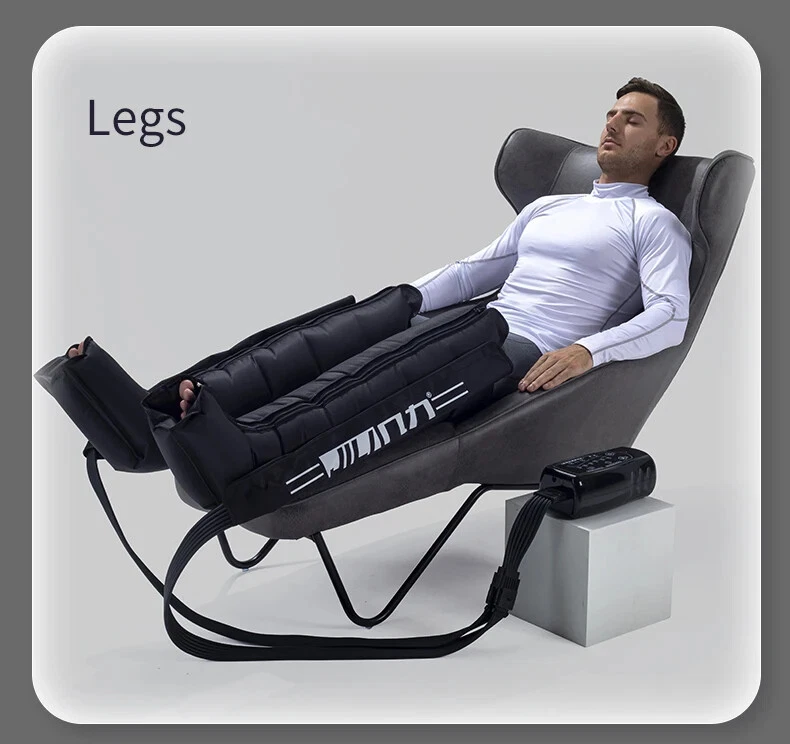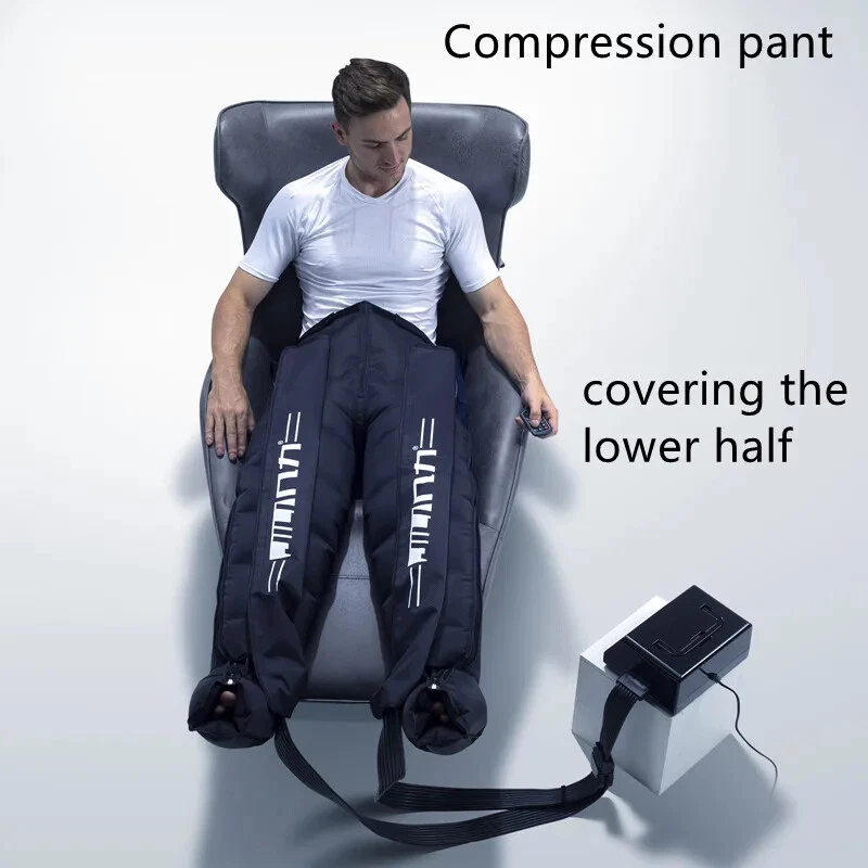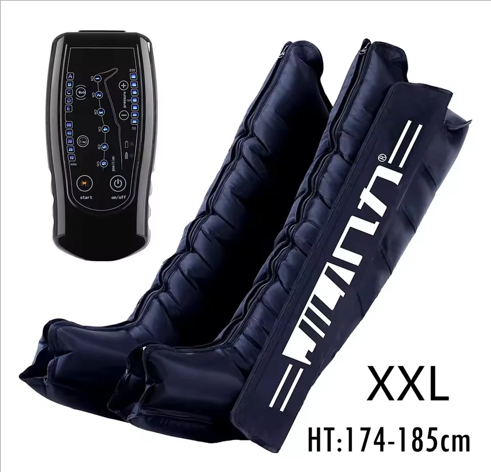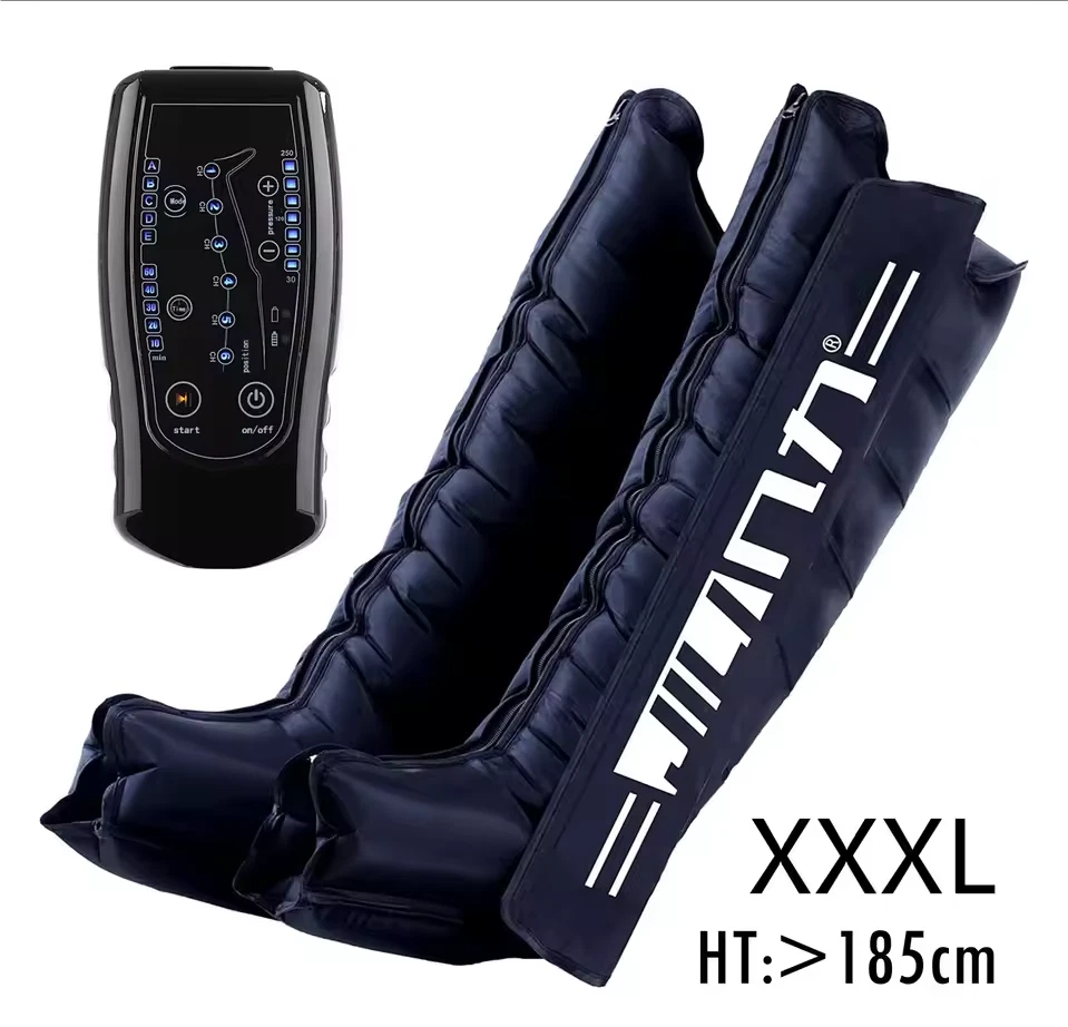 Due to European policy, European countries need to provide their individual value Added Tax (VAT) number to send, please contact customer service Pneumatic compression is a form of pressure massage in which a garment completely covering the limb (legs or arms) inflates and deflates in a cyclical pattern over a period of time. The process flushes fluids containing metabolic waste and ushers in fresh, nutrient-rich blood to the limbs, improving circulation and blood flow. This increased circulation will reduce muscle pain and soreness, decrease swelling, and offer greater pain relief and recovery. BOOST CIRCULATION Speed up cellular repair by providing more oxygen and nutrients to the muscles while removing lactic acid and other by-products caused by exertion. INCREASE LYMPHATIC FUNCTION Dramatically aid the body’s natural process of removing toxins and waste through the lymphatic system. RELIEVE MUSCLE TENSION Increase flexibility, improve muscle response and decrease the likelihood of injury by targeting tight, tense muscles and fascia. With more sizes, more features, more control, and more power than the competition.There are eight air chambers from the foot to the thigh, and each section can be opened and closed independently. Compared with 4-5 air chambers, it can promote blood flow more thoroughly About the AC controller, Weight:2.5KG, Size:23.5*24*10.5cm voltage: 100-110V/220-240V, power: 30w/40va, remote control distance: 5m Five kinds of loop programs A.take turns B.Increment C.Take turns in pairs D.all E.A+B rotation Pressure range 30-250mmhg,There are 7 levels of addition and subtraction Size S , suitable for height <155cmSize XL , suitable for height 155-173cm Size XXL, suitable for height 174-185cm Size XXXL, suitable for height >185cm Size trousers XL,suitable for height 160-185cm Size trousers XXL,suitable for height 185-205cm Voltage 100-240V, all over the world, plug has European plug and artist plug, we will choose the appropriate plug for you in the destination country The arms and trousers of the whole body can be inflated at the same time. Since there may be some overlap between the waist and trousers, it is recommended to use the waist alone. The product is equipped with three adapters to ensure that the arms and trousers are connected to the machine at the same time