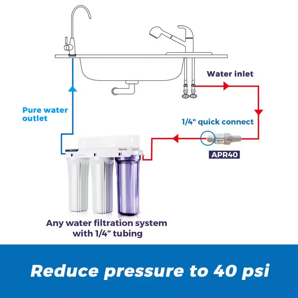 Store New Arrivals Add to Favorite View Feedback Contact Pressure Regulator Filter Protection Valve with 1/4 In. Quick Connect 40 Description Accessory Type Other Brand/Model Compatibility iSpring Pack Size 1 Product Weight (lb) 0.15 lb Returnable 90-Day Manufacturer Warranty none Product Depth (in) 1.25 in Product Height (in) 4 in Product Width (in) 1.25 in Protects equipment by regulating the water pressure 1/4 in. push-in quick connect design for easy setup Ideal for RO systems, ice makers, filters, and other appliances Designed to be used in installations with high feed pressure used to protect reverse osmosis systems, water filters, ice makers, and etc. 1/4 in. push-in quick fittings for easy installation. Water flow rate: 4 gallons per minute (15L/min) at 100 psi. Reduce pressure to 40psi Limits water pressure to protect equipment 1/4 in. quick connect Flow: 4 GPM (15L/min) at 100 psi; maximum pressure: 300 psi; maximum temperature: 104°F (40°C) How Can We Help? Text us now! (678)261-7611 Call Only M-F 9-5 EST / (470)560-0012 Text Only M-F 9-5 EST ABOUT US We offer the best prices around on high quality products. Our E-store includes tools, general home, garden items and more. SHIPPING We are always working hard to ensure your package arrives as soon as possible. Please understand that some factors like weather, high postal traffic, and the performance of shipping companies are outside of our control. We offer free shipping to the lower 48 states and ship within 4 business days of payment, usually sooner. We do not accept P.O. Boxes. Please provide a physical address. RETURNS We offer a 30-Day Return Policy on items which you are not completely satisfied with. You have the option for a full-refund or an exchange of the item. No returns are available on items shipped outside of the USA. PAYMENT We accept PayPal. CONTACT US This page content is yet to come Please ad us to your favorite seller and visit again later Thank You CUSTOMER SATISFACTION We try our very best to make sure every customer is completely satisfied. If there's a problem, message us! We're happy to help. WE ACCEPT Copyright © 2017 AutoDs. | All Rights Reserved