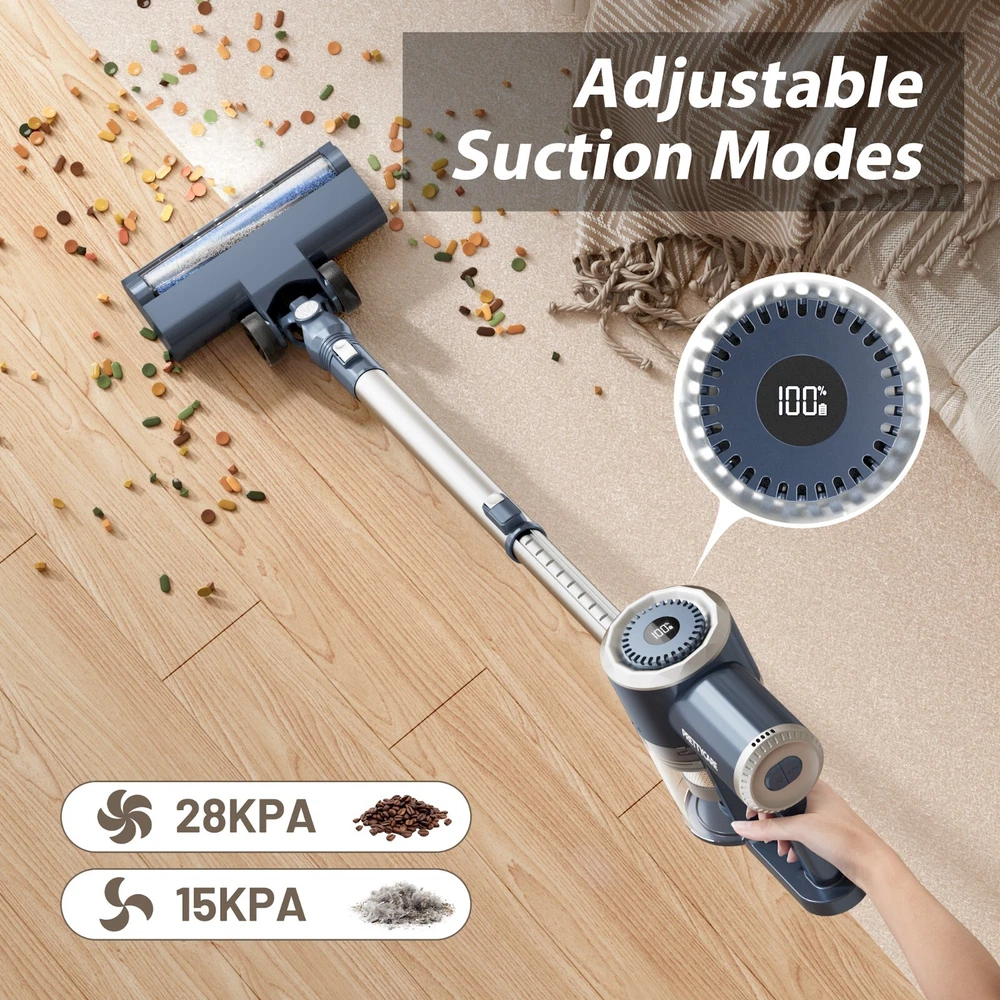 PrettyCare Pretty Life, Care Your Life. Whether your goal is to clean up a pile of pet hair,a handful of spilled breadcrumbs or a big mess of dirt,the PrettyCare W200 cordless vacuum cleaner makes it easy to solve all your problems and give you a clean, healthy and comfortable home. In addition to the basic cleaning functions, we have also done a lot of details, welcome to experience our versatile, powerful and intelligent cordless vacuum cleaner, it will bring you a new cleaning efficiency! ✅【6 * 2500mAh/ Upgraded Motor】 The PrettyCare cordless vacuum cleaner is equipped with a 6*2500mAh high-power battery and a high-performance 180W upgraded motor.It is very reliable because the larger capacity battery gives you a longer cleaning time. Say goodbye to annoying "cleaning breaks" and ensure a thorough cleaning of your 1937.50 square foot home in one go. ✅【48 minutes Running Time /28Kpa Super Suction】 With 28Kpa hurricane suction and 2 adjustable modes,the PrettyCare cordless vacuum cleaner can run for about 20 minutes at 28KPA power mode and even for about 48 minutes at 15kPa normal suction,amazingly it can adapt to different conditions and allow full use of the battery. It instantly wicks away dirt,debris,pet hair and stains and easily cleans hard floors, tiles and carpets.Please note that the actual use time may vary due to differences in use scenarios and accessories. ✅【Integrated LED Display and Warm Dust Cup】 The electric vacuum cleaner is equipped with a smart LED display so you can easily view the current status of the vacuum cleaner. Large capacity 1.3L large dust collection cup adopts "one-button dust collection" design, no need to constantly pull the trigger when vacuuming, making it easy to empty. ✅【6-stage High Efficiency Purification and Filtration】 In order to provide users with extremely clean air and excellent cleaning experience,we have developed a stainless steel filter filtration system, a powerful cyclone/precision filter hole and a 6-stage HEPA filtration system that can capture 99.99% of fine dust as small as 0.1 microns and discharge clean air. It has twice the service life of conventional filtration systems.(HEPA is washable and recyclable). ✅【Flexible LED Electric Floor Brush Head and Adjustable Tube】 To make it easy to look into dark corners and track dust,debris and hair under furniture,we designed four LED headlights on the floor brush.To clean all those hard-to-reach corners under the furniture and under the bed and remove all the dust, we also come with a flexible 180°side-swivel and 90°up-and-down swivel floor brush head and self-adjusting telescopic rod. Make cleaning more thorough and effective. ✅【Upright and Wall-mounted Cordless Vacuum Cleaner】 The lightweight unit weighs just 2.8 pounds and has an ergonomic handle that's perfect for one-handed cleaning. Even if used for a long time, it will not make your hands tired.At the same time, our machine can stand on its own, but also equipped with a wall hanger can be hung on the wall, in the middle of cleaning, you can stop cleaning at any time and let the vacuum cleaner upright anywhere, you can also let it back to the wall hanging, both ways are easy to store and use, charging does not take up any space. ✅ 【Multi-Functional Brush Head】 In addition to powerful floor brushes, we also come with convenient 2-in-1 brush heads and long flat brush heads, which have the advantage that you can combine them in a variety of different ways, so you can get the job done easily and efficiently. Easily clean stairs, curtains, windowsills, sofas, beds, cars, RVS and other hard-to-reach places! Meet all your daily cleaning needs on multiple surfaces, including hardwood floors, carpets and pet hair or food. ✅【Convenient Noiseless Operation】 The PrettyCare cordless vacuum cleaner uses ultra-lightweight materials to effectively reduce noise and provide a quiet cleaning experience. Since there is no friction from any carbon brushes, the upgraded high-power brushless motors generate less heat and are less noisy (60db), resulting in more energy saving and longer service life. The ideal gift for family and friends who value cleanliness and peace in the home. Warm Reminder: 1/ The filter should be cleaned and replaced regularly, otherwise it may cause garbage to clog the vent, resulting in rapid suction attenuation. 2/ If you have any questions about the operation, please feel free to contact customer service, we will provide you with professional service. Technical Specifications: Battery: 6*2500mAh lithium-ion battery Suction: 28Kpa strong cordless vacuum cleaner Filtration Method: 6-stage purification filtration (Washable) Runing Time: Max 48 minutes Adjustable Metal Rod: 2.6 ft - 3.4 ft (Aluminum) Dust Cup: 1.3L large capacity & One key dust removal Floor Brush: 180°+ 90° rotation degree & 4 LED lights Other Brush Heads: 2 in 1 brush and crevice brush Screen: LED display Storage Way: Wall hanging & Upright Cleaning Ways: 2 Ways Product Weight: 5.4 lbs ultra light body Charging Time: 4-5 hours Noise Level: ≤60dB Cleaning Range: 180㎡(1937.50 square feet) Recommended Use: Carpet, Hard wood,Marble, Tile Package Include: 1 x W200 Vacuum Cleaner 1 x Rotatable Brush Head 1 x Wall Bracket 2 x Hepa Filter 1 x 2 in 1 Brush 1 x Crevice Nozzle 1 x Adjustable Metal Tube 1 x Power Adapter 1 x Instruction Manual For Better Use: 1. Please use the original adapter to charge the battery. 2. Please Clean the filter after each use and keep it dry. 3. Please ensure that each component is installed correctly before using. 4. Please don't use the cordless floor cleaner to suction anywhere with water. 5. Please promptly empty the dust in the dust collection cup after use. 6. Please clean the filter and black cylindrical sponge while emptying the trash. 7. Please keep your vacuum cleaner and charger in a cool, dry place indoors.