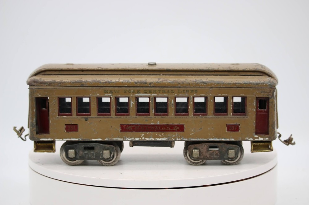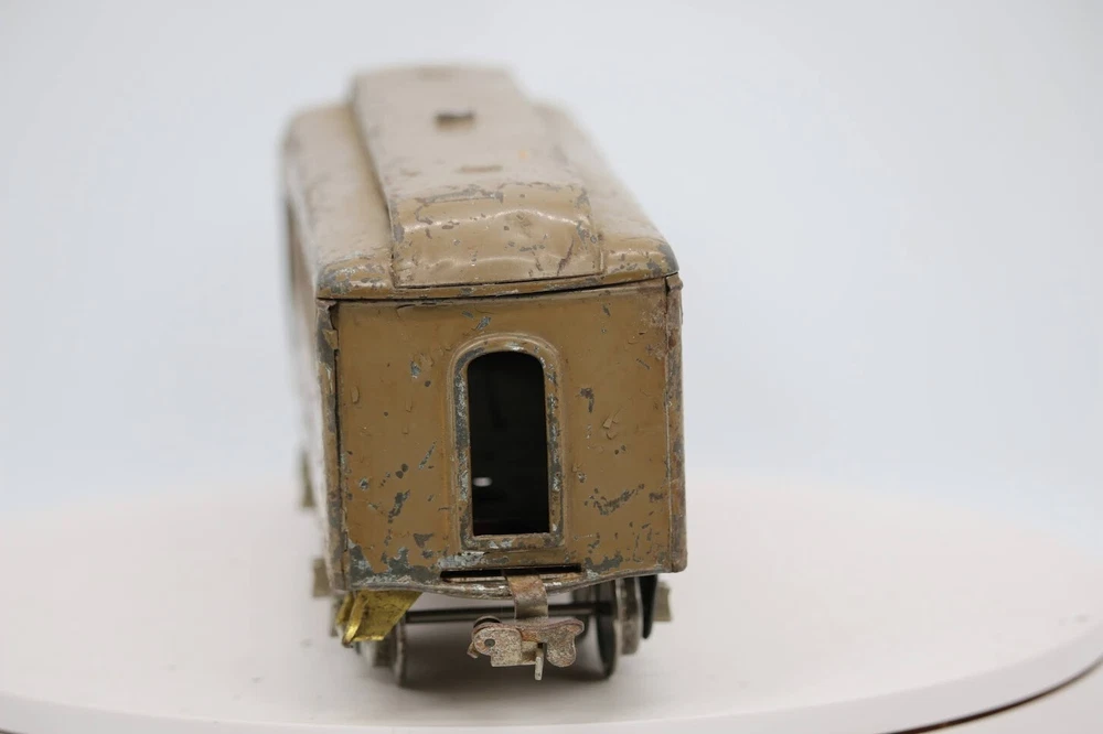 Pre war Lionel Standard Gauge 337 Mojave New York Central Lines Passenger Car SKU#003738 Look closely at the pictures to see further details. We ships USPS PLEASE see photos for detailed condition!! . PLEASE LOOK AT THE PHOTOS CAREFULLY BEFORE PURCHASING!! If you are purchasing more than one item from us and would like combined shipping, PLEASE request an adjusted invoice from us while still in the cart and BEFORE paying. Ebay does not usually calculate combined shipping accurately and you might get overcharged. Please be aware that when we photograph items, we use lighting that will show the details well. Although we try to present the product as accurately as possible, the lighting may affect the overall look of the item by appearing lighter/darker or possibly a different hue than the actual item. Depending on the type of lighting you have in your home, there may be some differences between the photos and the actual item. If this is a concern of yours, please feel free to request additional photos made in natural lighting or ask for a more detailed description of the item PRIOR TO PURCHASE! PLEASE NOTE: We greatly appreciate your interest in our item for sale. We look forward to a pleasant, quick and satisfying transaction for everybody, so please note the following information before bidding. Thank you! ITEM DESCRIPTIONS: * We will try to describe items well and provide plenty of photos. Please review these carefully before bidding or purchasing. * Only the items pictured and described are what you will receive when purchased. * We will occasionally offer an item clearly marked "AS-IS". This means that we are not sure if it works because we are unable to test it for whatever reason. We will offer these at a discounted price then a similar "working" item. It is possible that these items will work fine, but it also is possible that these items are more useful for their parts. Please only bid on or purchase these items if you are well aware of this, as we will only provide refunds of actual item price (no shipping cost refunds) for these items. * If you have any questions that aren't addressed by the descriptions or photos, please feel free to ask before you bid. * There may be pieces that are missing or broken including, but not limited to, couplers, brake wheels, steps, ladders, railings, etc. May need detailed cleaning SHIPPING: * We usually do not offer shipping to international addresses, but ARE WILLING TO TAKE CONSIDERATIONS. * We try to pack items as carefully as possible, but damage may occur during shipping. If you receive an item that was damaged in shipping, please contact us and we will work with you to resolve the problem. * We will combine shipping costs for all items the same buyer purchases from us within 2 days. Please wait to pay for items until you're done shopping with us. Please contact us if you're expecting to buy more items from us, or to have us adjust the shipping costs. * We will usually ship items out within 24 hours of payment being received Sunday through Friday at noon. We will notify the buyer if there will be a delay in shipping for some reason. Please allow additional time for holidays and weekends when the post office is closed. If payment is received after noon (EST) on Friday, the item might not be shipped until the following Monday. * We do try to recycle shipping materials as much as possible. RETURNS: We abide by eBay's Money Back Guarantee. We definitely want our customers to be happy with their purchase! You may return an item within 30 days of receiving it with the following guidelines: * If the item is defective or damaged (unless we clearly marked the listing "AS-IS"), the buyer will receive a full refund after the buyer returns it and it is received by us. Customers who falsely claim their item is defective, damaged, or not as described in order to receive a full refund and free return shipping will be permanently blocked from making future purchases from us. * If the item is as described (including "AS-IS" items) and the buyer decides for any other reason than defective/damaged to return it, only the actual price of the item will be refunded once it has been returned and it is received by us. The buyer will be asked to pay all original and return shipping charges. This includes all reasons other than defective/damaged, including wrong size, wrong type, changed mind, etc. All "AS-IS" items will fall into this category of return. Please make sure the item is what you want before purchasing it. * Please contact us before initiating a refund request. FEEDBACK: We always leave feedback at the end of transaction. We consider the transaction to be over when we receive feedback from the buyer confirming the item arrived satisfactorily. If you are unsatisfied with your purchase please contact us before leaving neutral or negative feedback. WE APPRECIATE POSITIVE FEEDBACK IF YOU ARE SATISFIED WITH YOUR PURCHASE! THANK YOU FOR YOUR INTEREST IN THIS ITEM!